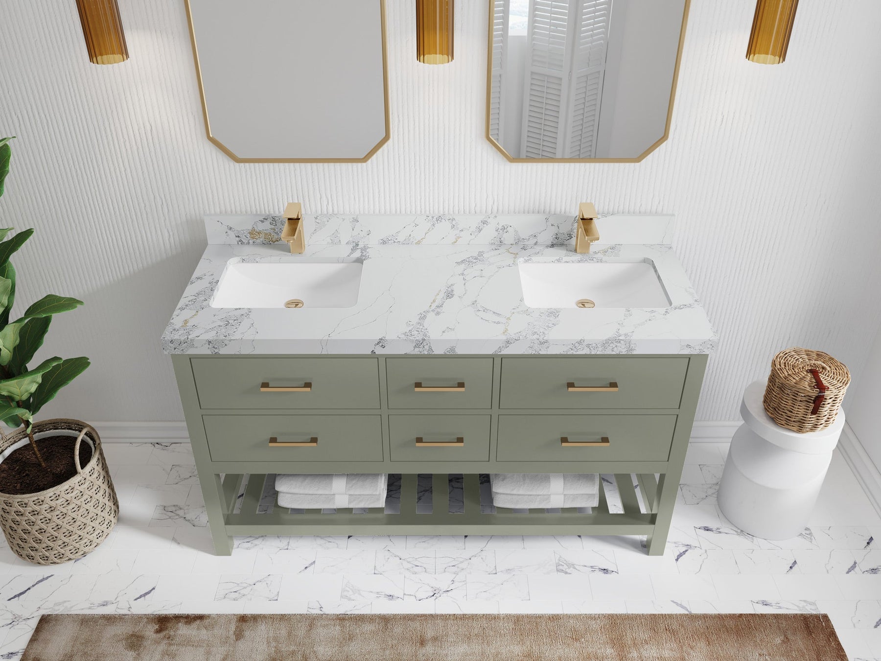 Parker 60 in. W x 22 in. D Double Sink Bathroom Vanity | Evergreen