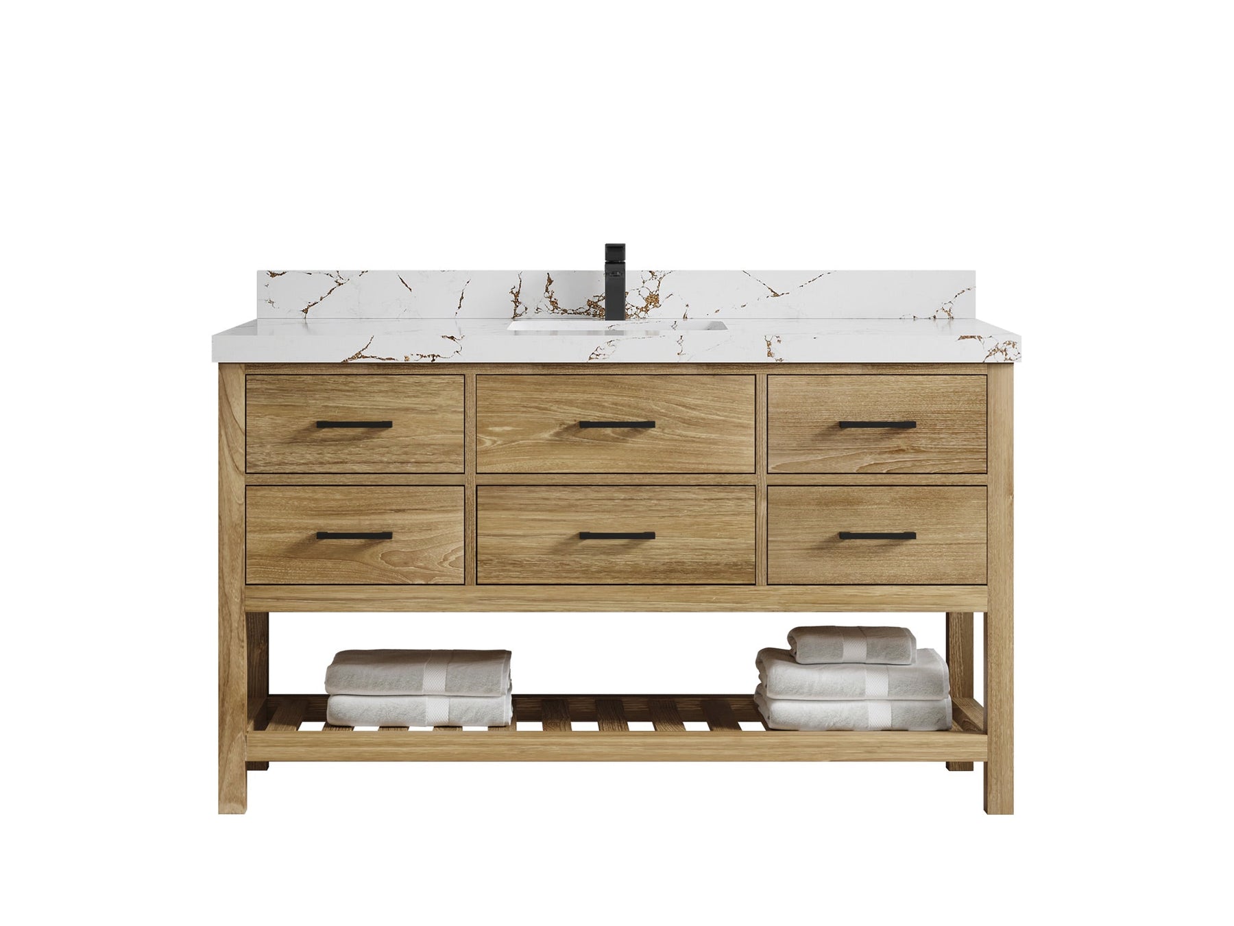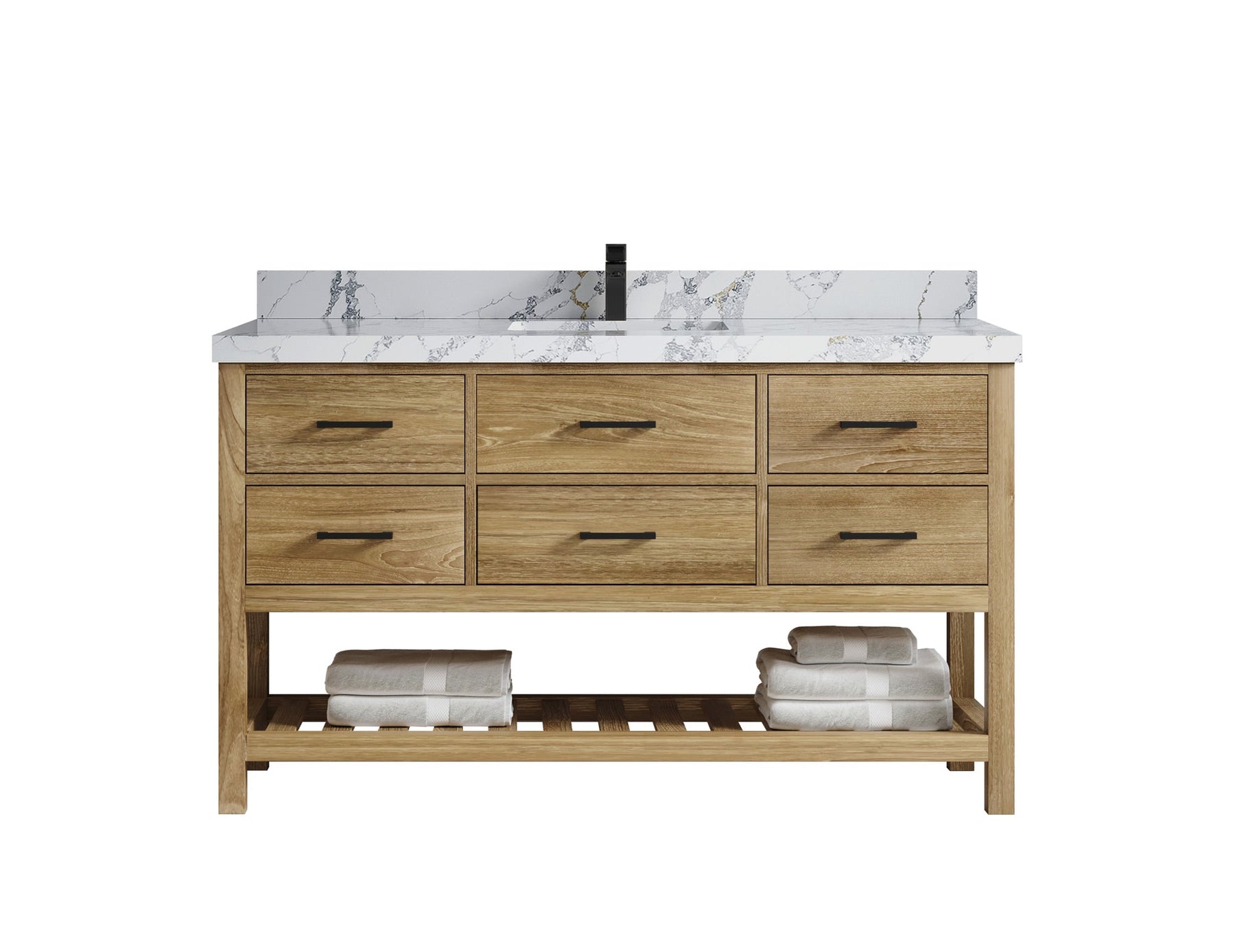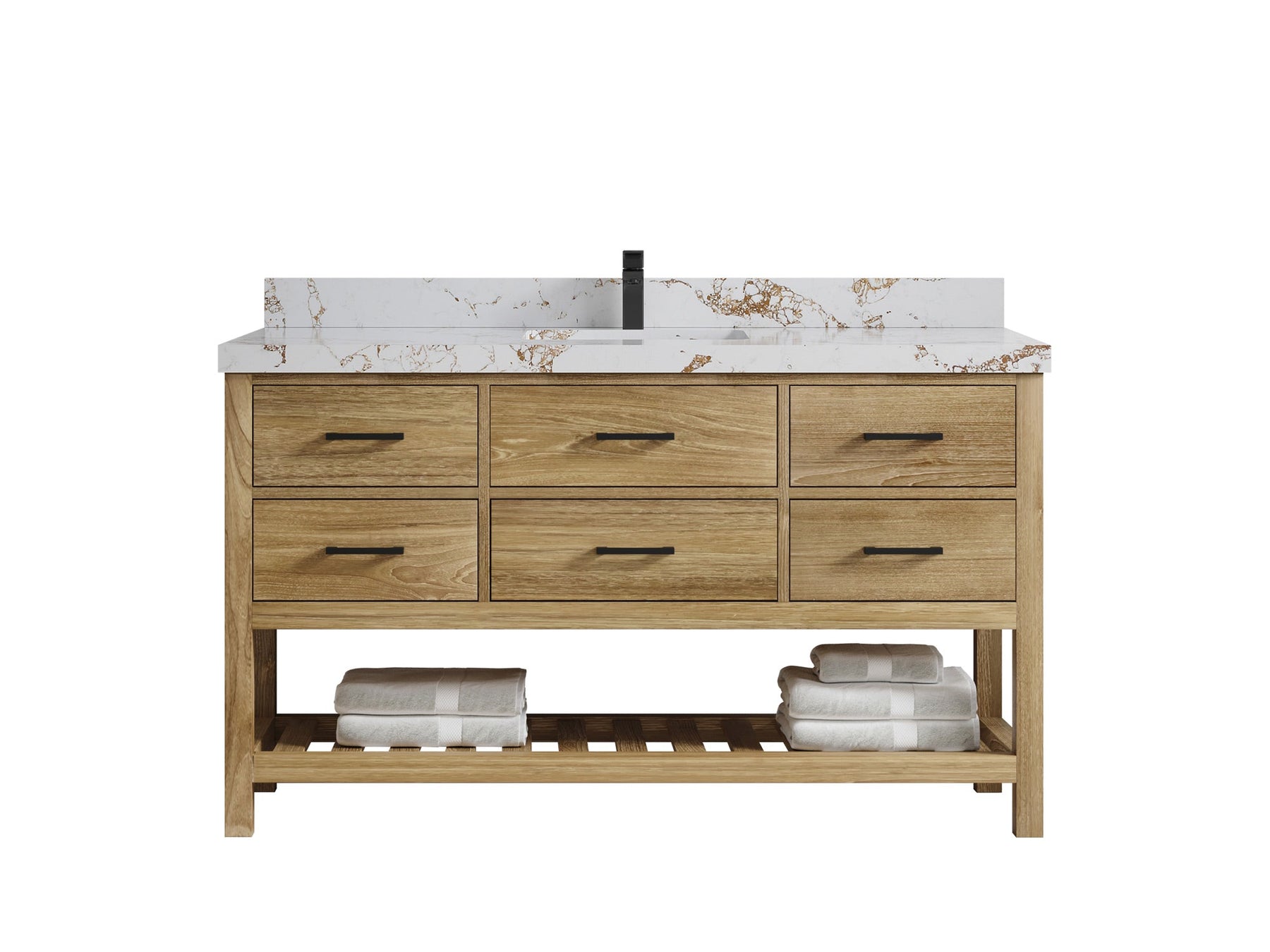 Parker Teak Wood 60 in. W x 22 in. D Single Sink Bathroom Vanity