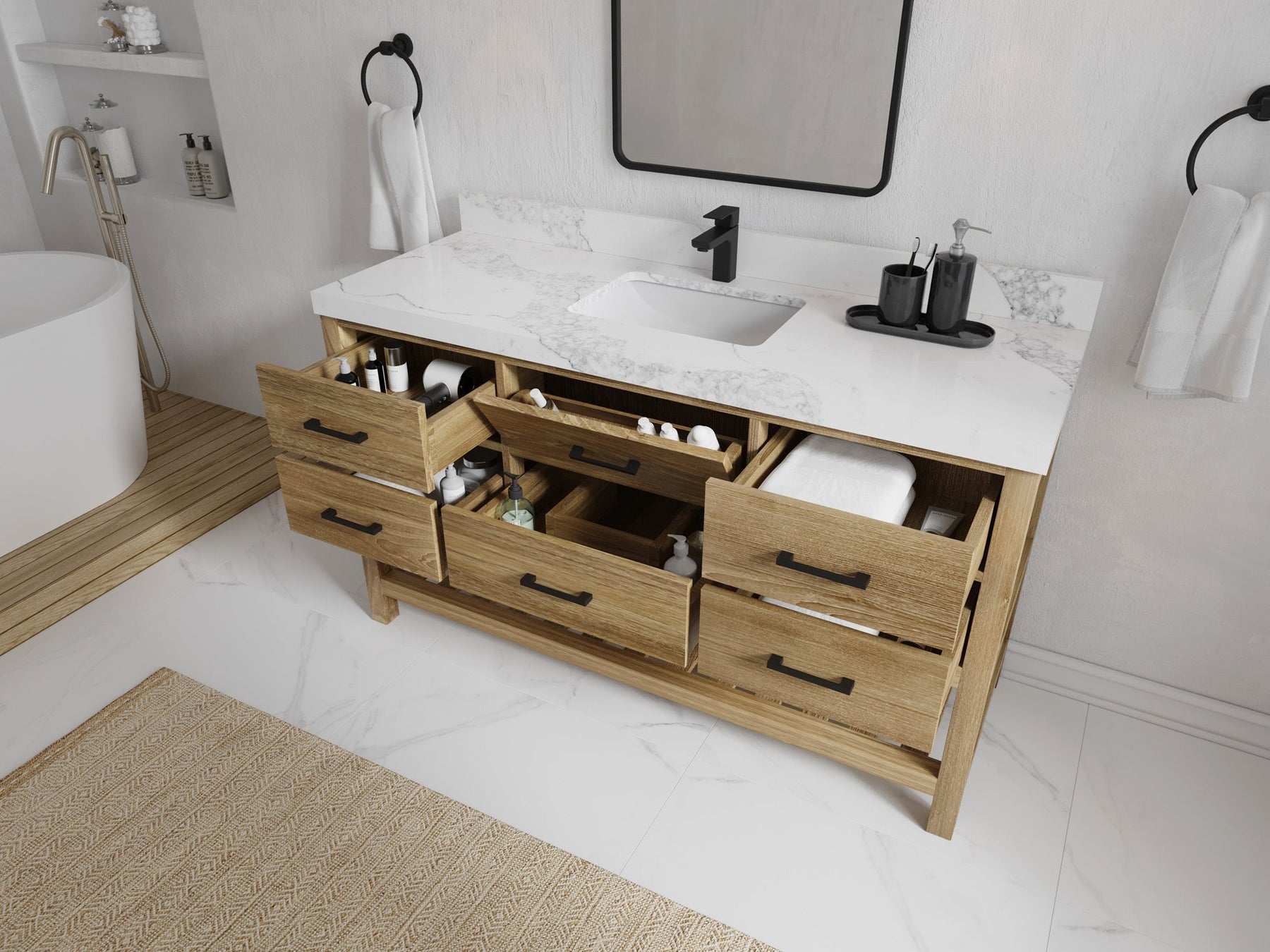 Parker Teak Wood 60 in. W x 22 in. D Single Sink Bathroom Vanity | Premium Natural Teak