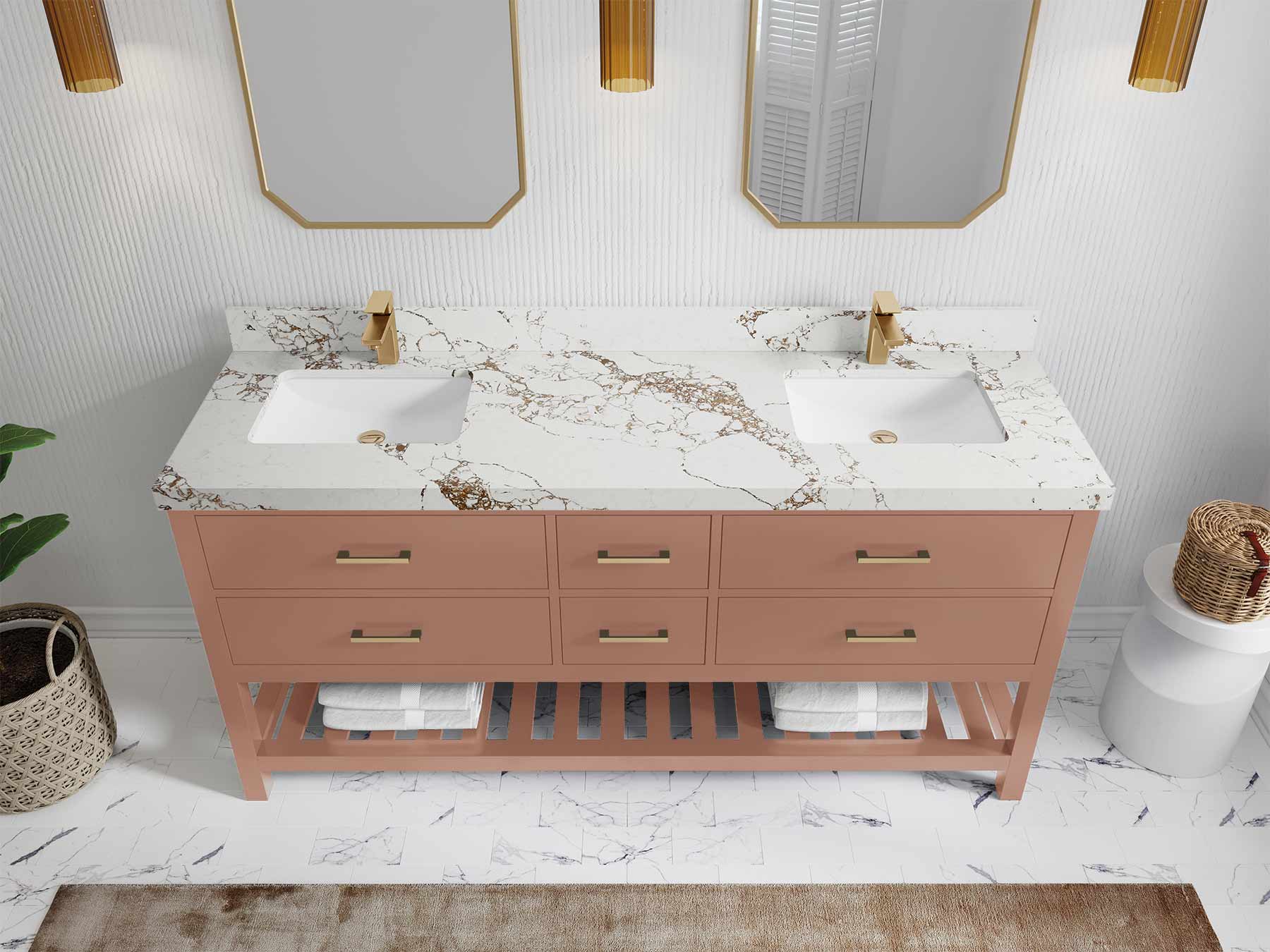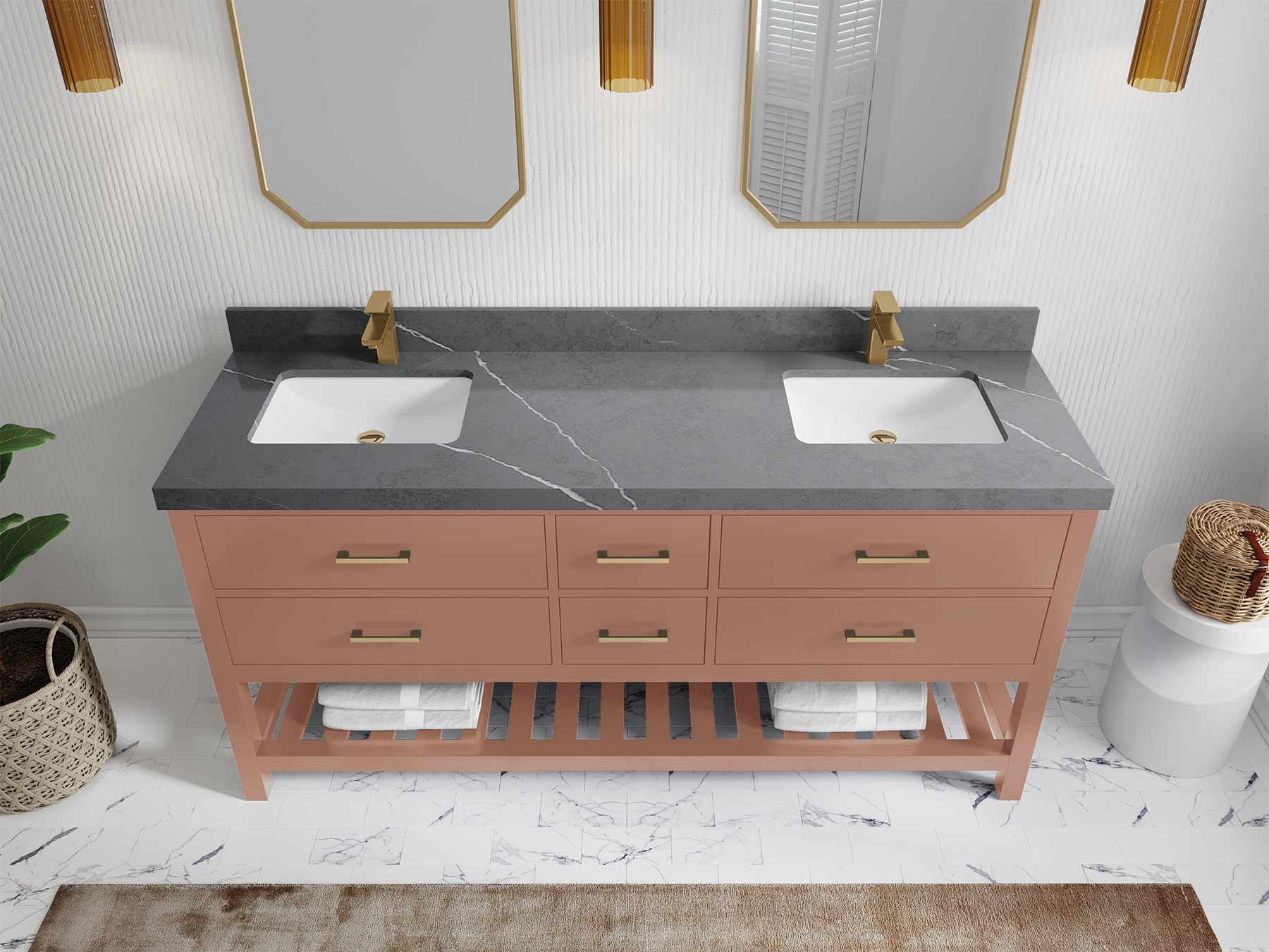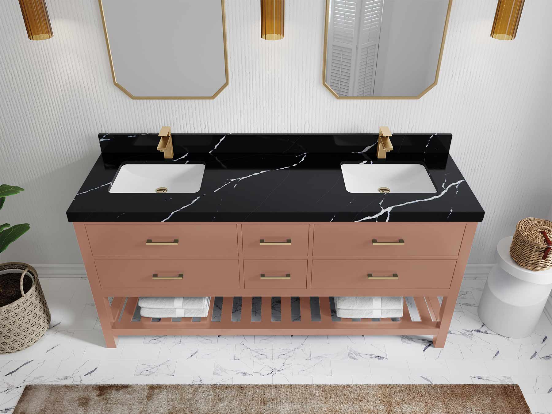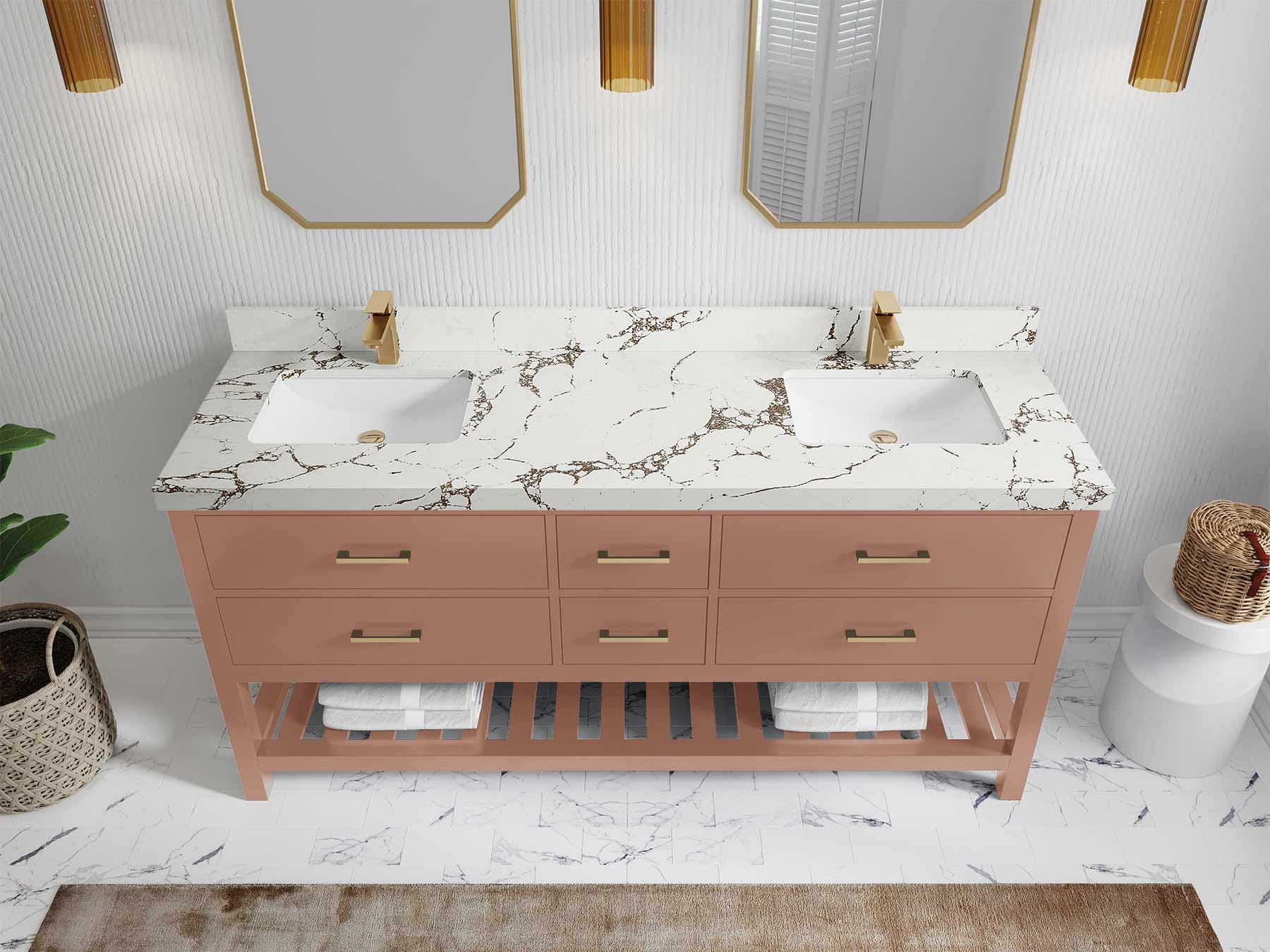 Vanity Countertops options: For Calacatta Laza Quartz, Empira White Quartz, Pure White Quartz, Palissandro Quartz we have 2 options Straight-Mitered Edge and Double Cove Edge; For Calacatta Nuvo Quartz, Carrara Marble, Carrara Quartz, Piatra Gray Quartz, Pearl Light Gray Quartz, Calacatta Black Quartz, Calacatta Gold Quartz, Calacatta Sienna Quartz, Calacatta Poanazzo Quartz, Venatino Quartz, Viola Brown Quartz, Viola Gold Quartz, Viola Night Quartz, Viola Biagio Quartz, Berkshire Brass Quartz, Frosty Carrara Quartz, Onyx Quartz we have Straight - Mitered Edge option.