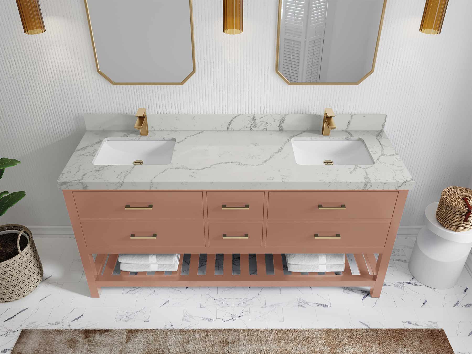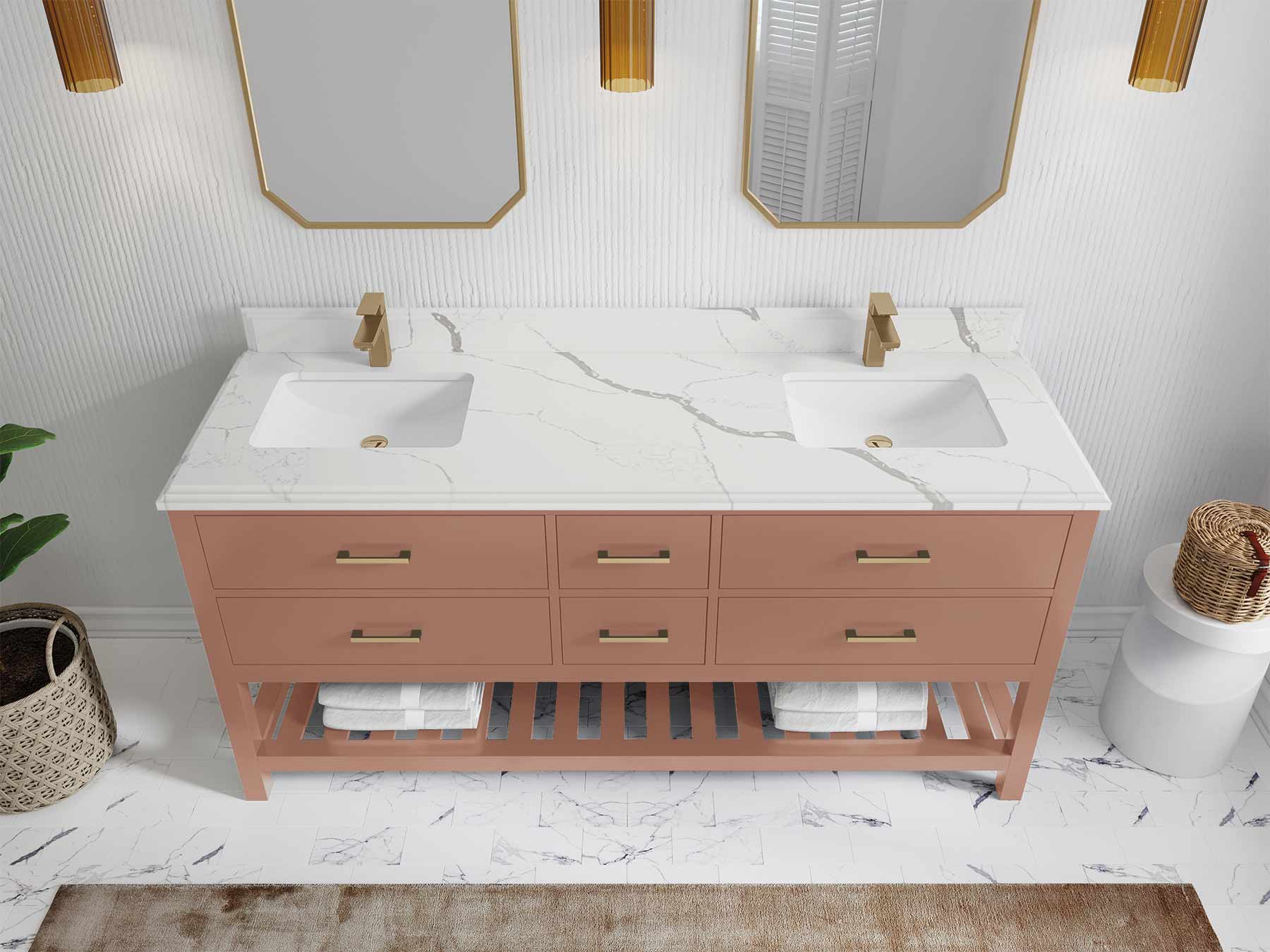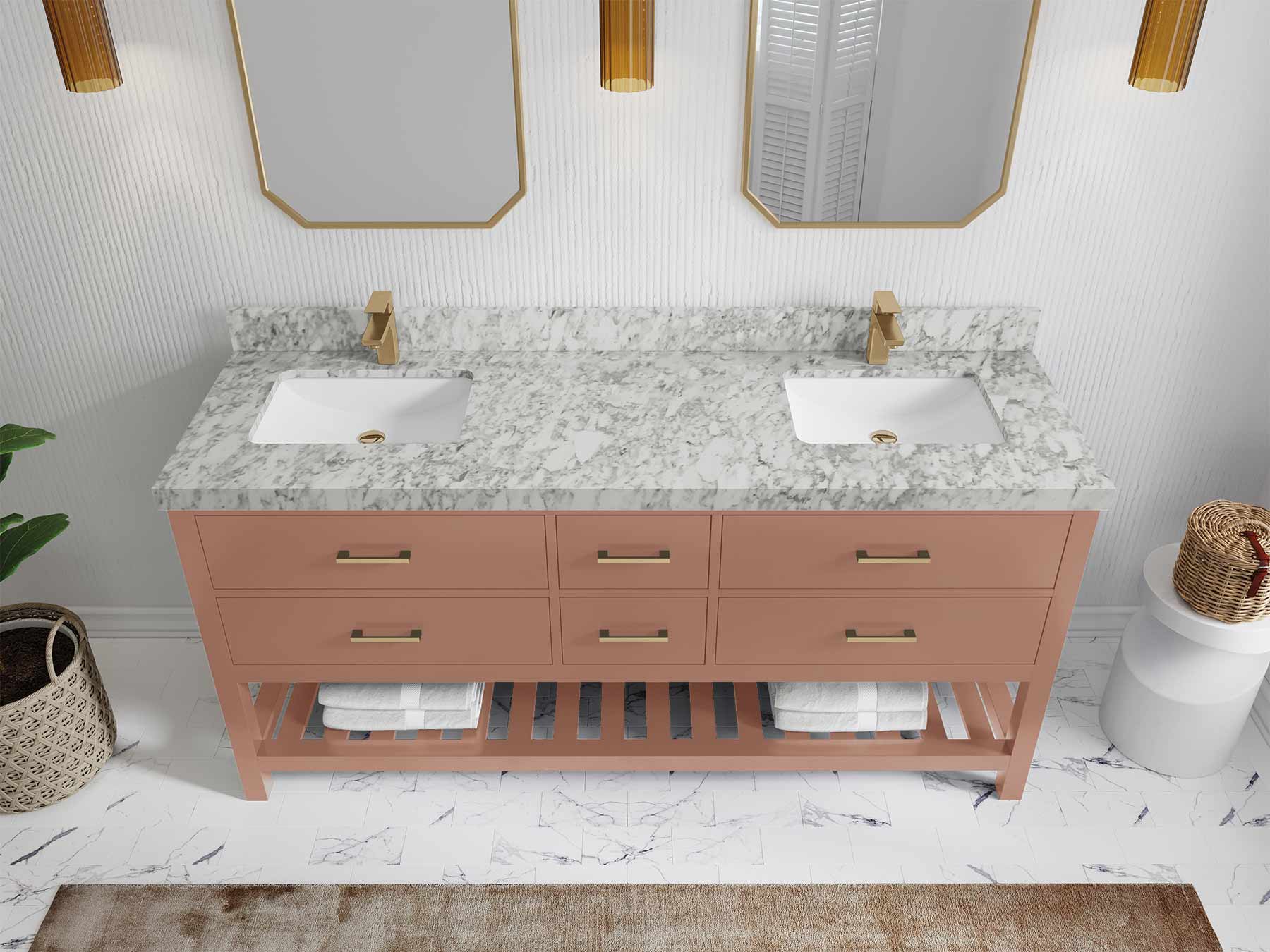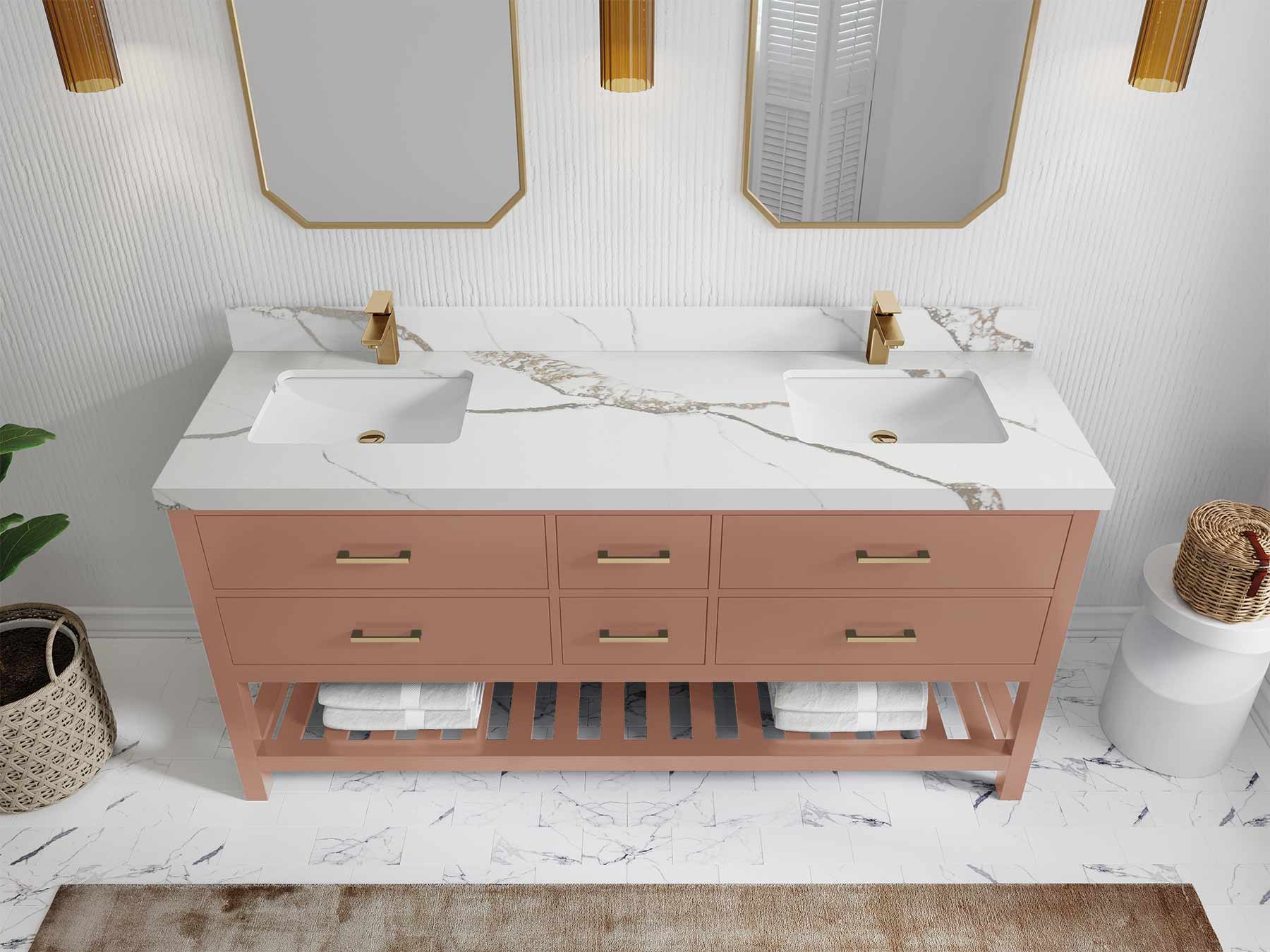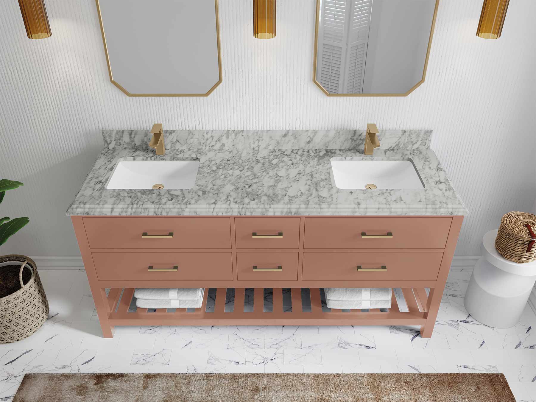 Vanity Countertops options: For Calacatta Laza Quartz, Empira White Quartz, Pure White Quartz, Palissandro Quartz we have 2 options Straight-Mitered Edge and Double Cove Edge; For Calacatta Nuvo Quartz, Carrara Marble, Carrara Quartz, Piatra Gray Quartz, Pearl Light Gray Quartz, Calacatta Black Quartz, Calacatta Gold Quartz, Calacatta Sienna Quartz, Calacatta Poanazzo Quartz, Venatino Quartz, Viola Brown Quartz, Viola Gold Quartz, Viola Night Quartz, Viola Biagio Quartz, Berkshire Brass Quartz, Frosty Carrara Quartz, Onyx Quartz we have Straight - Mitered Edge option.