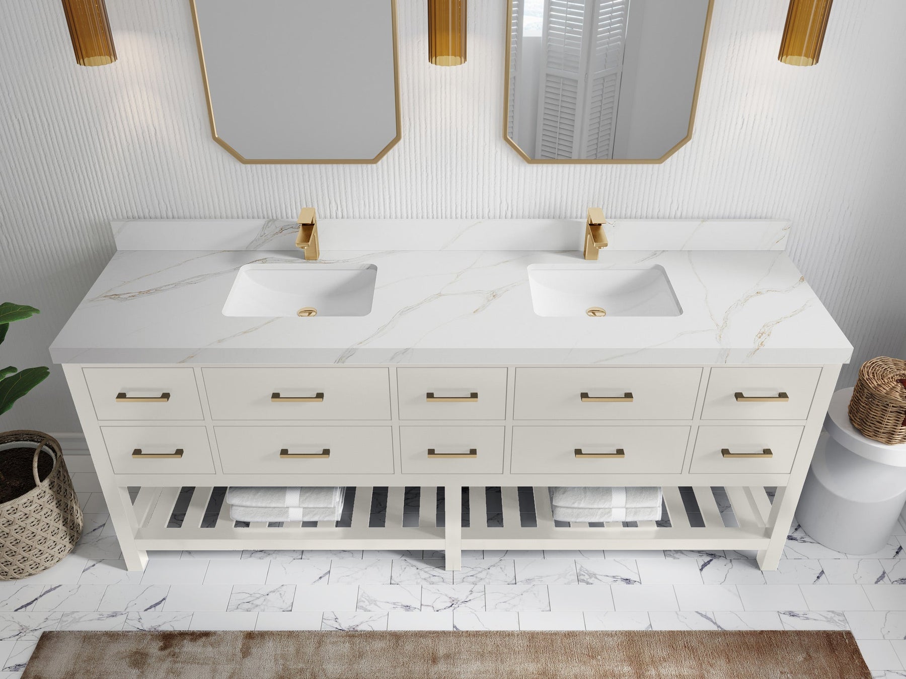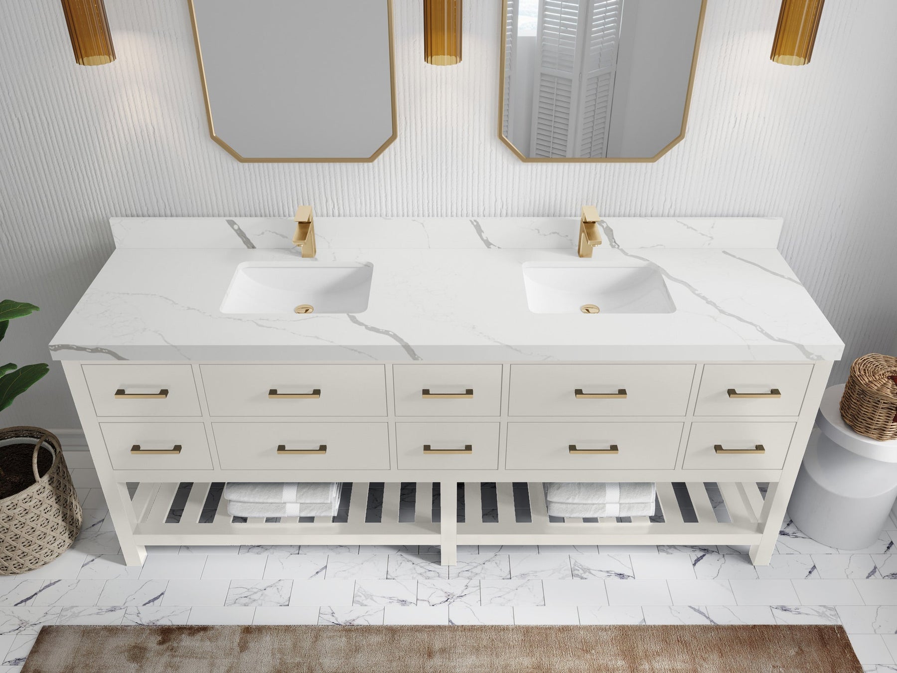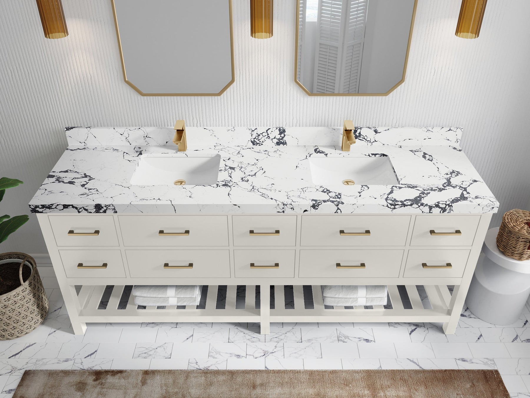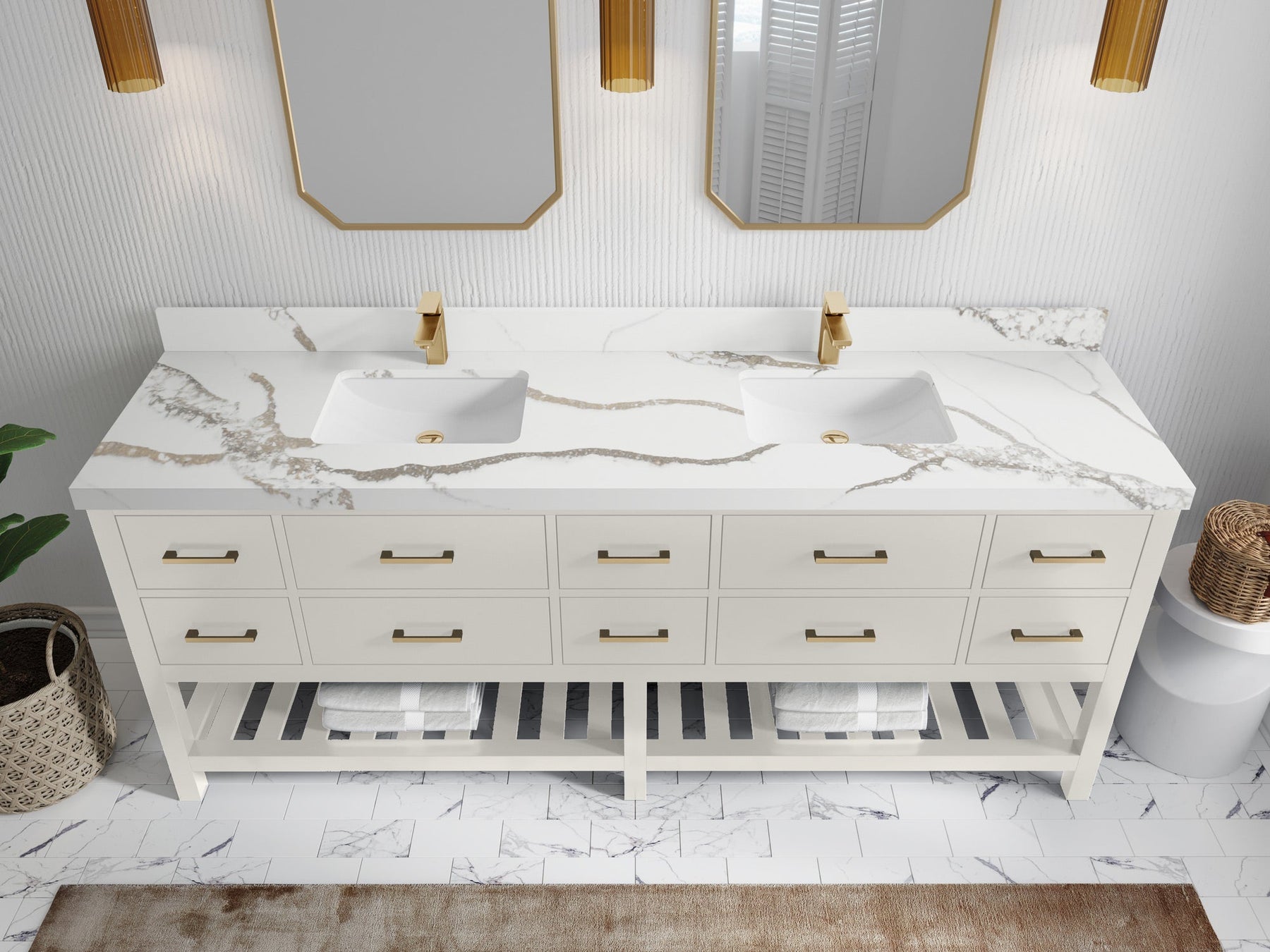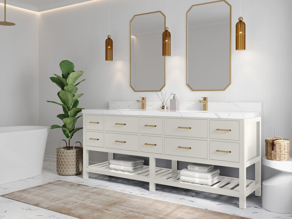 Vanity Countertops options: For Calacatta Laza Quartz, Empira White Quartz, Pure White Quartz, Palissandro Quartz we have 2 options Straight-Mitered Edge and Double Cove Edge; For Calacatta Nuvo Quartz, Carrara Marble, Carrara Quartz, Piatra Gray Quartz, Pearl Light Gray Quartz, Calacatta Black Quartz, Calacatta Gold Quartz, Calacatta Sienna Quartz, Calacatta Poanazzo Quartz, Venatino Quartz, Viola Brown Quartz, Viola Gold Quartz, Viola Night Quartz, Viola Biagio Quartz, Berkshire Brass Quartz, Frosty Carrara Quartz, Onyx Quartz we have Straight - Mitered Edge option.