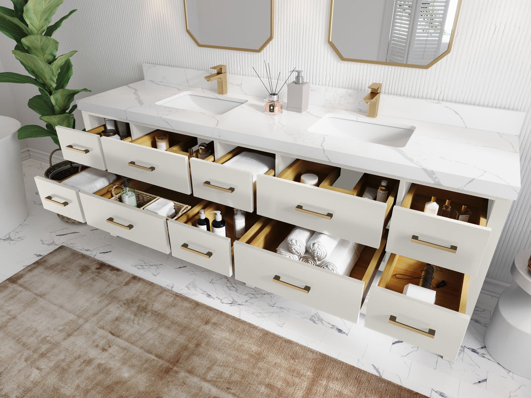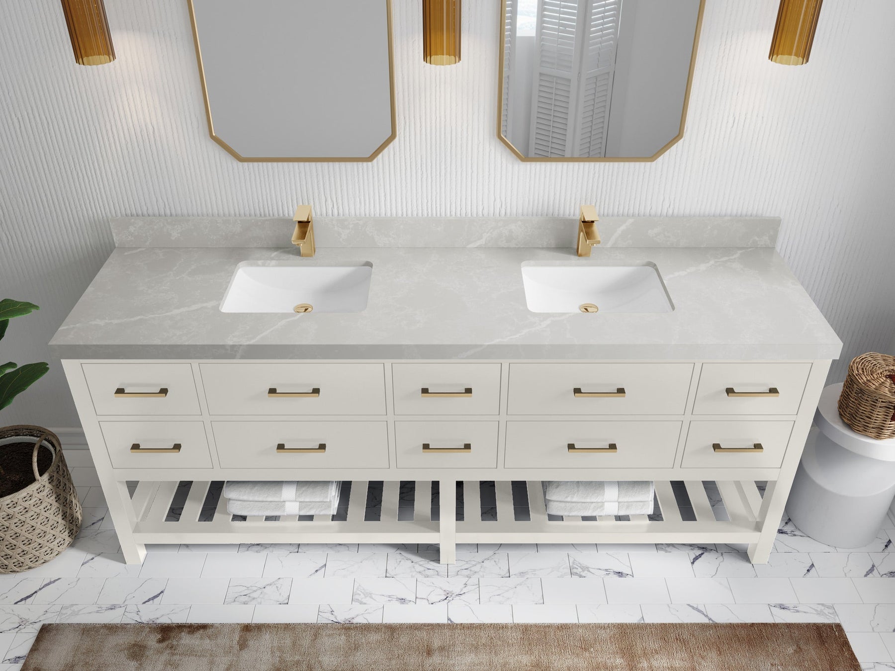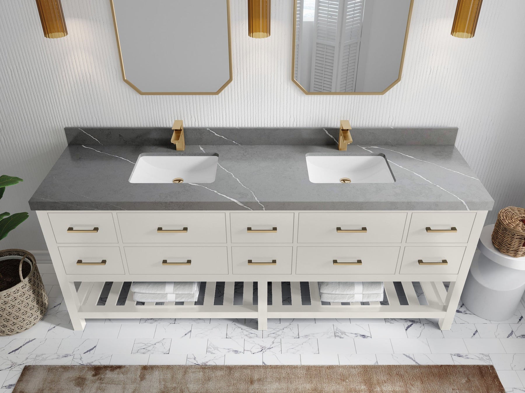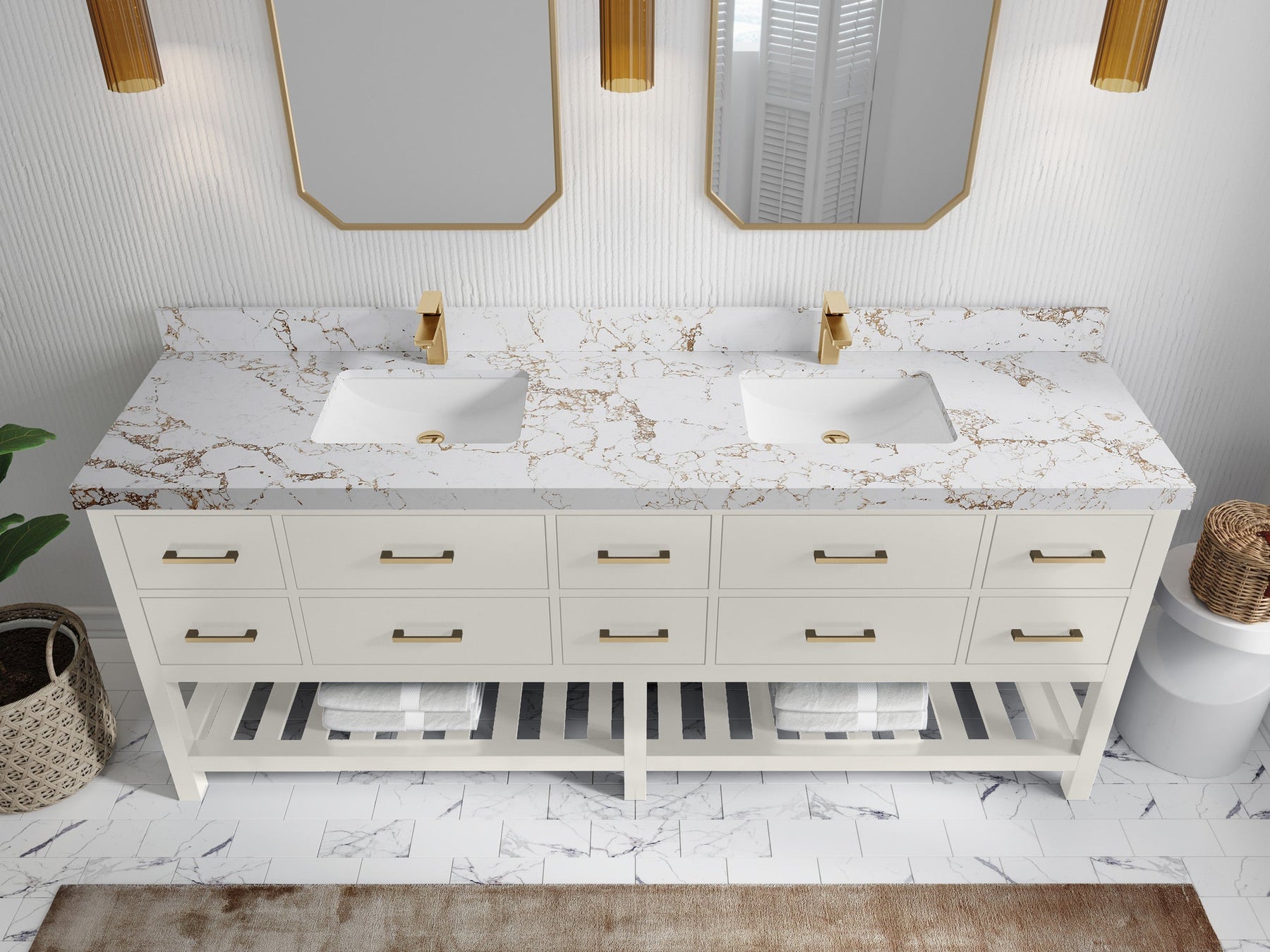 Vanity Countertops options: For Calacatta Laza Quartz, Empira White Quartz, Pure White Quartz, Palissandro Quartz we have 2 options Straight-Mitered Edge and Double Cove Edge; For Calacatta Nuvo Quartz, Carrara Marble, Carrara Quartz, Piatra Gray Quartz, Pearl Light Gray Quartz, Calacatta Black Quartz, Calacatta Gold Quartz, Calacatta Sienna Quartz, Calacatta Poanazzo Quartz, Venatino Quartz, Viola Brown Quartz, Viola Gold Quartz, Viola Night Quartz, Viola Biagio Quartz, Berkshire Brass Quartz, Frosty Carrara Quartz, Onyx Quartz we have Straight - Mitered Edge option.