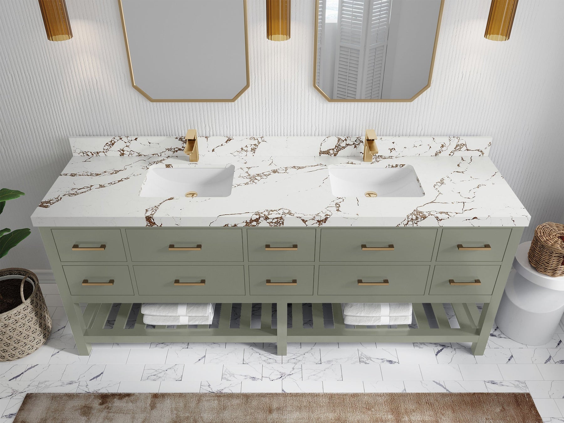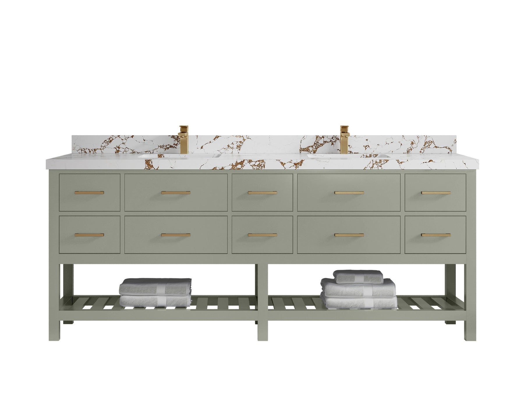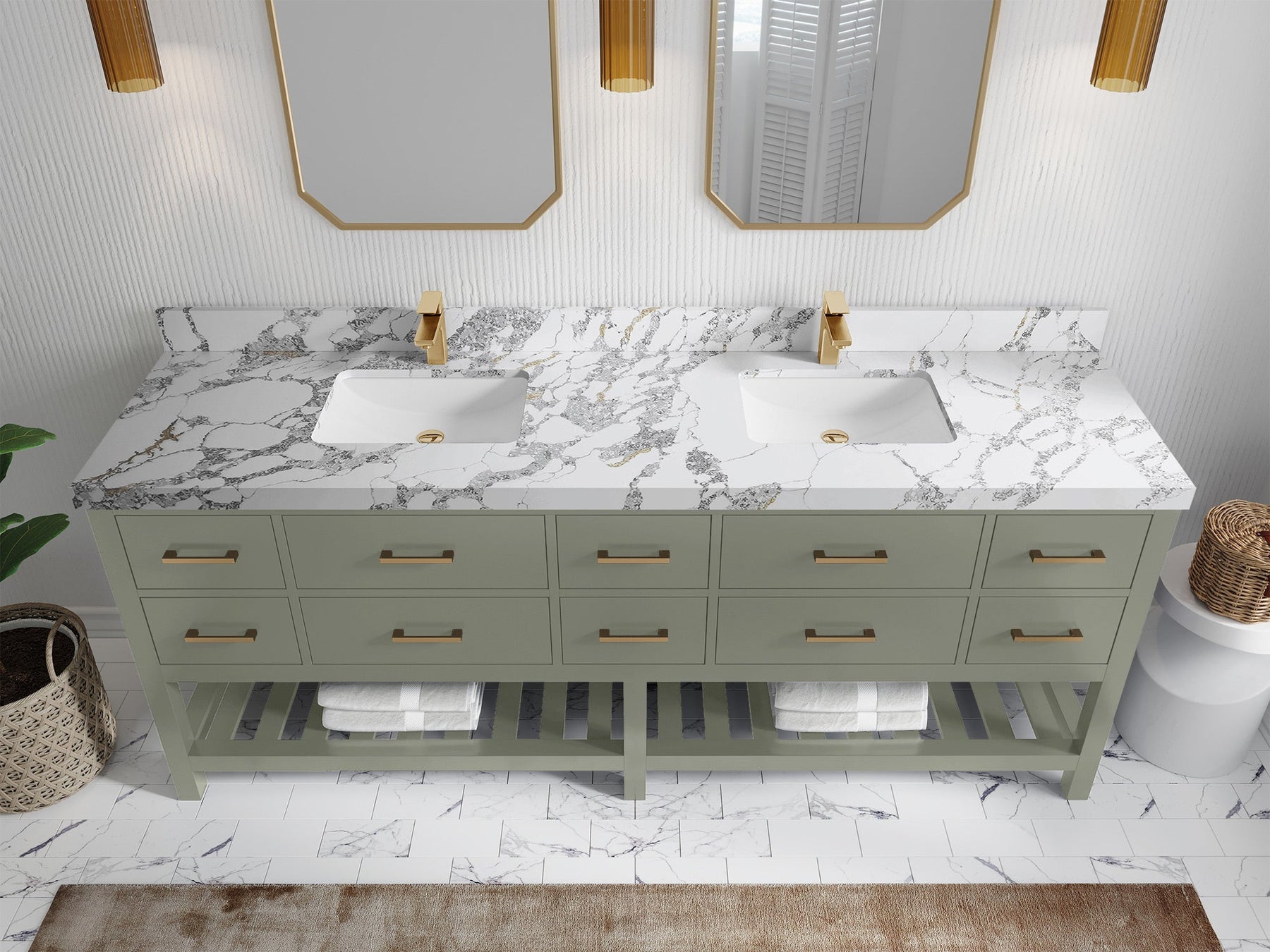 Vanity Countertops options: For Calacatta Laza Quartz, Empira White Quartz, Pure White Quartz, Palissandro Quartz, Calacatta Nuvo Quartz, Carrara Marble, Carrara Quartz, Piatra Gray Quartz, Pearl Light Gray Quartz, Calacatta Black Quartz, Calacatta Gold Quartz, Calacatta Sienna Quartz, Calacatta Poanazzo Quartz, Venatino Quartz, Viola Brown Quartz, Viola Gold Quartz, Viola Night Quartz, Viola Biagio Quartz, Berkshire Brass Quartz, Frosty Carrara Quartz, Onyx Quartz we have Straight - Mitered Edge option.