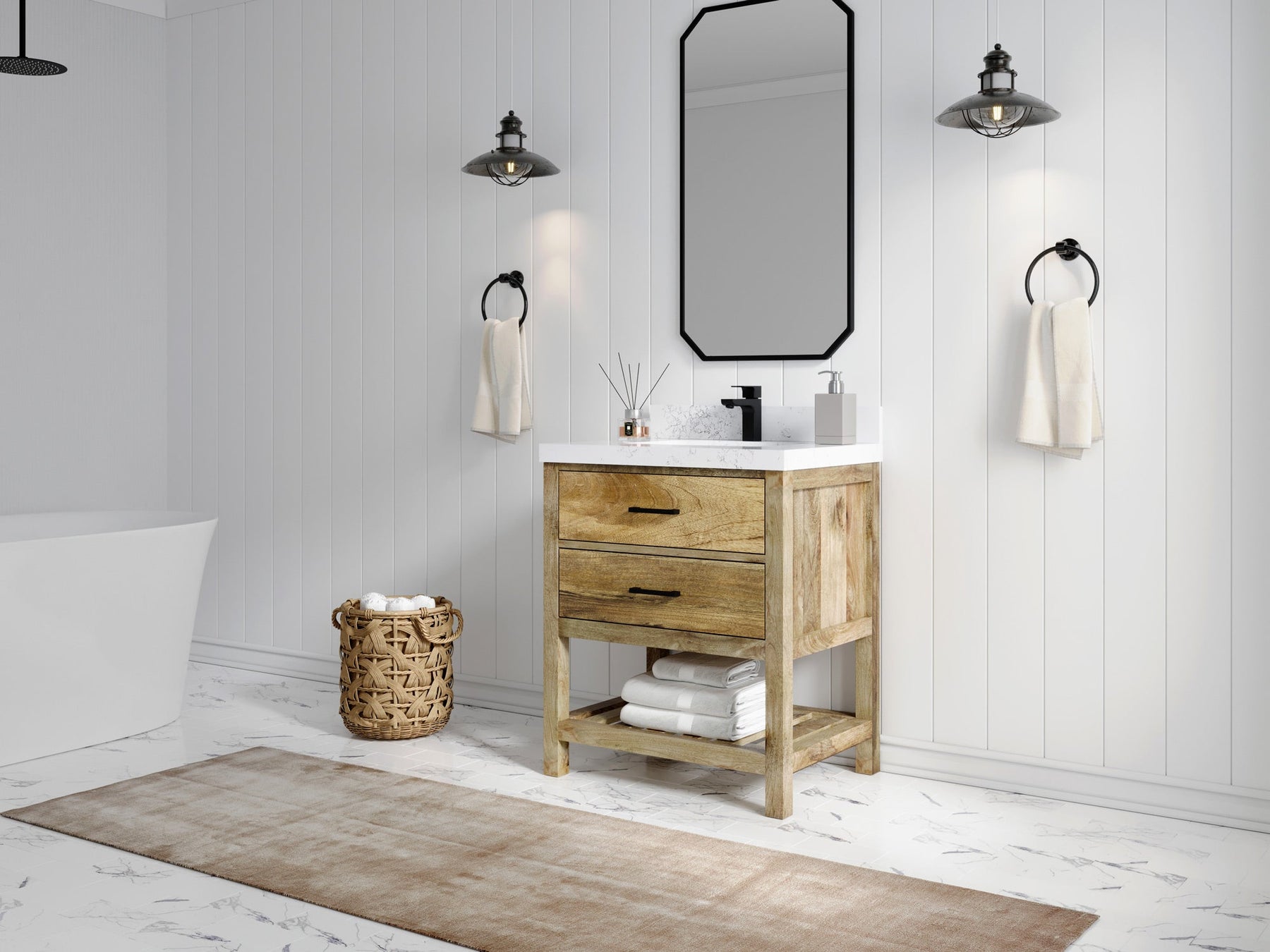 1. Sleek & Minimalist - made from Mango Wood, this vanity features sleek and minimalist design creates a modern and uncluttered look in the bathroom.