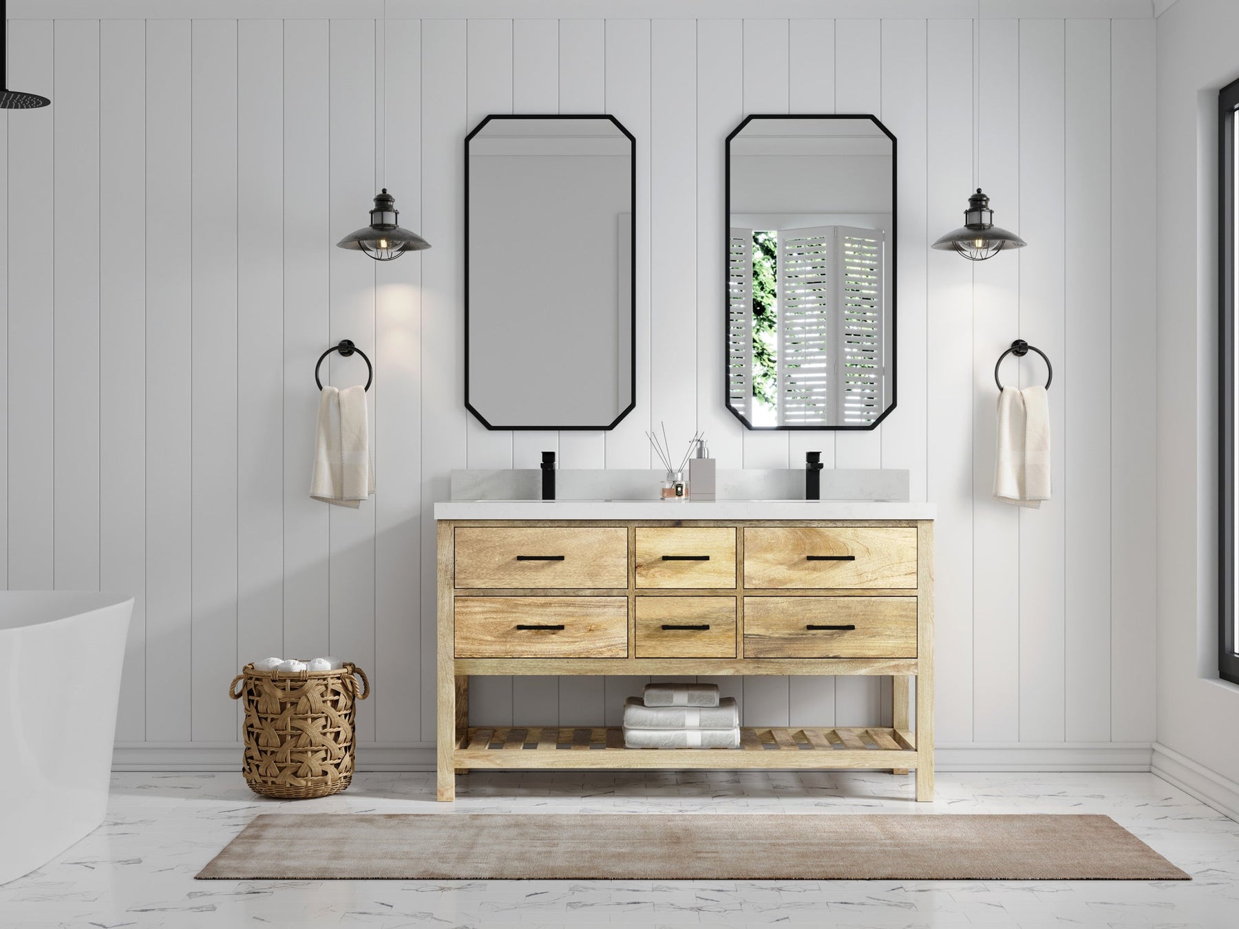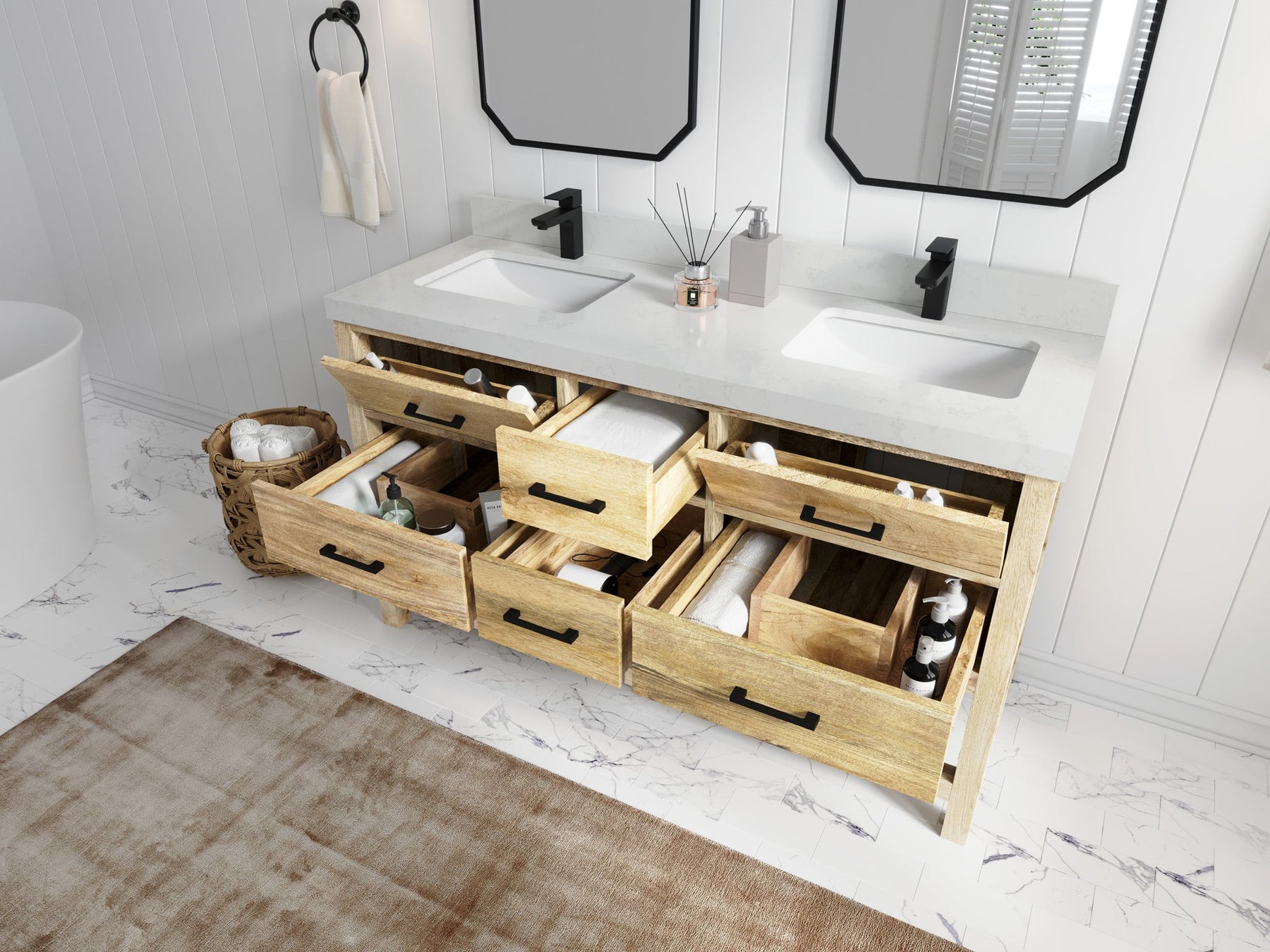 Vanity Countertops options: For Calacatta Laza Quartz, Empira White Quartz, Pure White Quartz we have 2 options Straight-Mitered Edge & Double Cove Edge, For Calacatta Nuvo, Carrara Marble, Carrara Quartz, Pearl Light Gray Quartz, Piatra Gray Quartz, and Light Concrete Gray Quartz we only have Straight - Mitered Edge option.