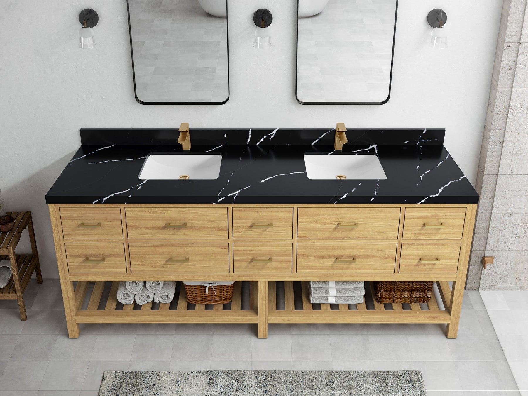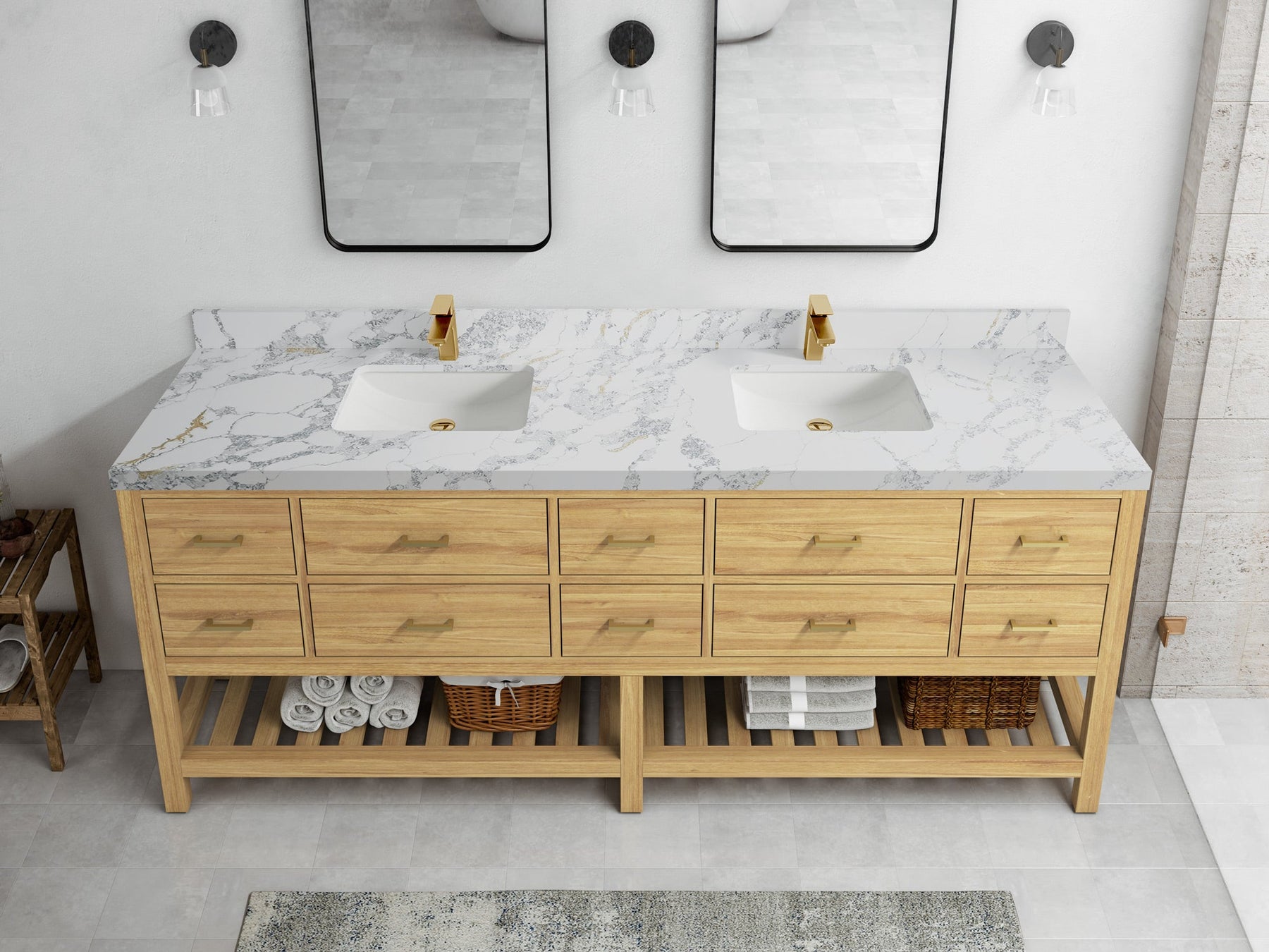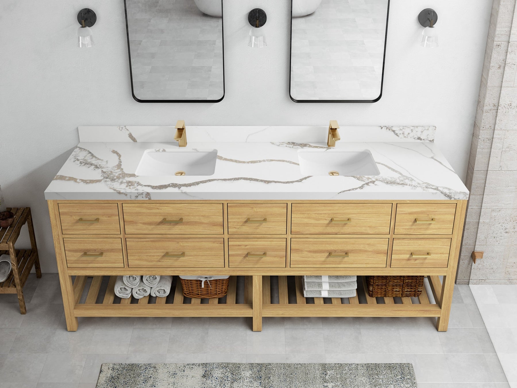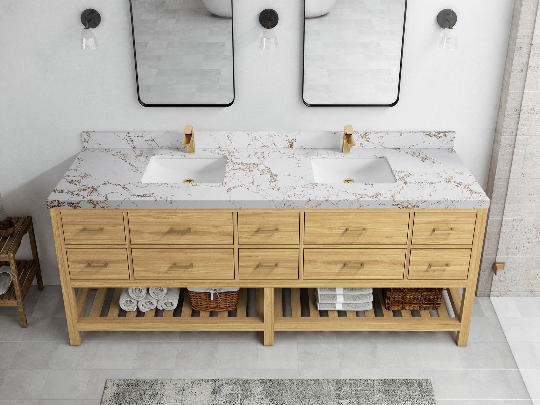 Vanity Countertops options: For Calacatta Laza Quartz, Empira White Quartz, Pure White Quartz, Palissandro Quartz, Calacatta Nuvo Quartz, Carrara Marble, Carrara Quartz, Piatra Gray Quartz, Pearl Light Gray Quartz, Calacatta Black Quartz, Calacatta Gold Quartz, Calacatta Sienna Quartz, Calacatta Poanazzo Quartz, Venatino Quartz, Viola Brown Quartz, Viola Gold Quartz, Viola Night Quartz, Viola Biagio Quartz, Berkshire Brass Quartz, Frosty Carrara Quartz, Onyx Quartz we have Straight - Mitered Edge option.