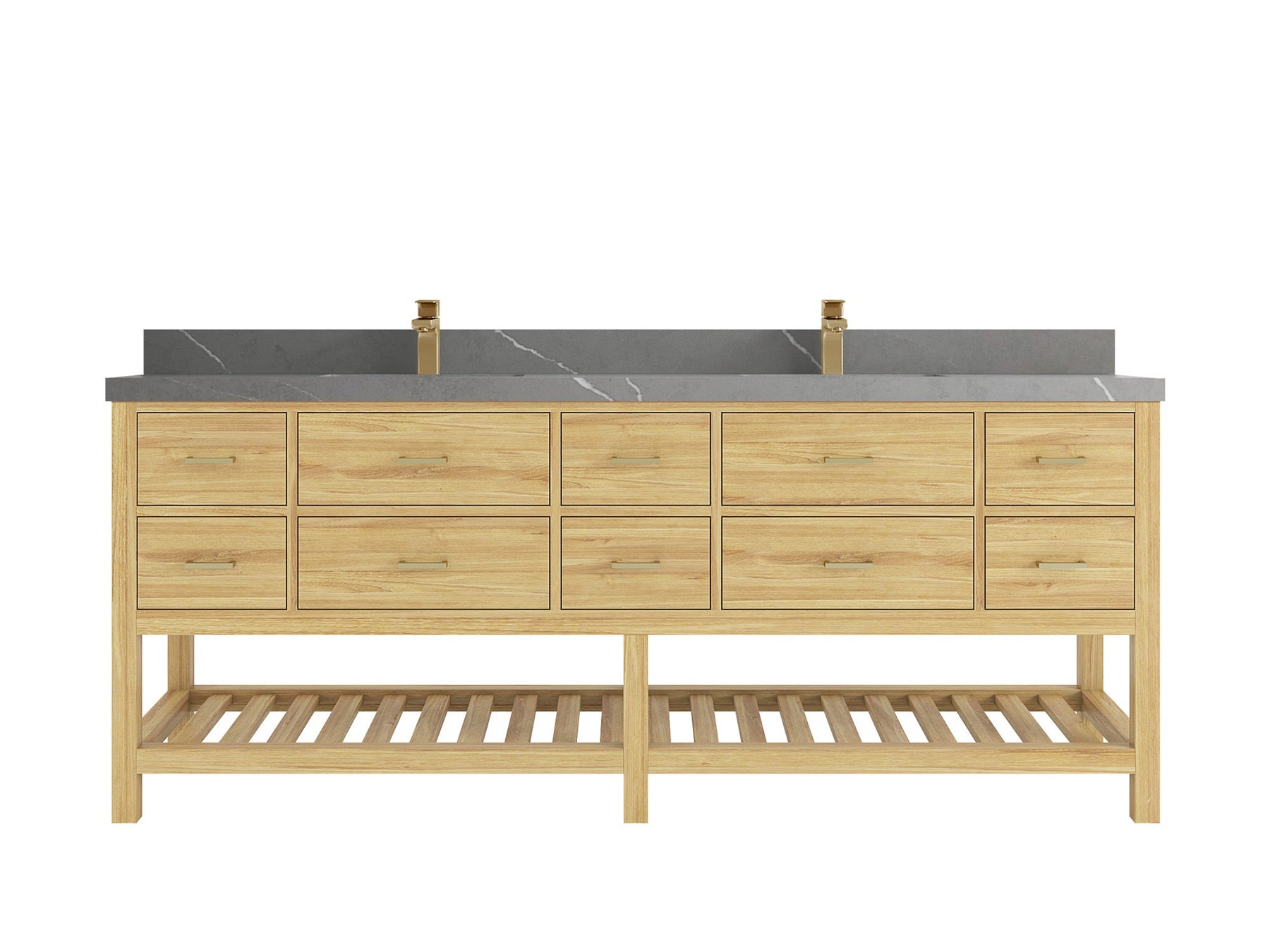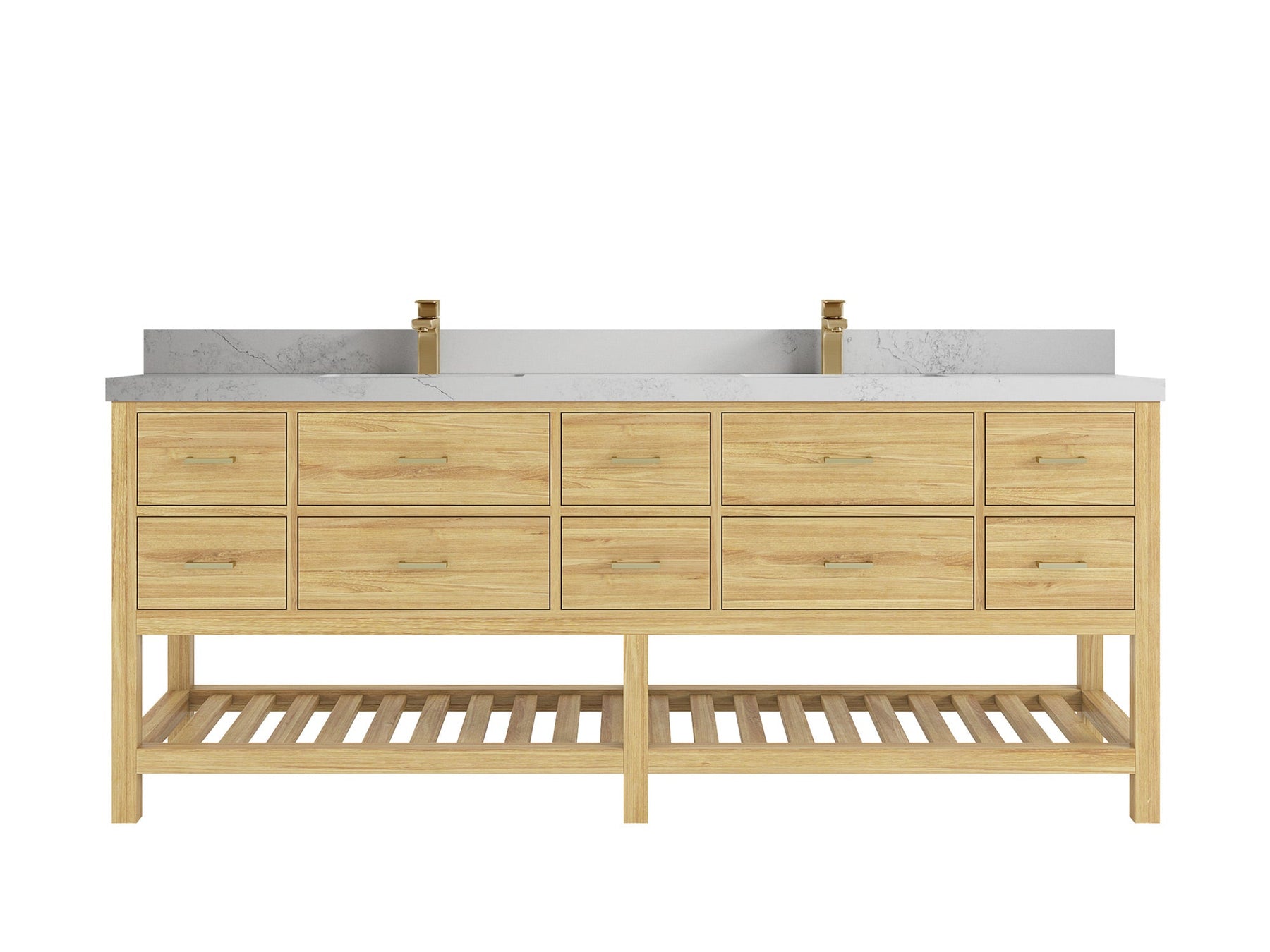 Parker Teak Wood 84 in. W x 22 in. D Double Sink Bathroom vanity with | Light Natural Teak