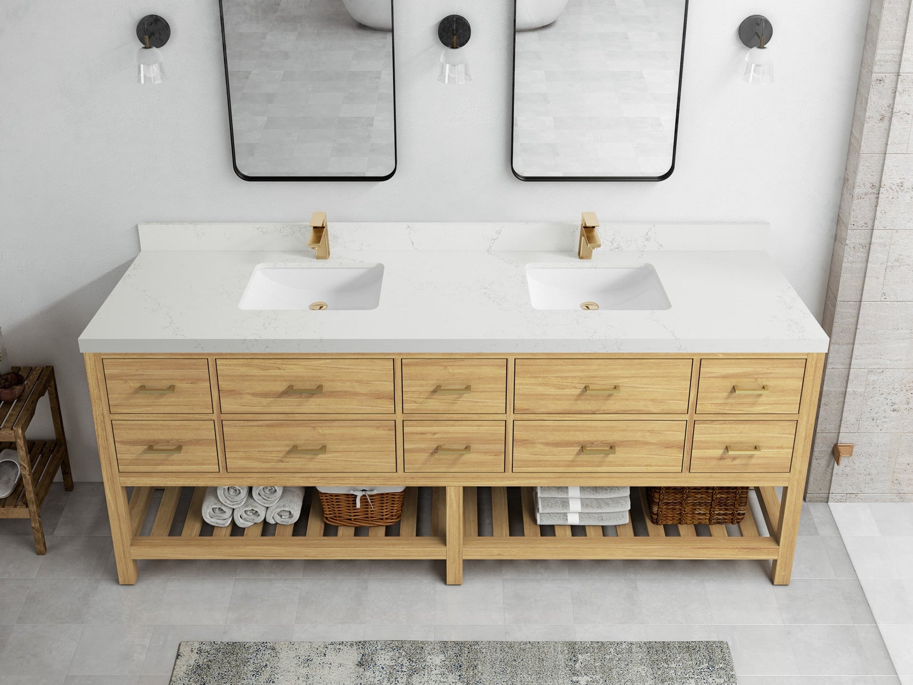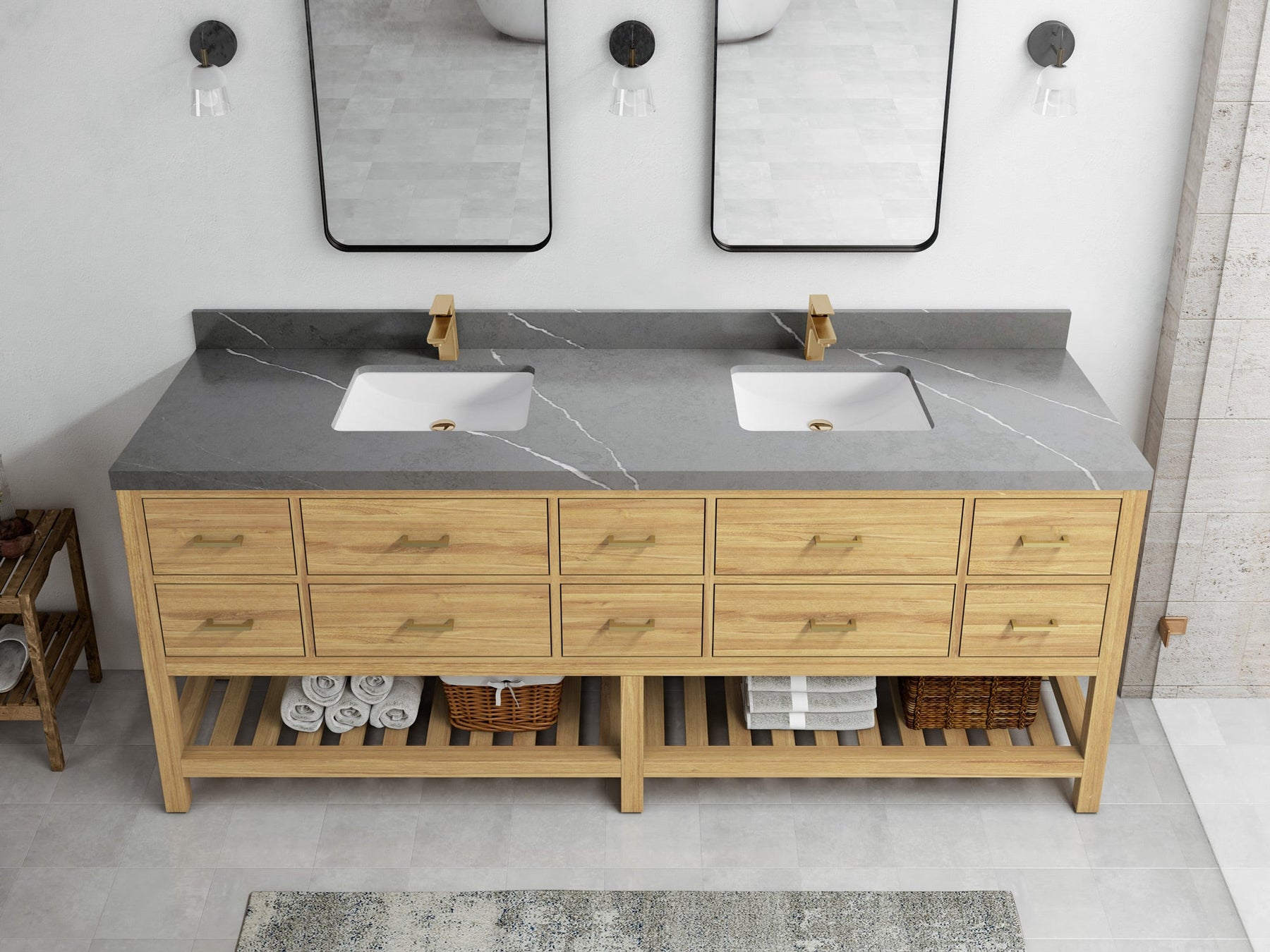Parker Teak Wood 84 in. W x 22 in. D Double Sink Bathroom vanity with - Willow Bath and Vanity