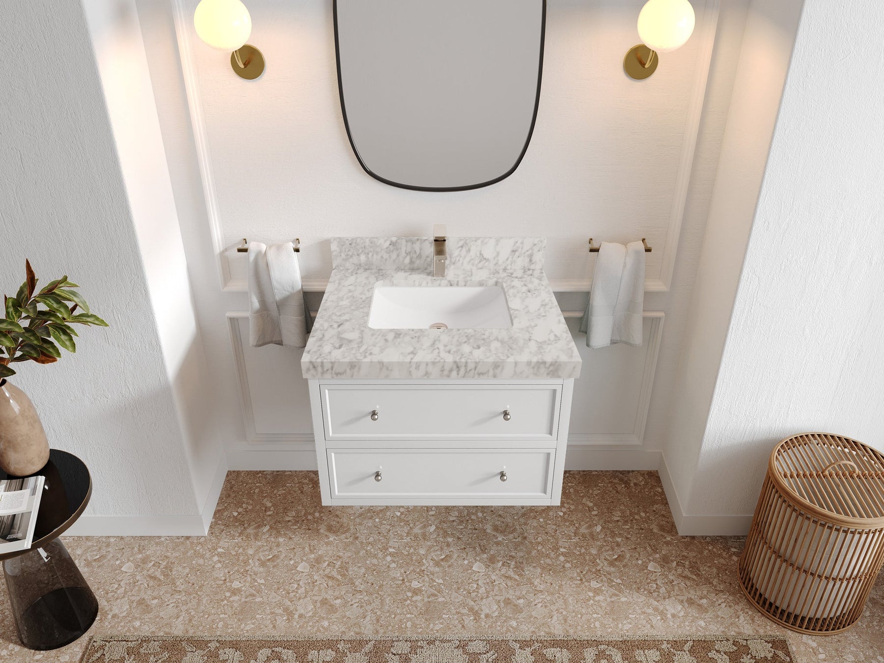 2. Premium Materials: Constructed from high-quality birch wood, the Roswell vanity ensures durability and longevity. The countertop, crafted from elegant marble, offers a smooth, easy-to-clean surface that resists stains and scratches.