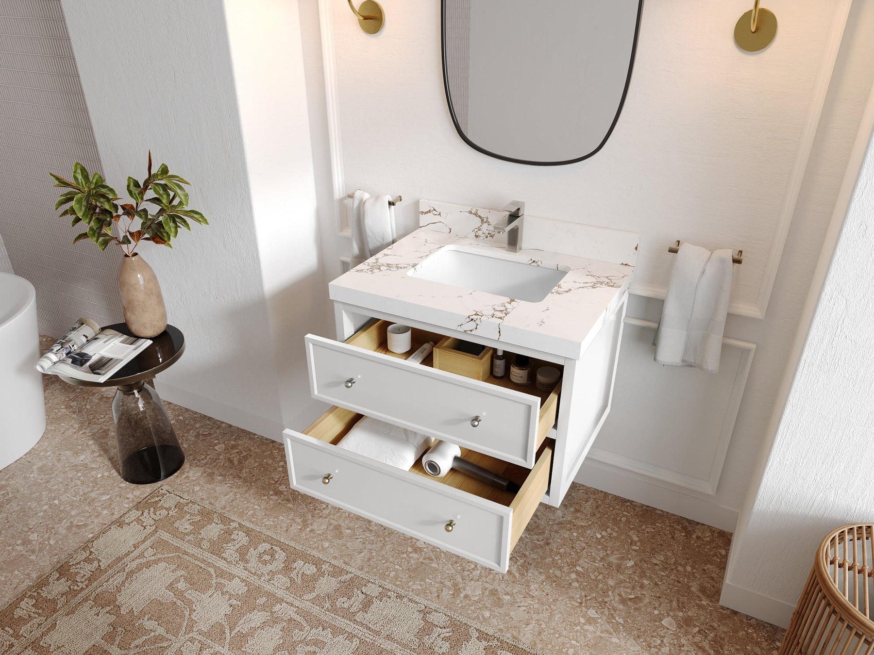 Roswell Floating 30 in. W x 22 in. D Single Sink Bathroom Vanity | White