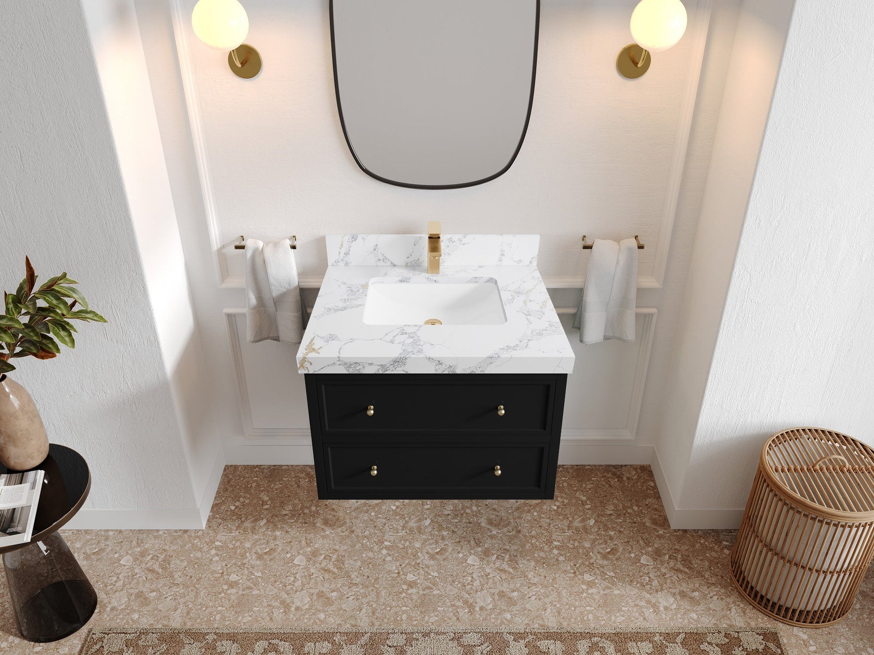 Faucet Hole(S): Comes with Single Faucet, 8 (in.) Widespread Faucet, Wall mount Faucets - Only Available for White Quartz and Carrara Quartz. (PLEASE ADD THIS CONFIGURATION UNDER COUNTERTOPS SECTION )