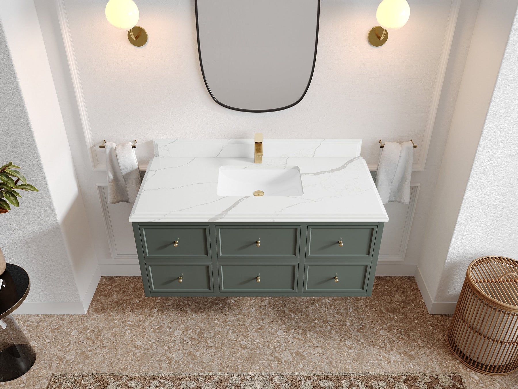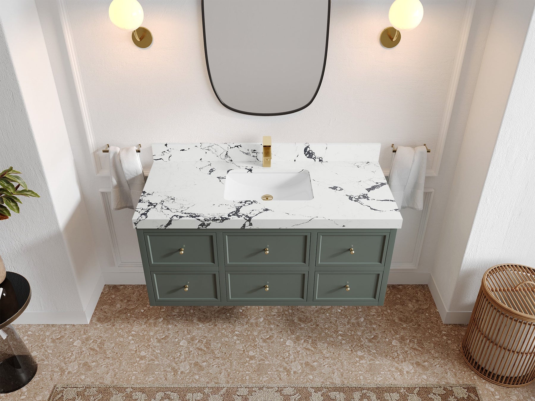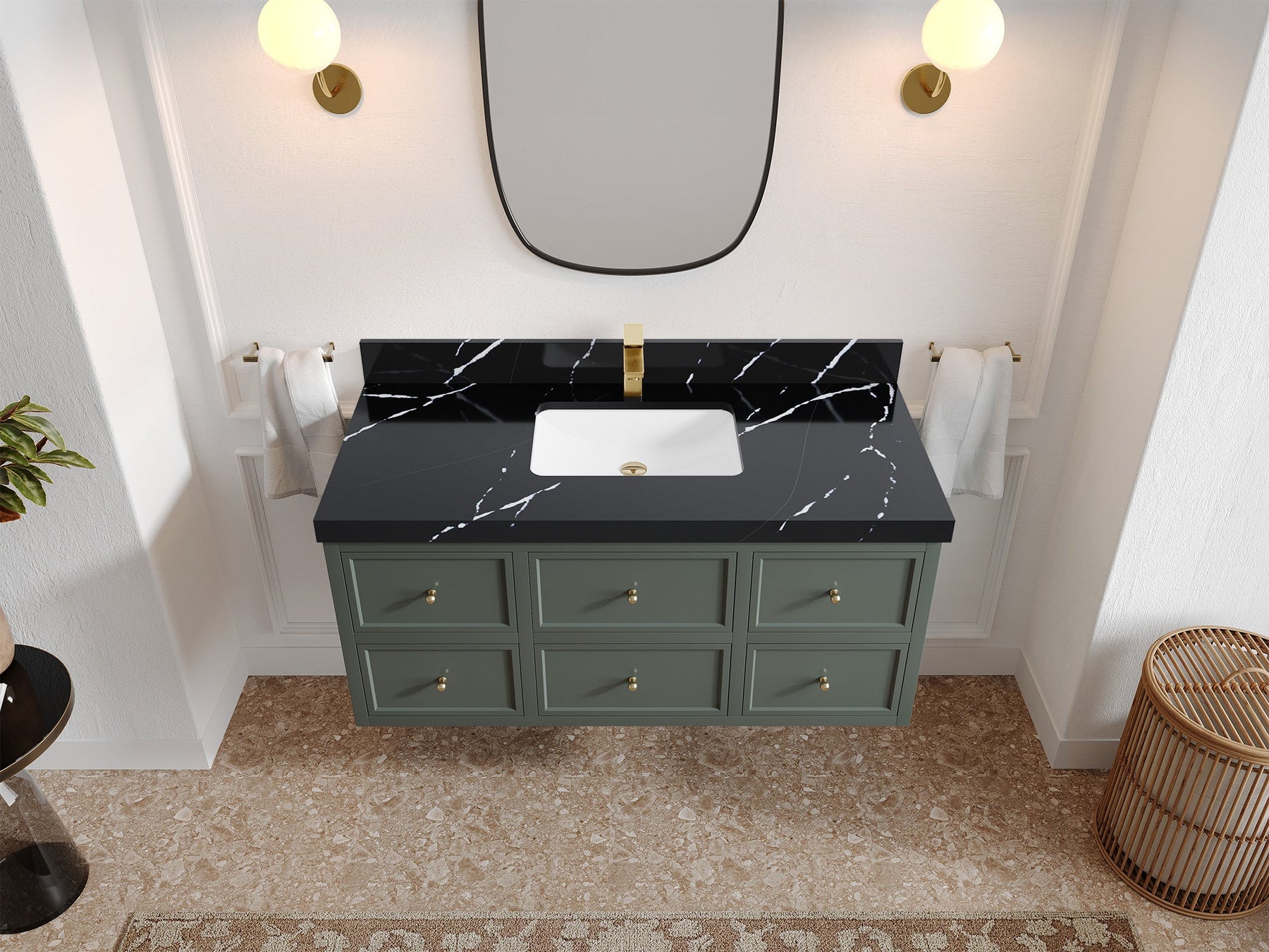 Hardware Finish: White comes with Brushed Nickel Finish; Pewter Green, Black comes with Brushed Gold Finish