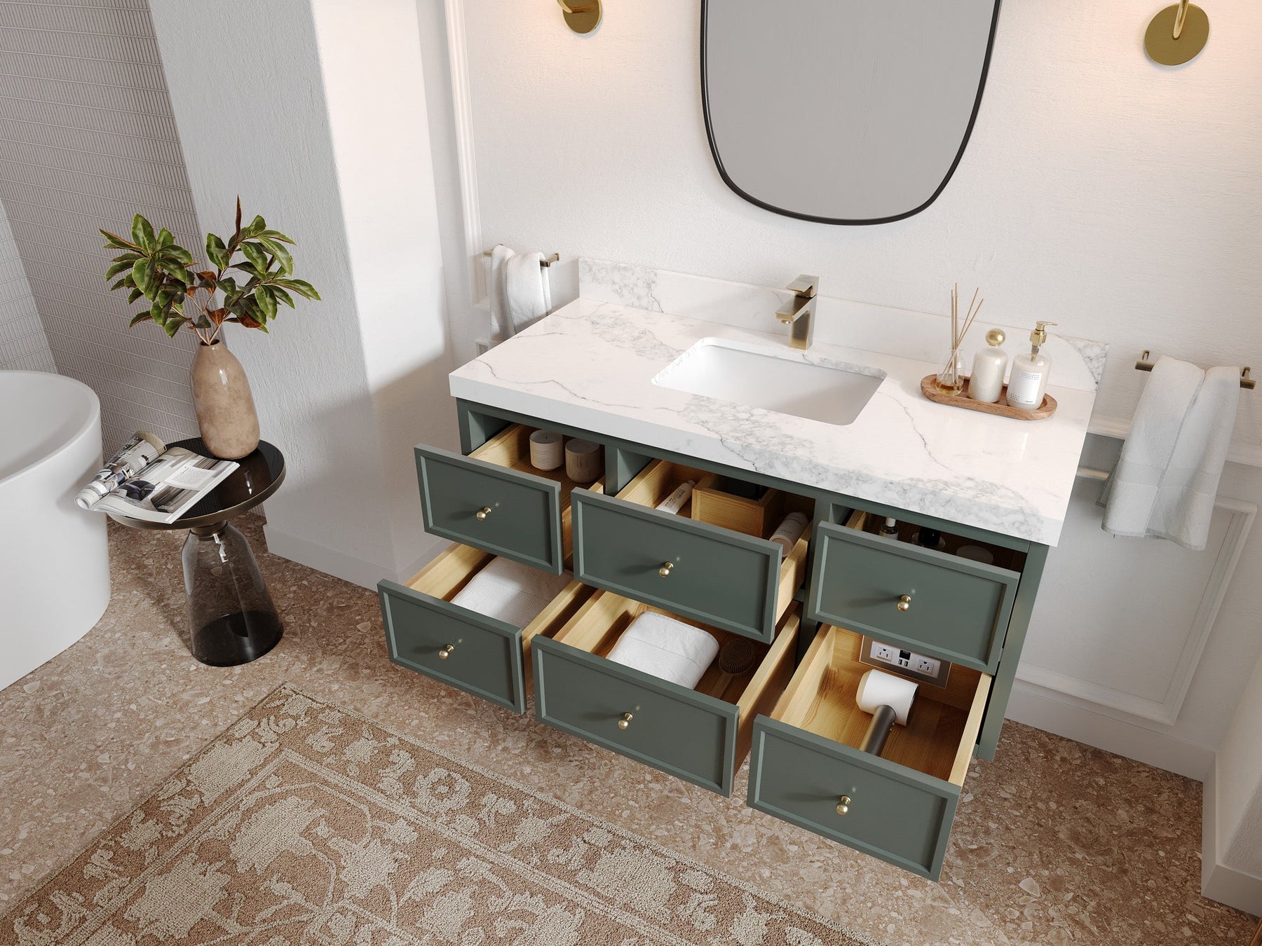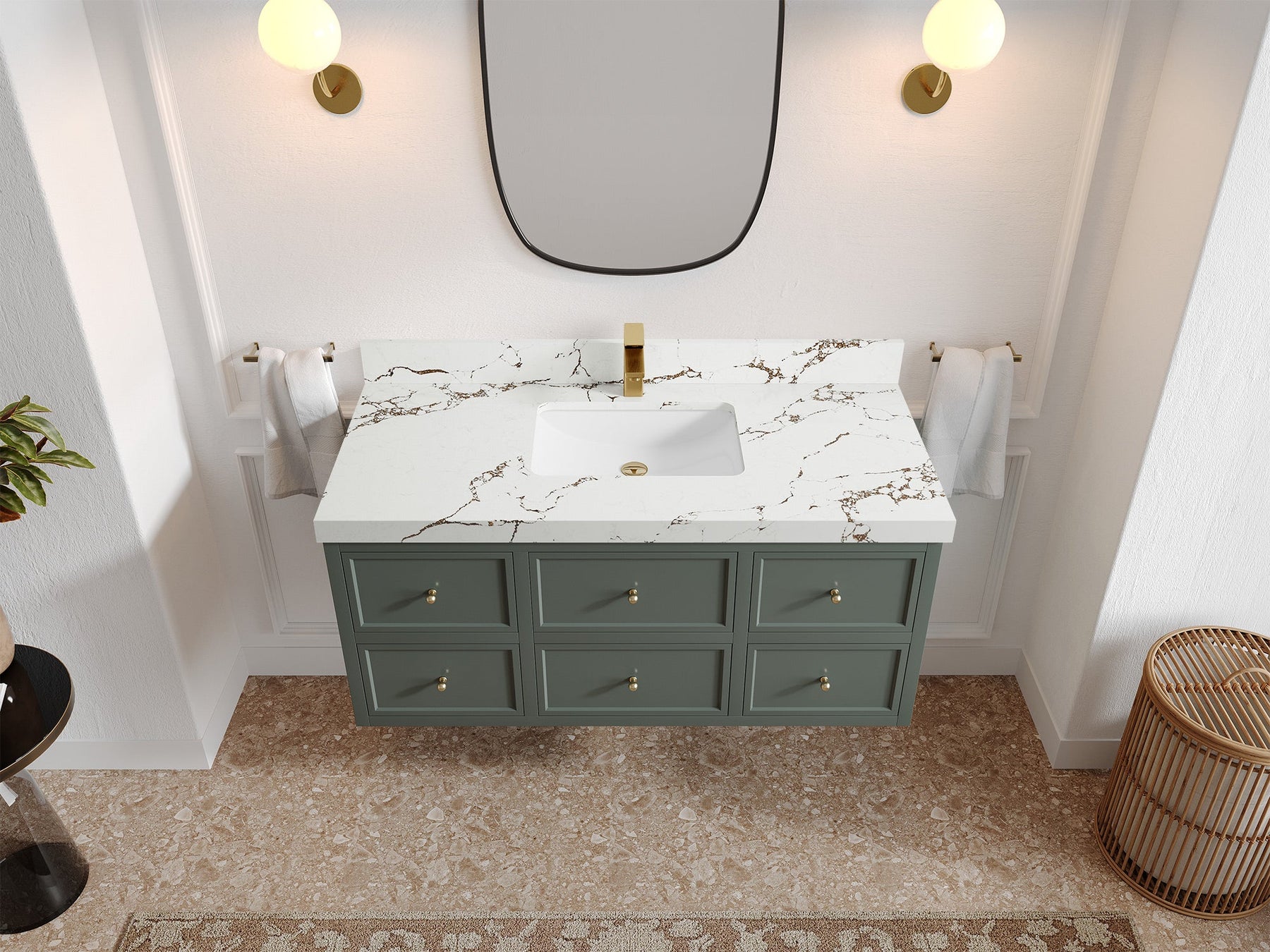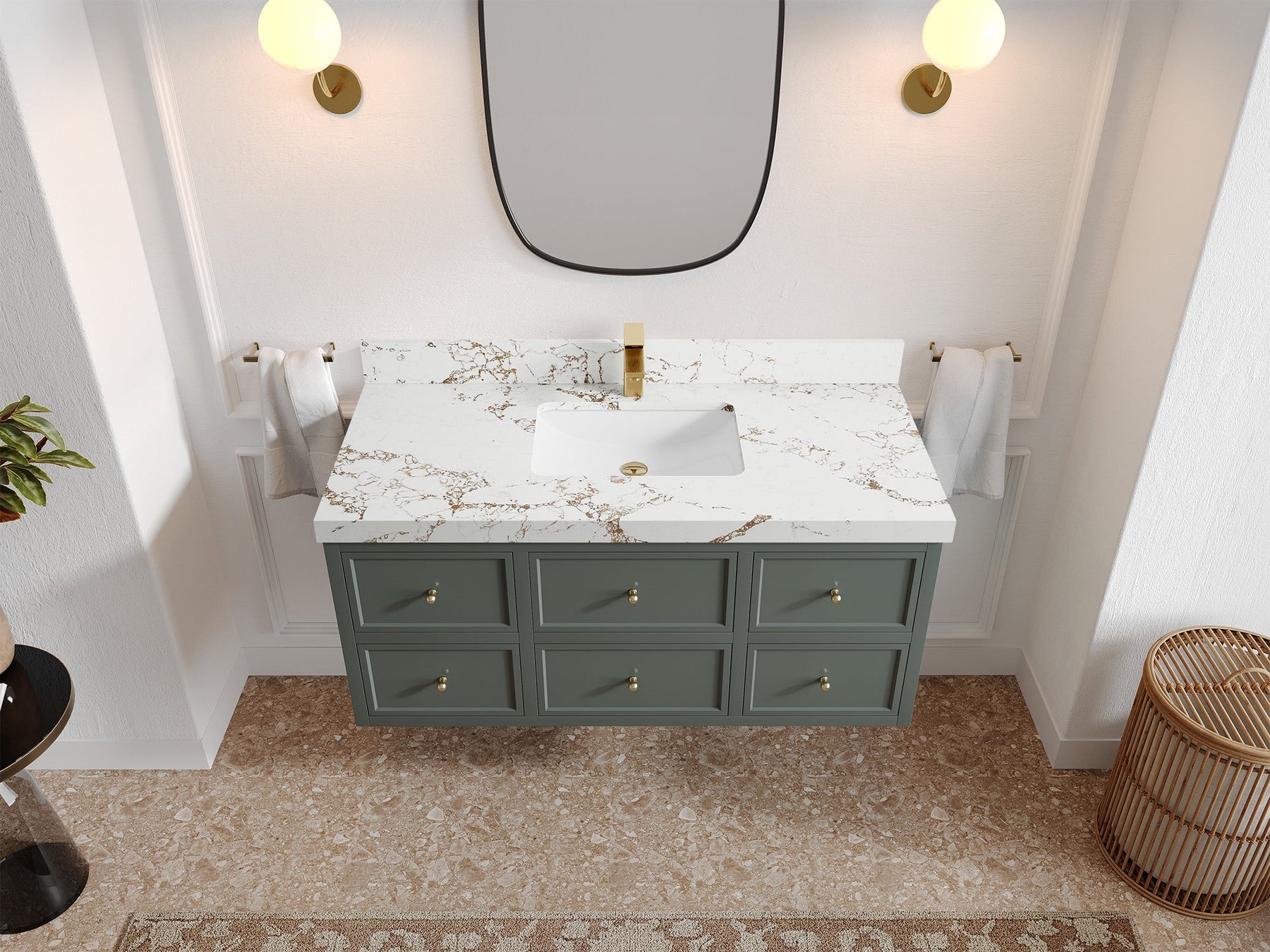 Hardware Finish: White comes with Brushed Nickel Finish; Pewter Green, Black comes with Brushed Gold Finish