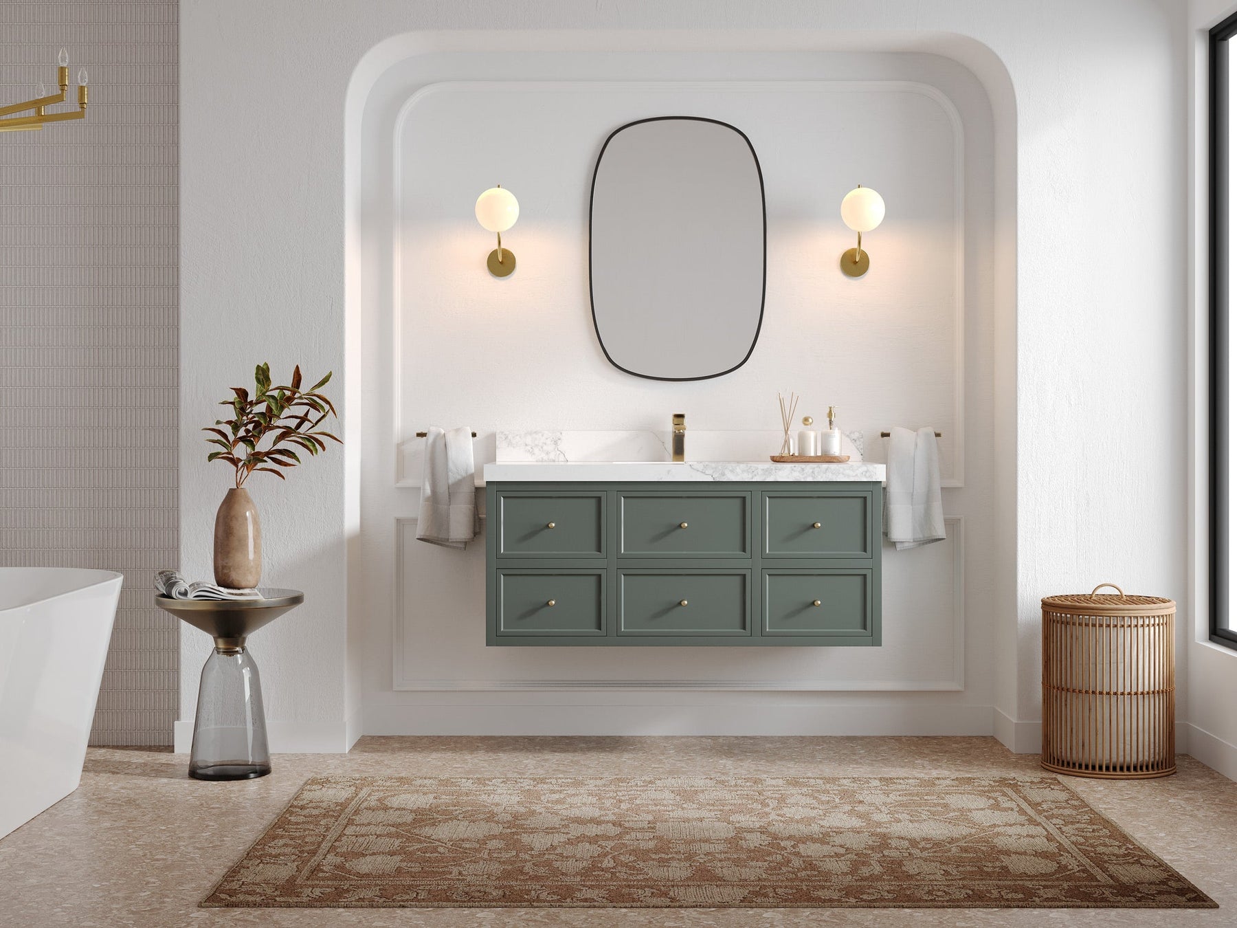 Faucet Hole(S): Comes with Single Faucet, 8 (in.) Widespread Faucet, Wall mount Faucets - Only Available for White Quartz and Carrara Quartz. (PLEASE ADD THIS CONFIGURATION UNDER COUNTERTOPS SECTION )