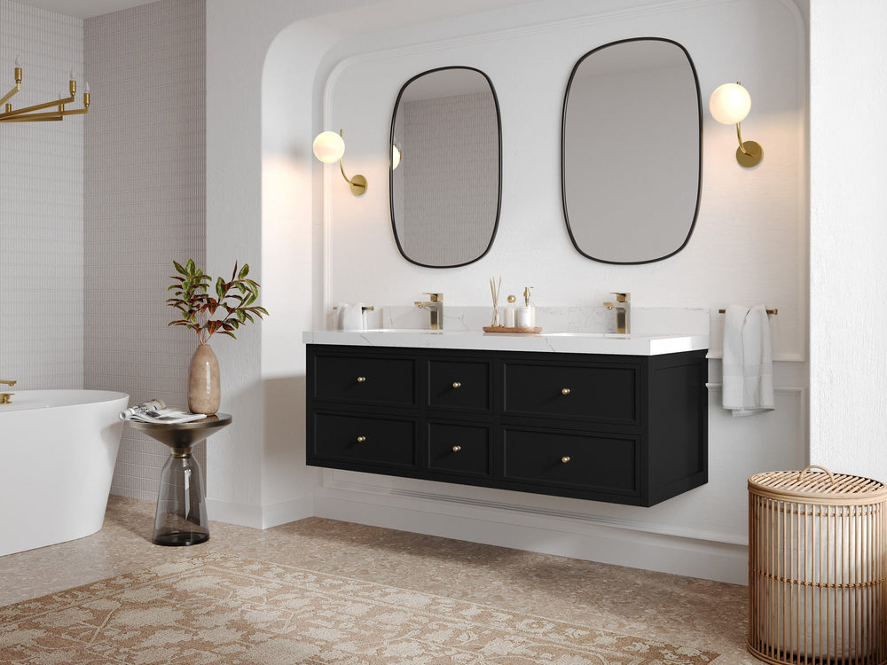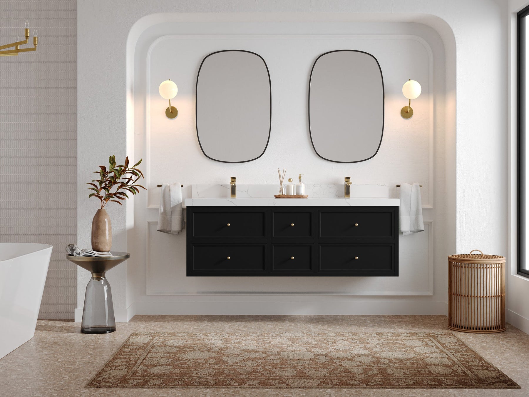 Roswell Floating 60 in. W x 22 in. D Double Sink Bathroom Vanity | Black