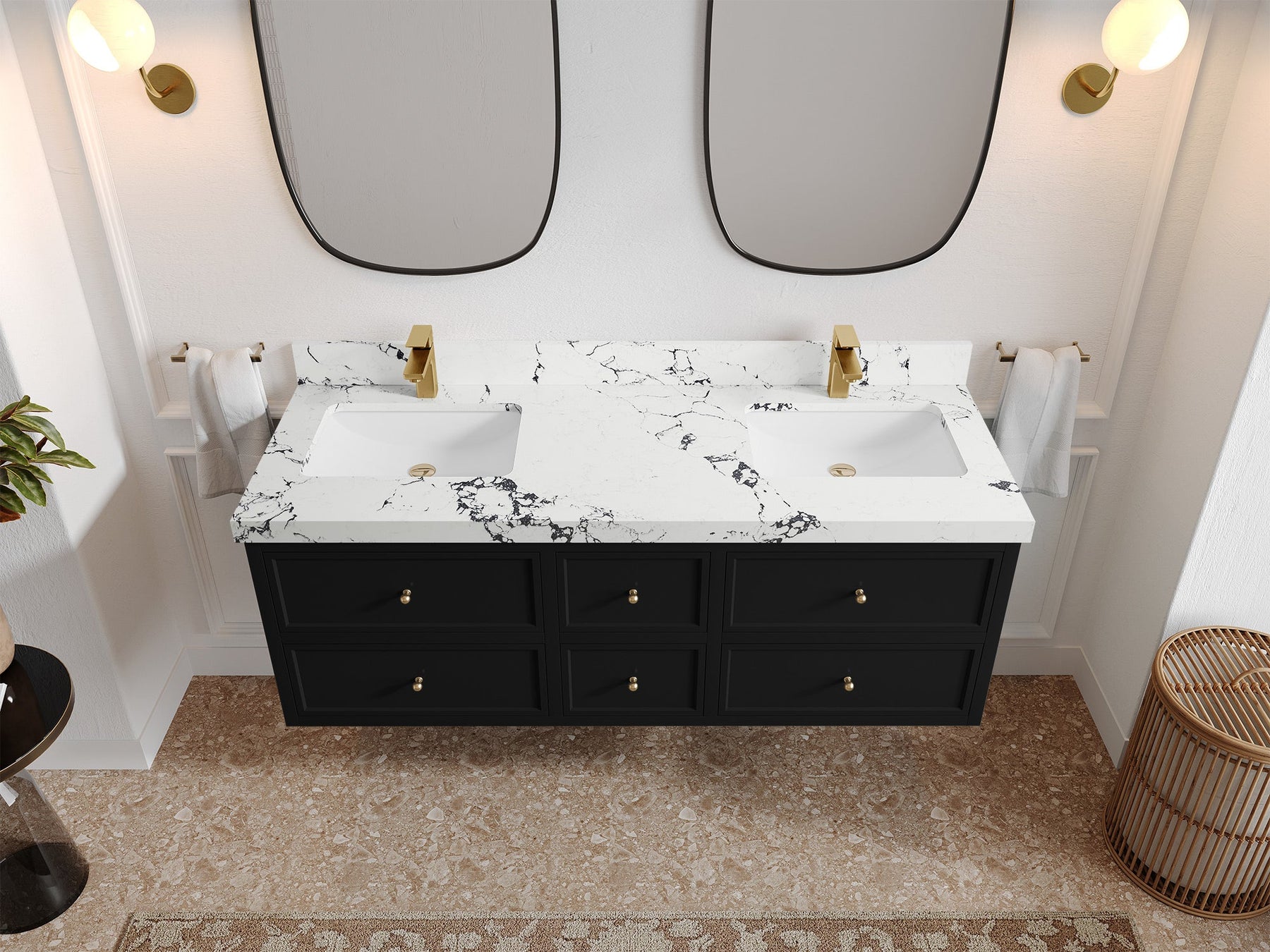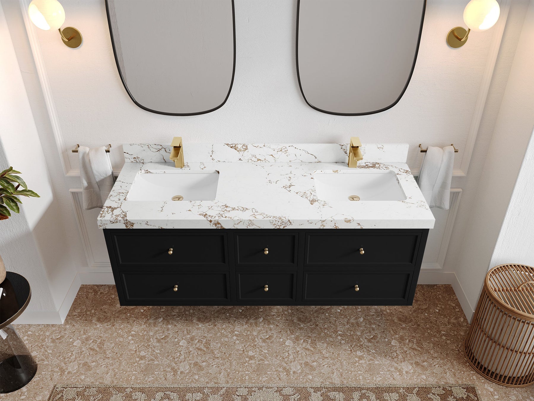 Vanity Countertops options: For Calacatta Laza Quartz, Empira White Quartz, Pure White Quartz we have 2 options Straight-Mitered Edge & Double Cove Edge, For Calacatta Black Quartz, Calacatta Gold Quartz, Calacatta Nuvo Quartz, Carrara Marble, Carrara Quartz, Pearl Light Gray Quartz, Piatra Gray Quartz, Venatino Quartz, and Light Concrete Gray Quartz we only have Straight - Mitered Edge option.