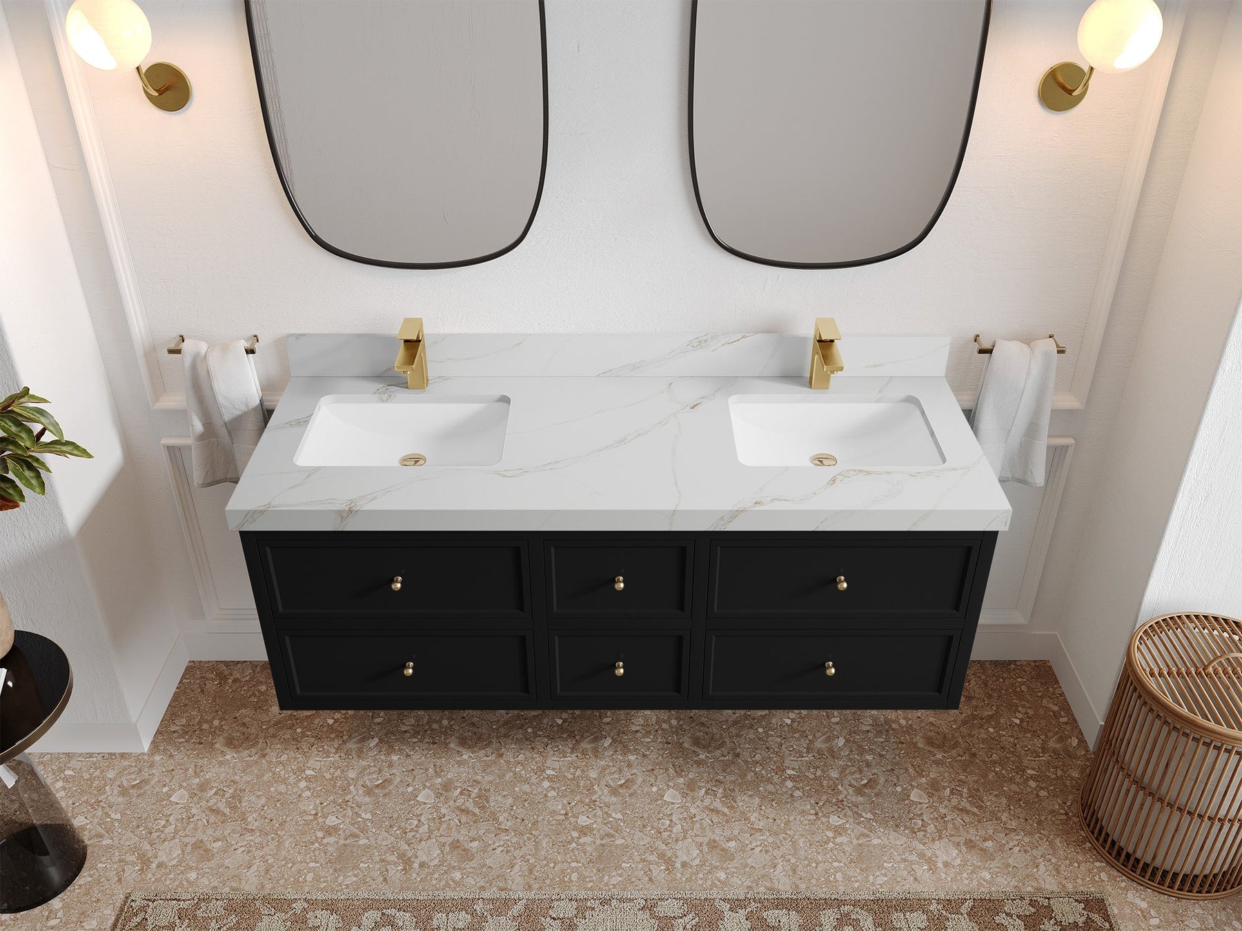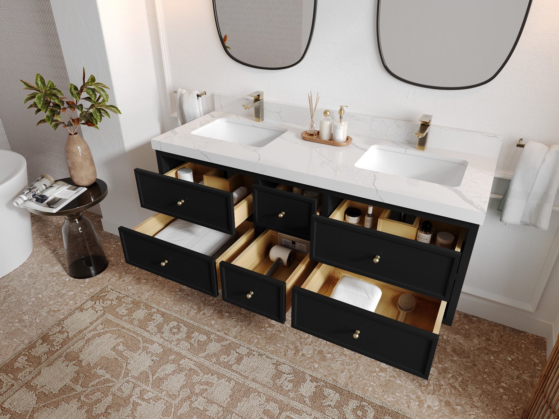 3. Soft-Close Drawers - Equipped with two spacious drawers, this vanity provides ample storage for all your bathroom essentials. The soft-close mechanism ensures a quiet and smooth operation, adding to the vanity’s premium feel.