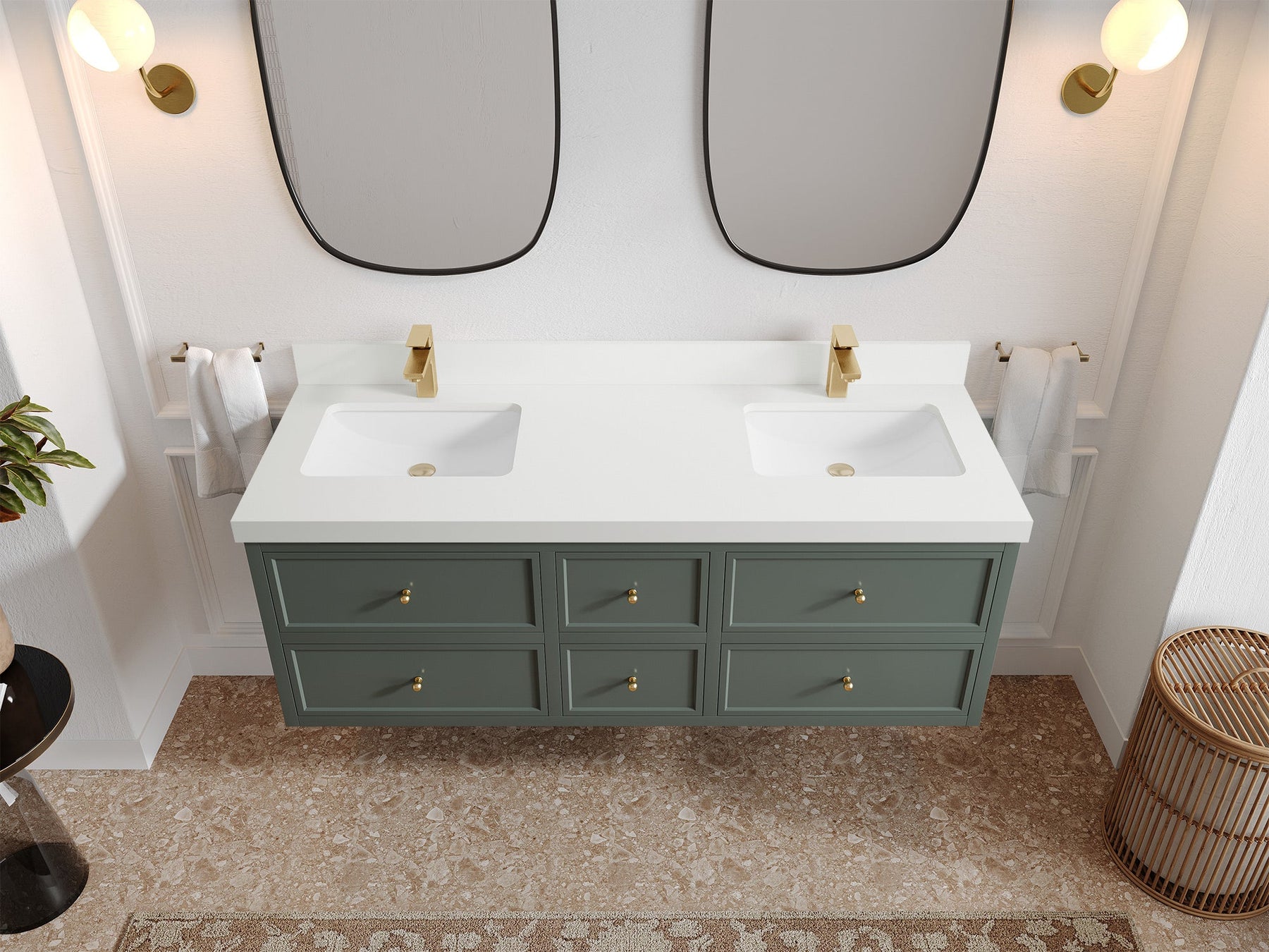 Roswell Floating 60 in. W x 22 in. D Double Sink Bathroom Vanity | Pewter Green