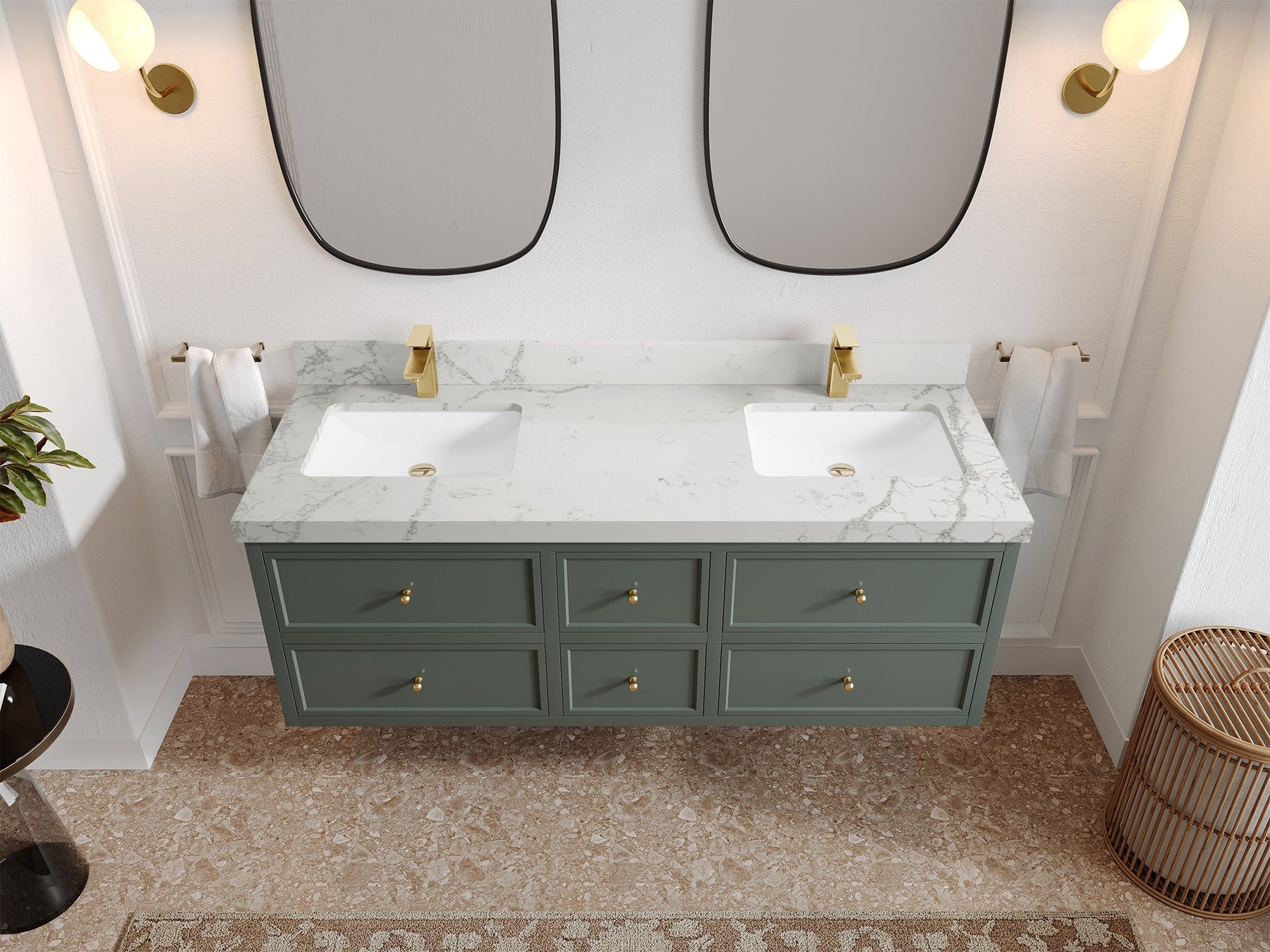 Pairing modern functionality with enduring beauty, Willow Bath & Vanity offers one of the largest selections of bathroom vanities in the U.S.—over 55,000 variations to choose from. Each piece is crafted from premium woods like birch, white oak, teak, and mango, and finished with elegant quartz, marble, or terrazzo countertops.