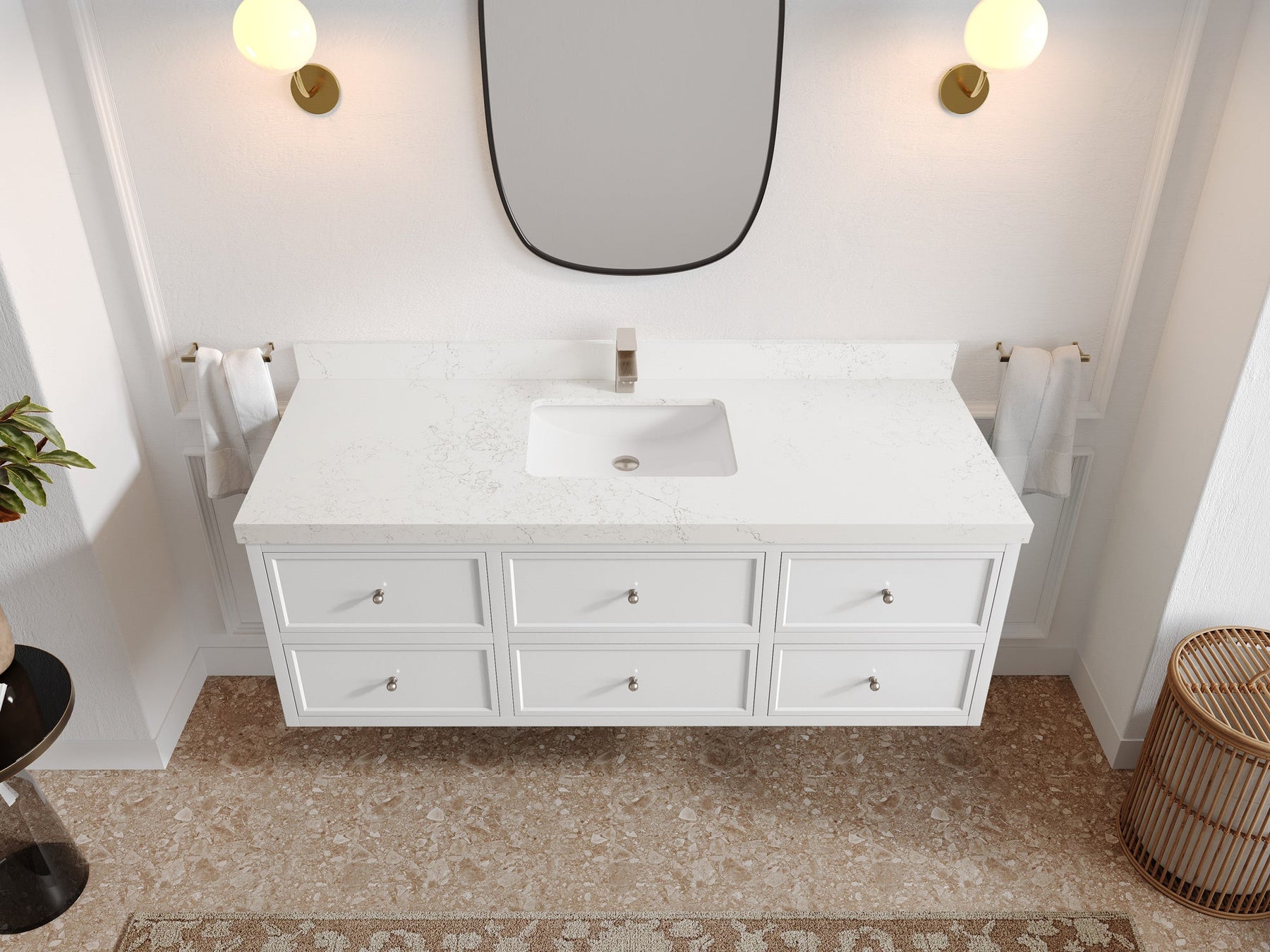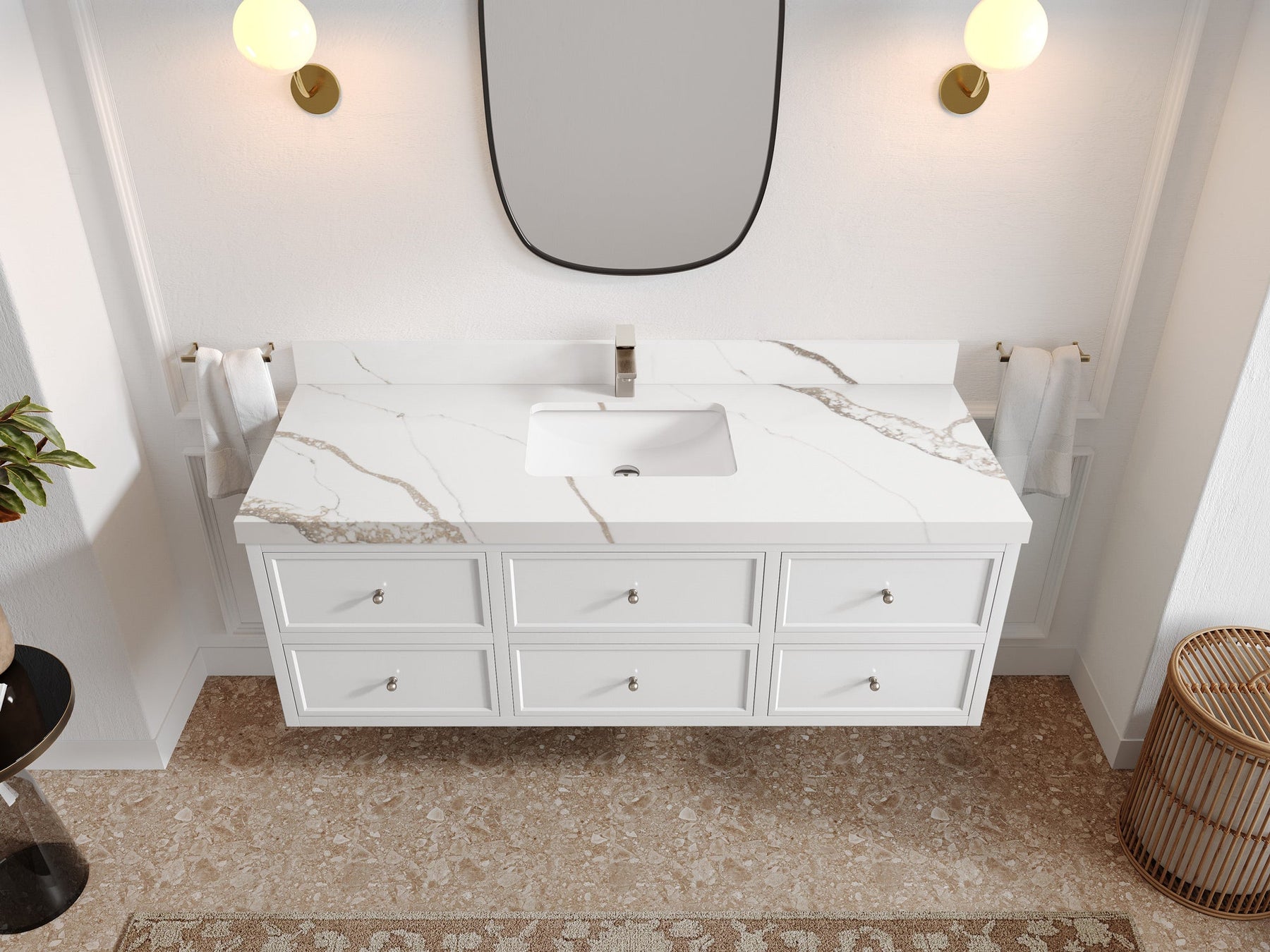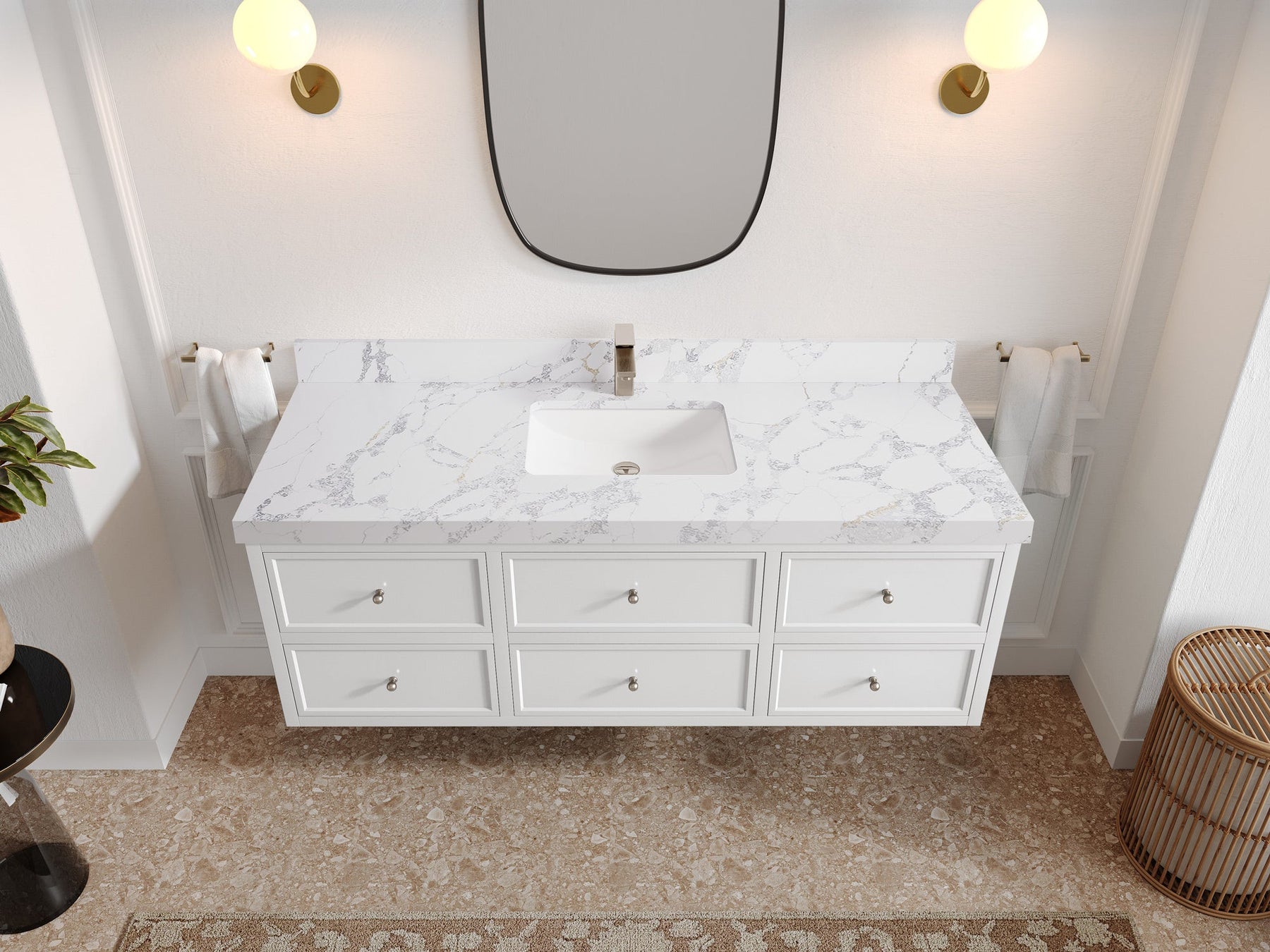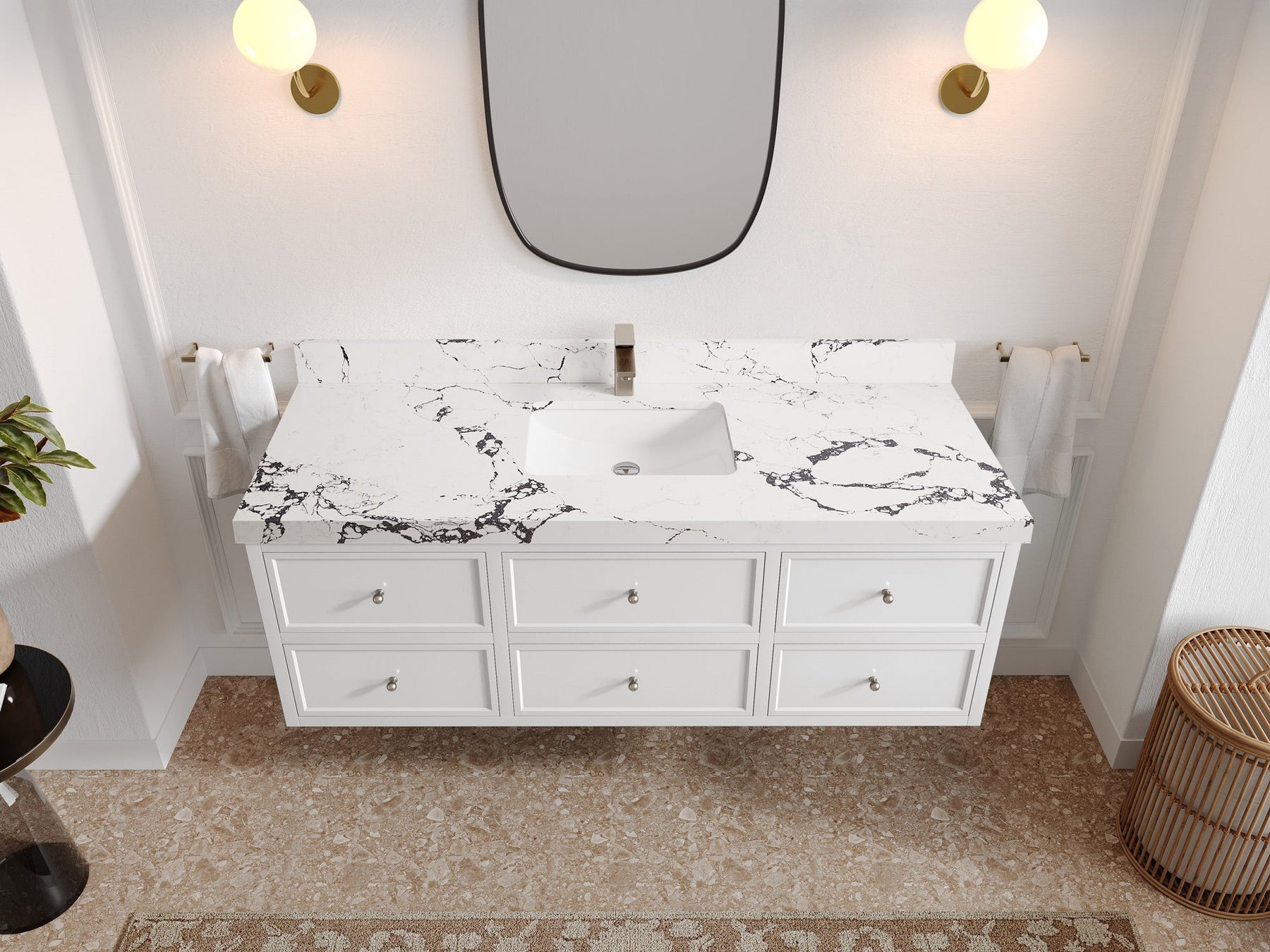 Faucet Hole(S): Comes with Single Faucet, 8 (in.) Widespread Faucet, Wall mount Faucets - Only Available for White Quartz and Carrara Quartz. (PLEASE ADD THIS CONFIGURATION UNDER COUNTERTOPS SECTION )