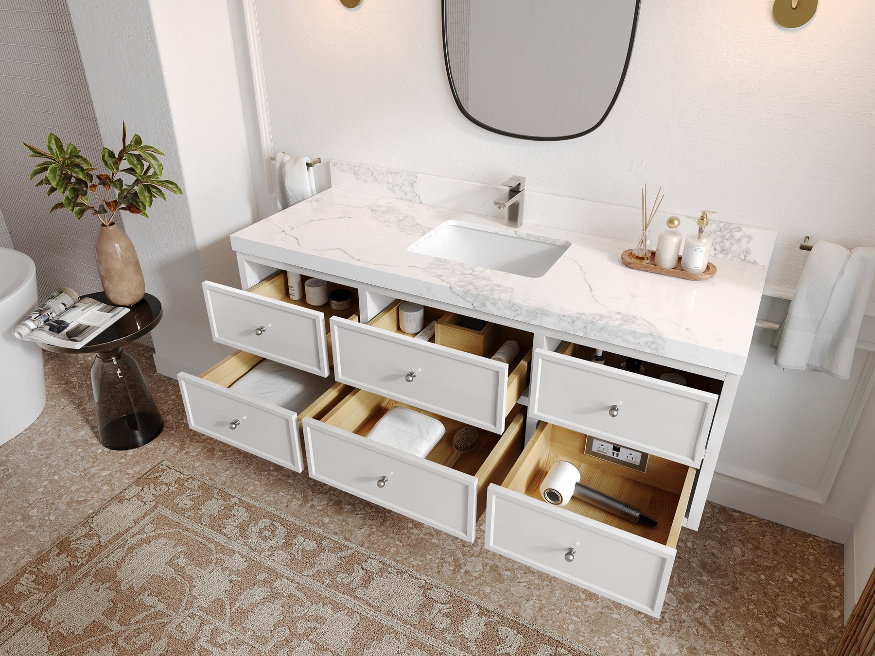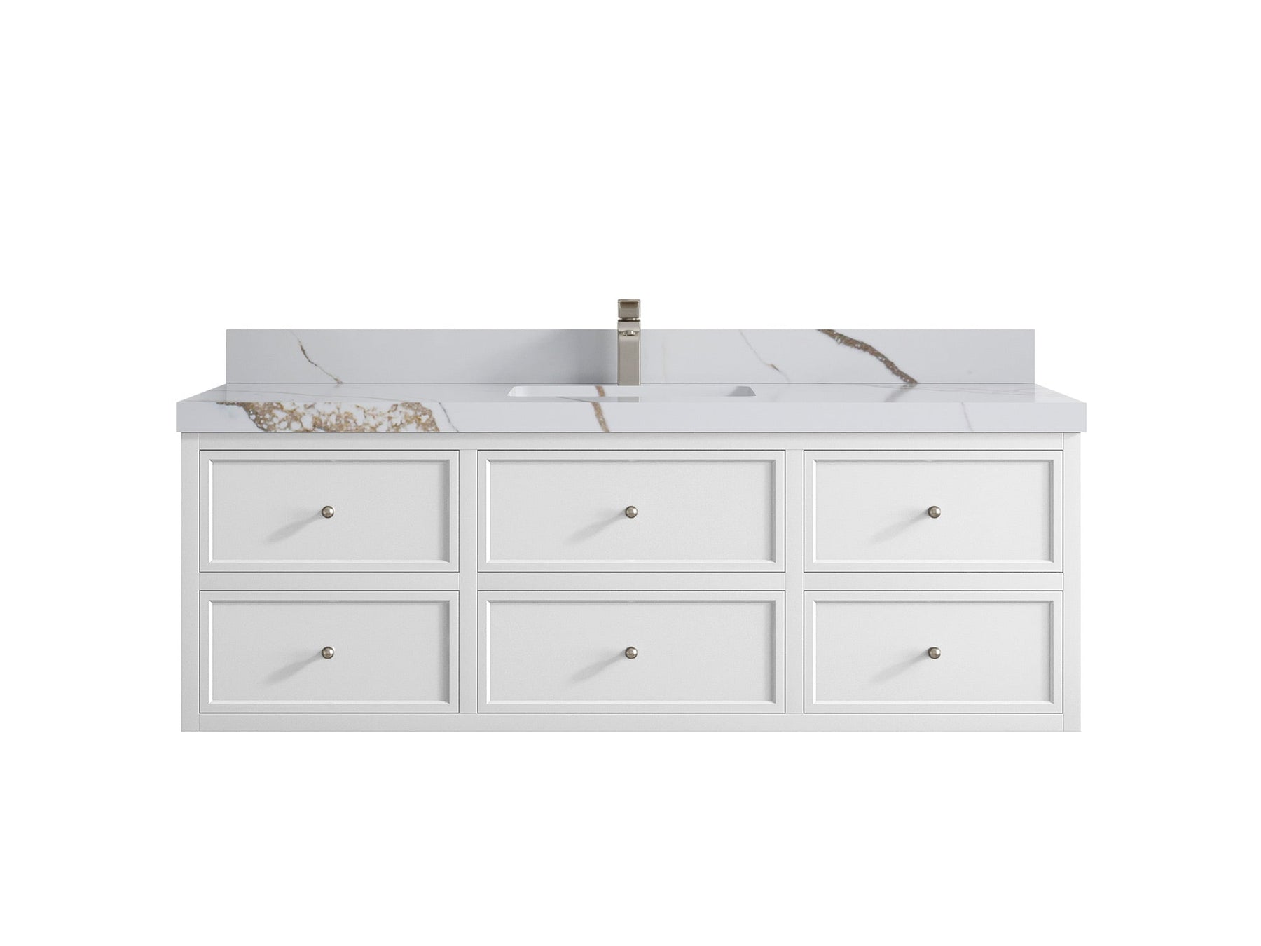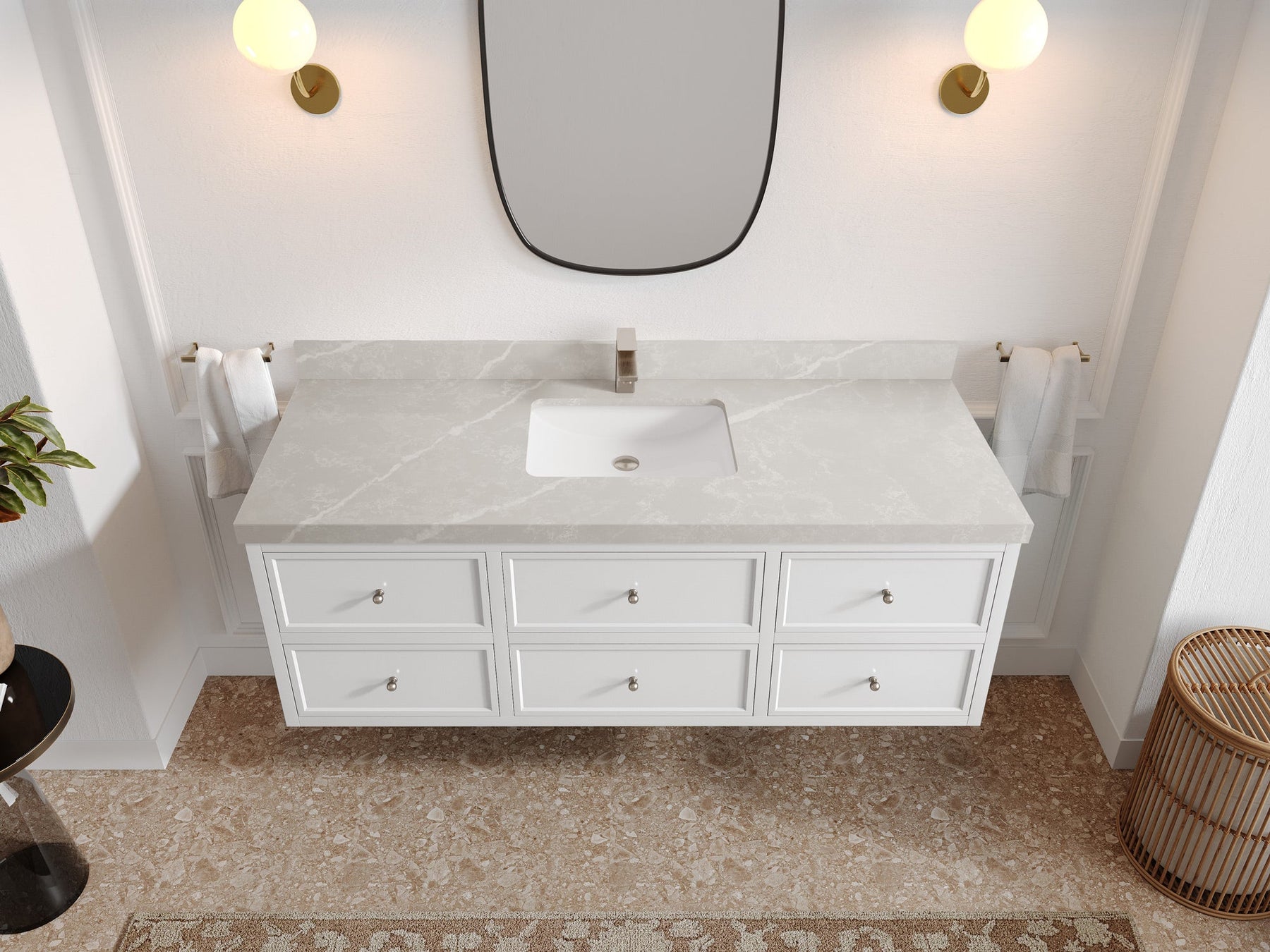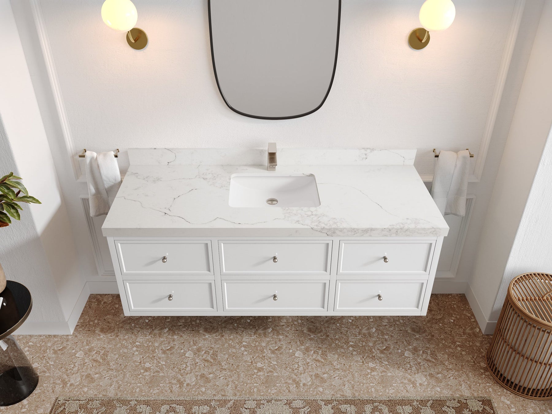 Faucet Hole(S): Comes with Single Faucet, 8 (in.) Widespread Faucet, Wall mount Faucets - Only Available for White Quartz and Carrara Quartz. (PLEASE ADD THIS CONFIGURATION UNDER COUNTERTOPS SECTION )