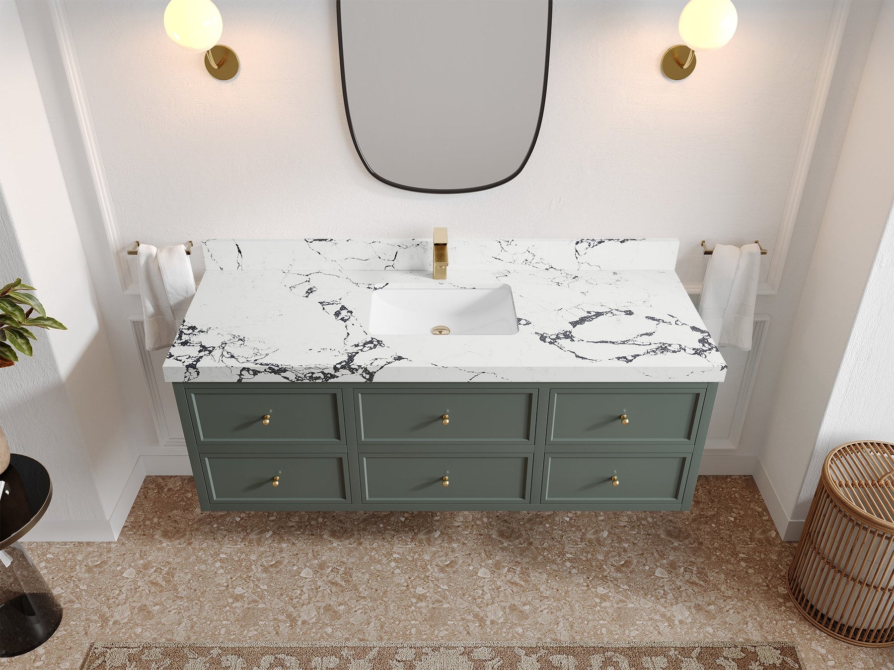 Faucet Hole(S): Comes with Single Faucet, 8 (in.) Widespread Faucet, Wall mount Faucets - Only Available for White Quartz and Carrara Quartz. (PLEASE ADD THIS CONFIGURATION UNDER COUNTERTOPS SECTION )