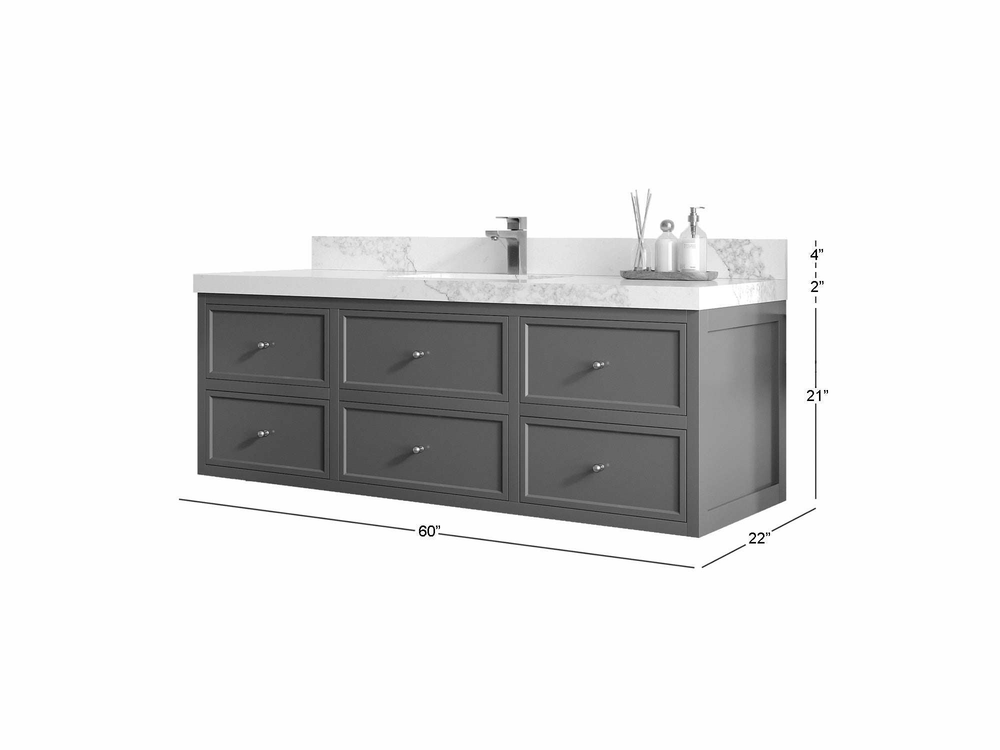 Roswell Floating 60 in. W x 22 in. D Single Sink Bathroom Vanity - Willow Bath and Vanity