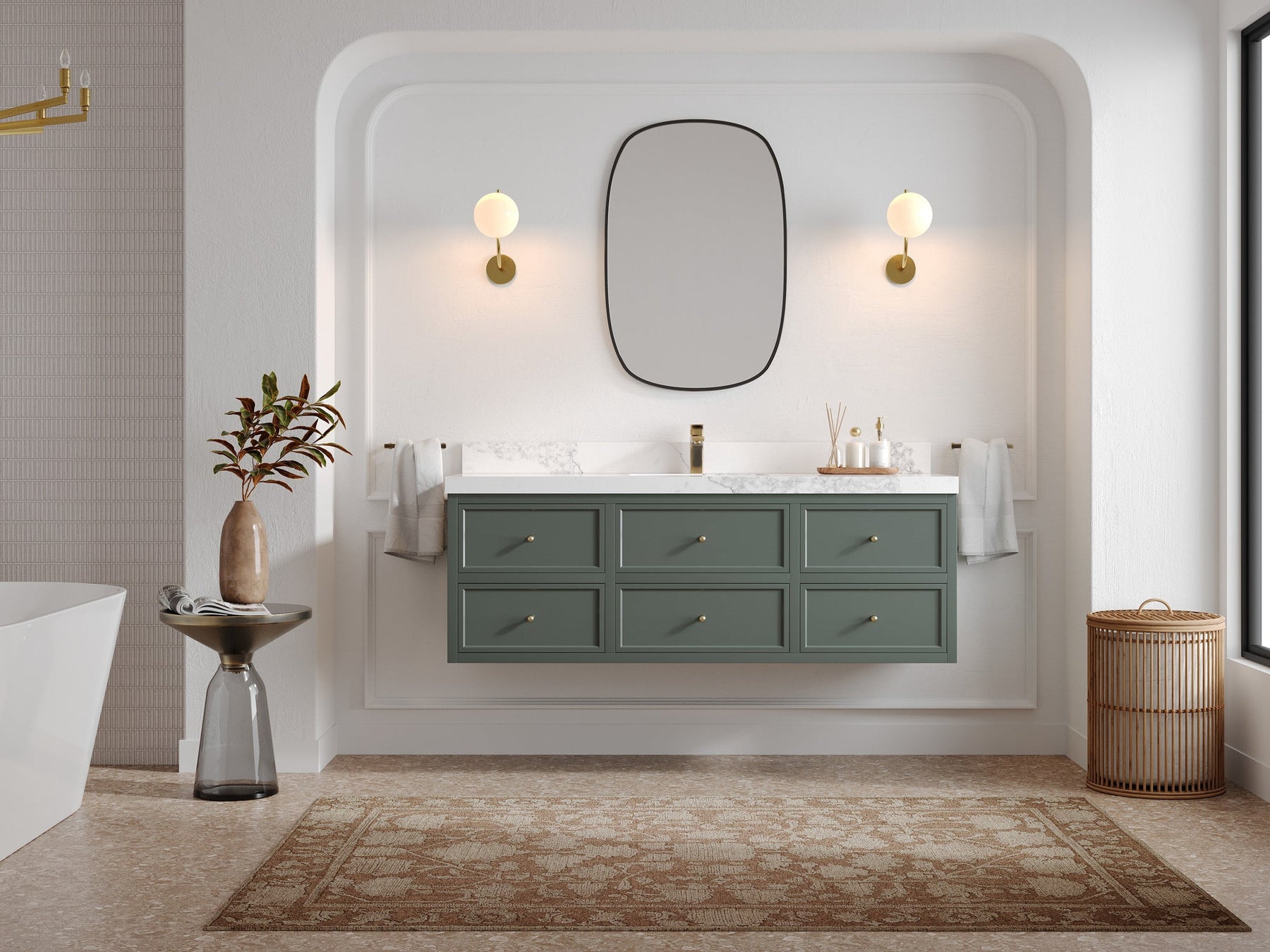 Roswell Floating 60 in. W x 22 in. D Single Sink Bathroom Vanity | Pewter Green