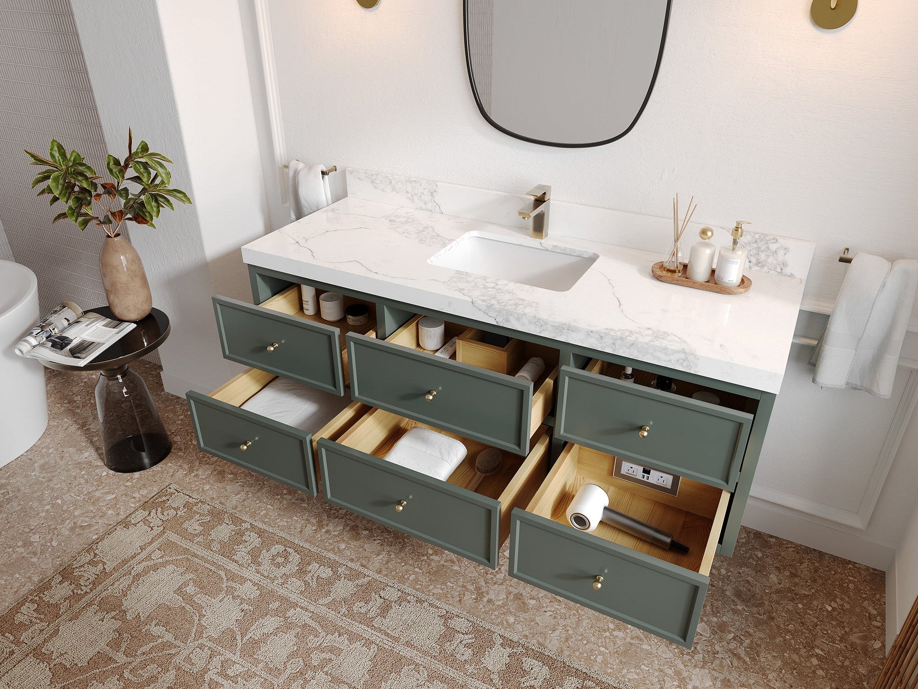 3. Soft-Close Drawers: Equipped with two spacious drawers, this vanity provides ample storage for all your bathroom essentials. The soft-close mechanism ensures a quiet and smooth operation, adding to the vanity’s premium feel.