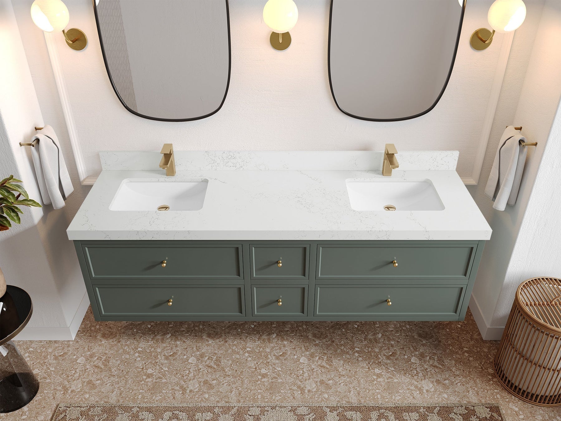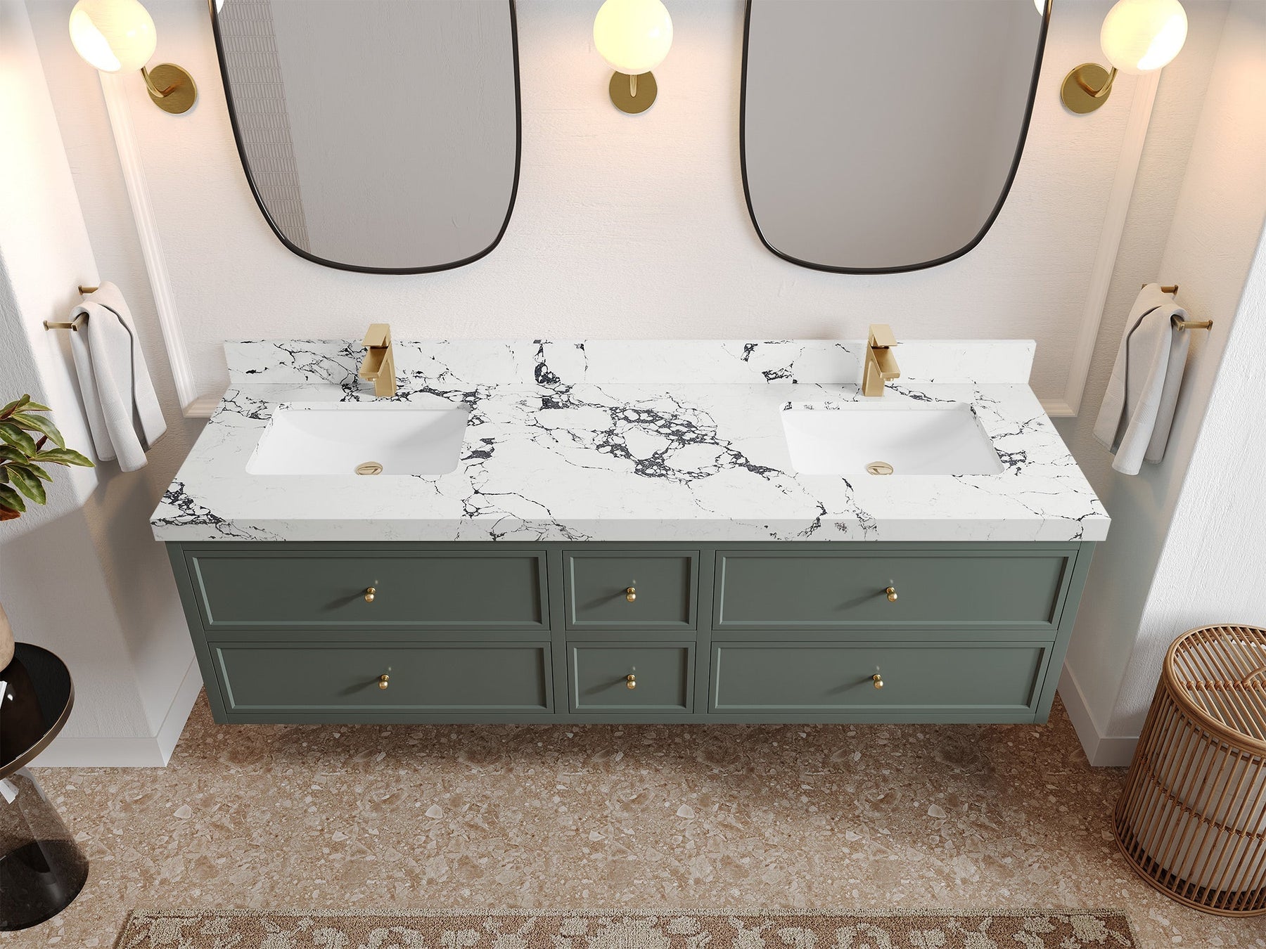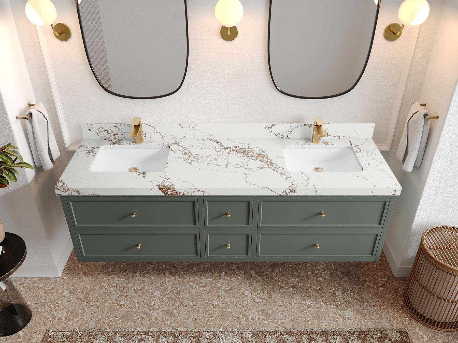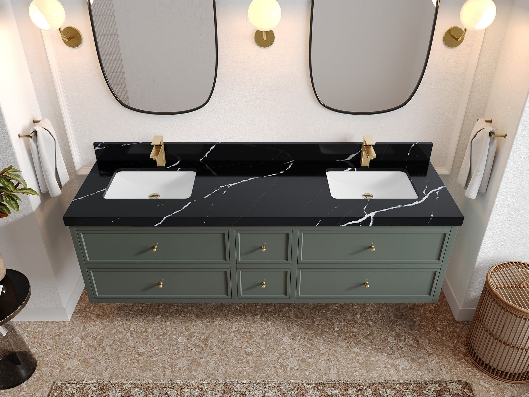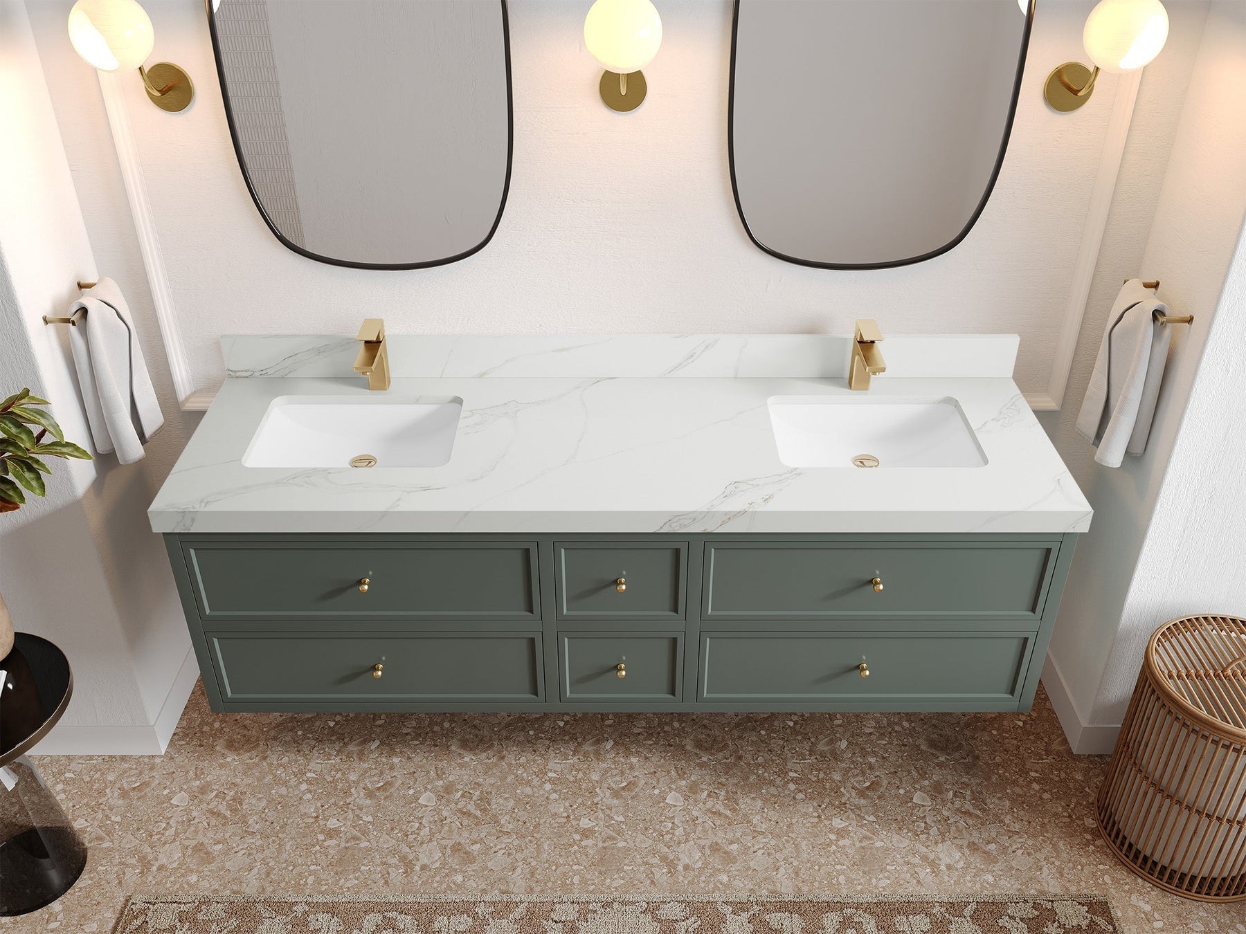 Vanity Countertops options: For Calacatta Laza Quartz, Empira White Quartz, Pure White Quartz we have 2 options Straight-Mitered Edge & Double Cove Edge, For Calacatta Black Quartz, Calacatta Gold Quartz, Calacatta Nuvo Quartz, Carrara Marble, Carrara Quartz, Pearl Light Gray Quartz, Piatra Gray Quartz, Venatino Quartz, and Light Concrete Gray Quartz we only have Straight - Mitered Edge option.