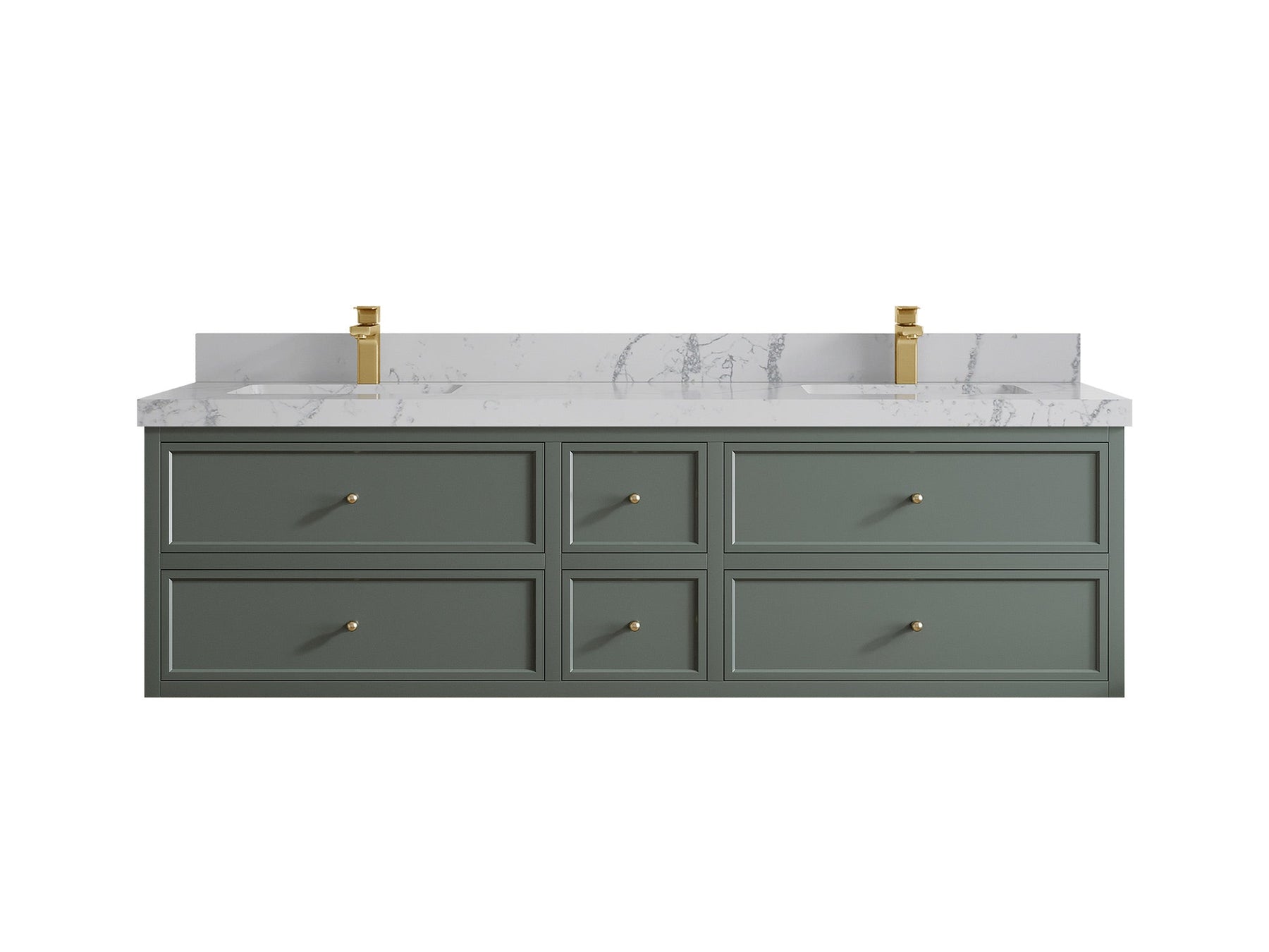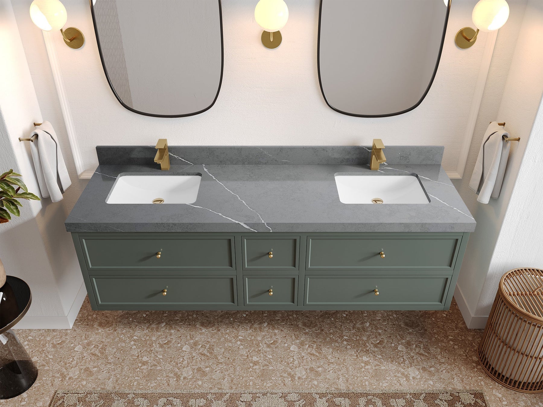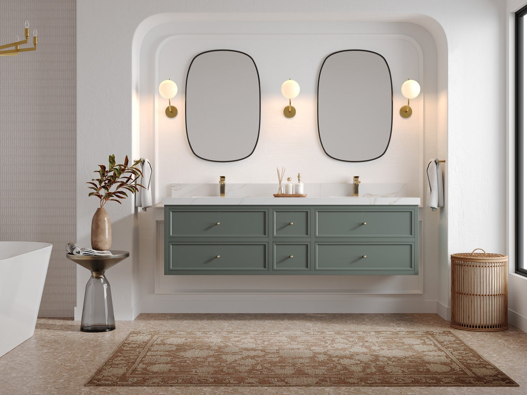 Roswell Floating 72 in. W x 22 in. D Double Sink Bathroom Vanity | Pewter Green