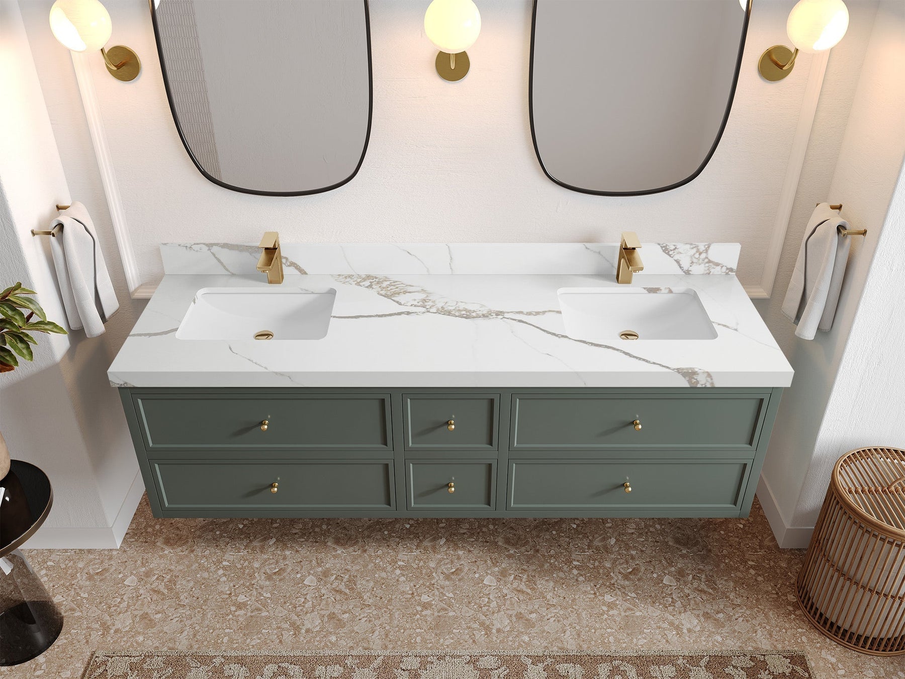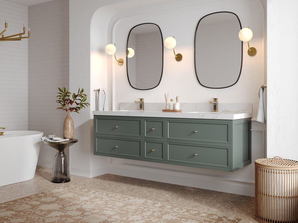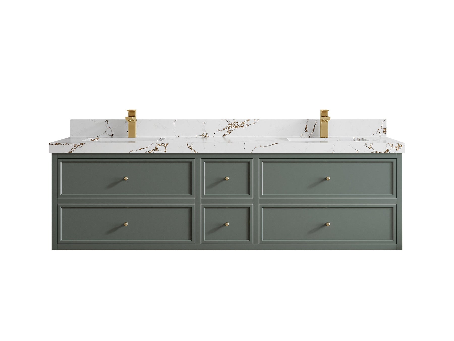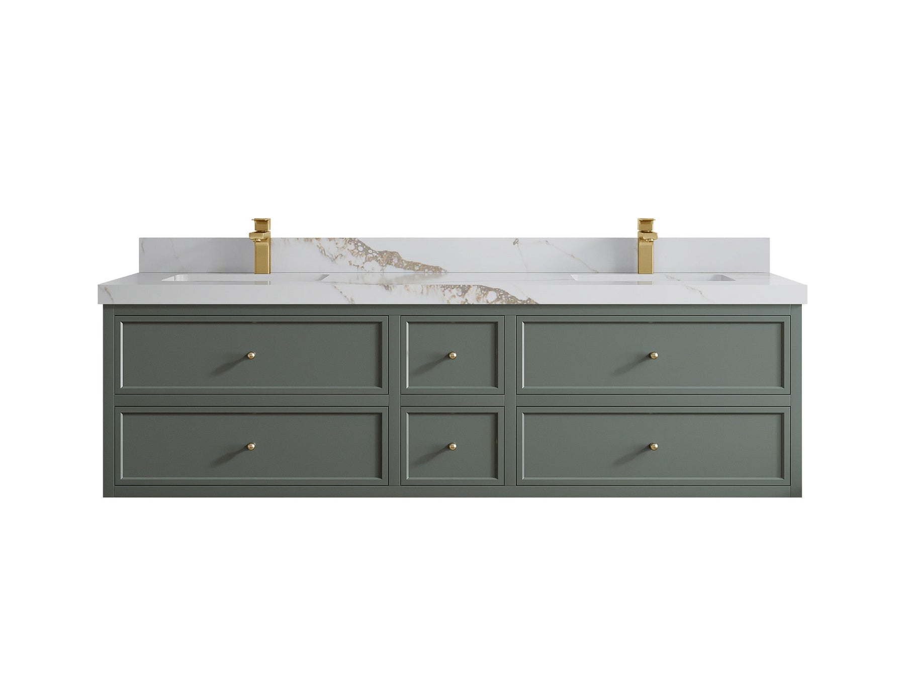 Roswell Floating 72 in. W x 22 in. D Double Sink Bathroom Vanity | Pewter Green