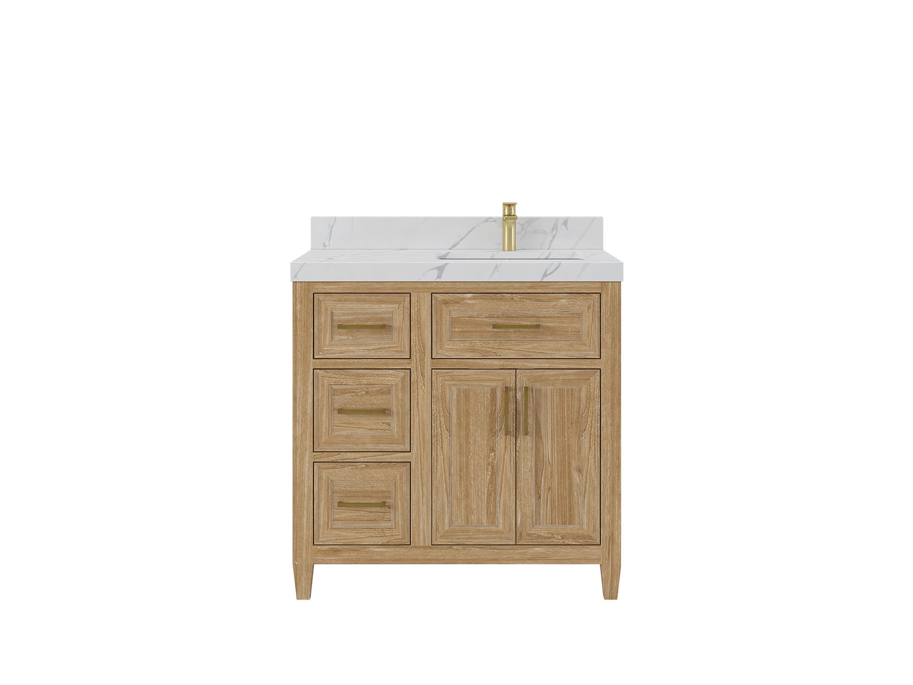 Santa Monica Teak Wood 36 in. W x 22 in. D Right Offset Sink Bathroom Vanity - Willow Bath and Vanity