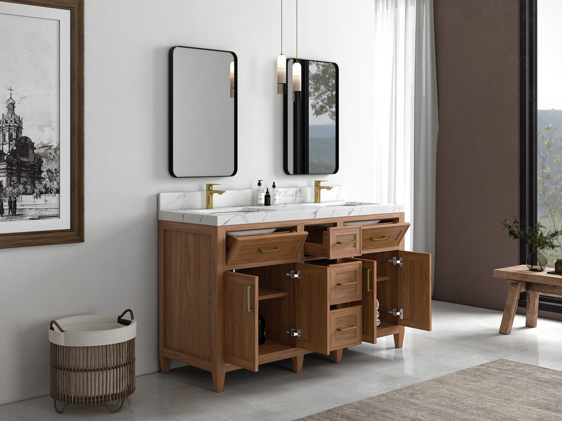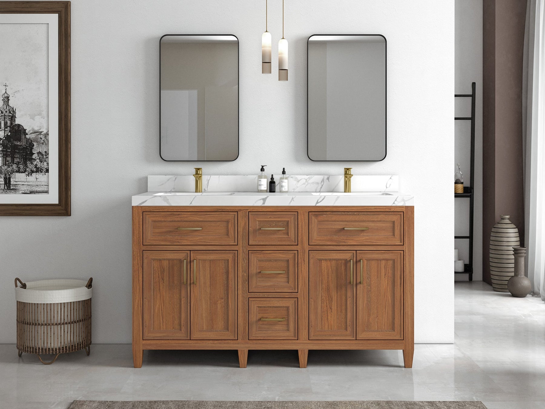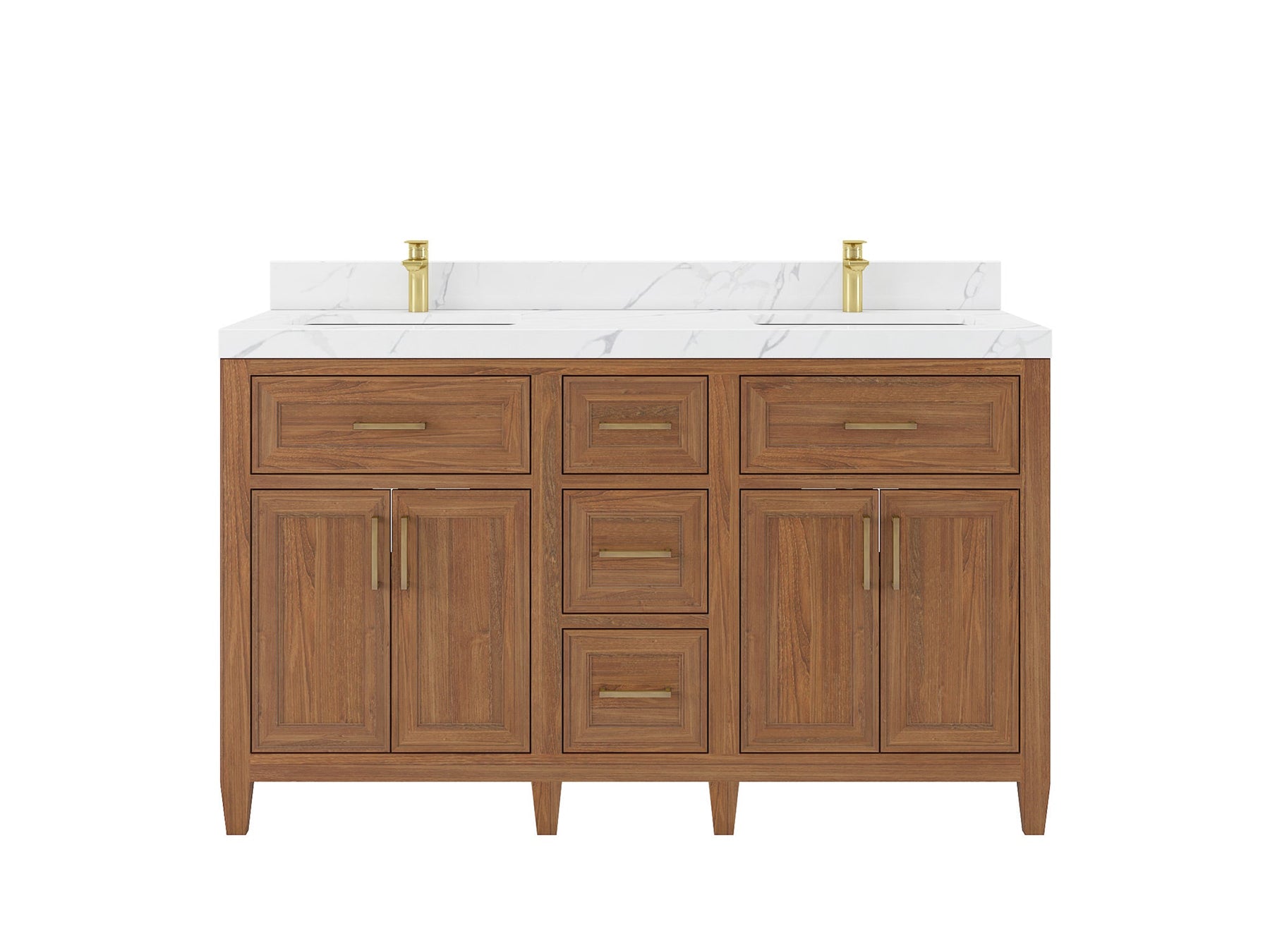 Santa Monica Teak Wood 60 in. W x 22 in. D Double Sink Bathroom Vanity | Dark Natural Teak