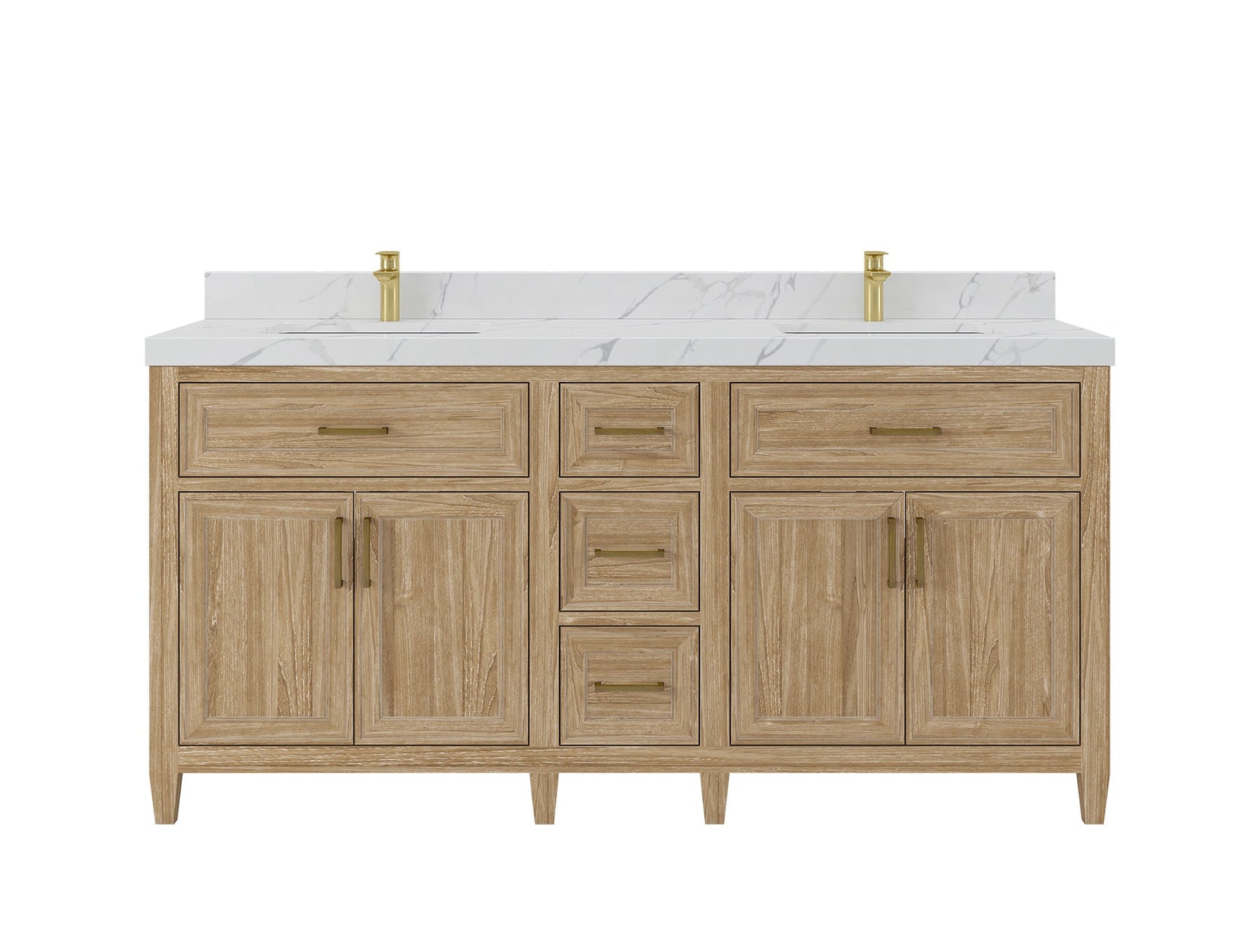 Santa Monica Teak Wood 72 in. W x 22 in. D Double Sink Bathroom Vanity | Whitewashed Teak