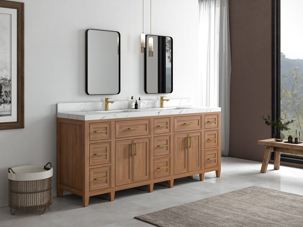 Vanity Countertops options: For Calacatta Laza Quartz, Empira White Quartz, Pure White Quartz we have 2 options Straight-Mitered Edge & Double Cove Edge, For Calacatta Black Quartz, Calacatta Gold Quartz, Calacatta Nuvo Quartz, Carrara Marble, Carrara Quartz, Pearl Light Gray Quartz, Piatra Gray Quartz, Venatino Quartz, and Light Concrete Gray Quartz we only have Straight - Mitered Edge option.
