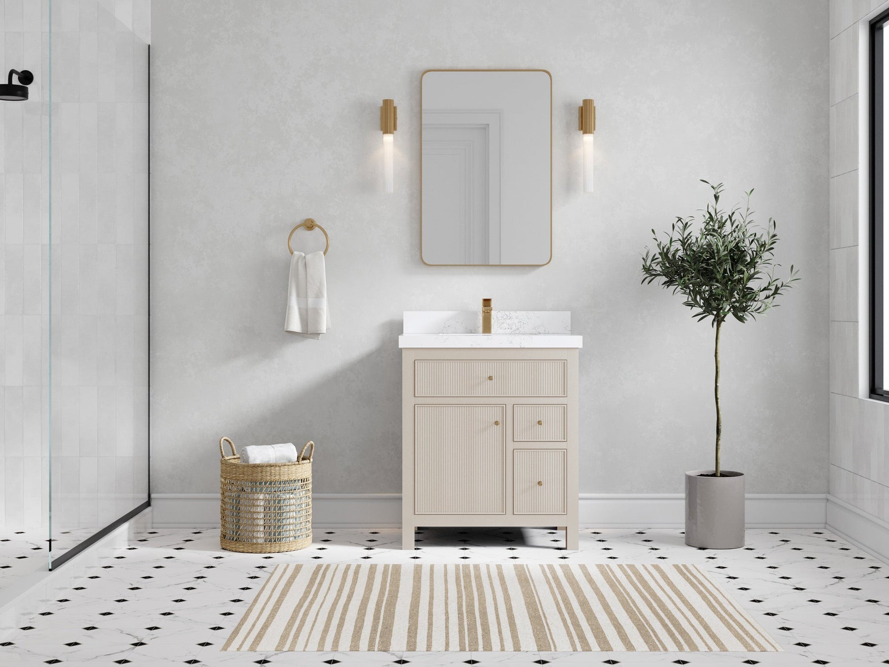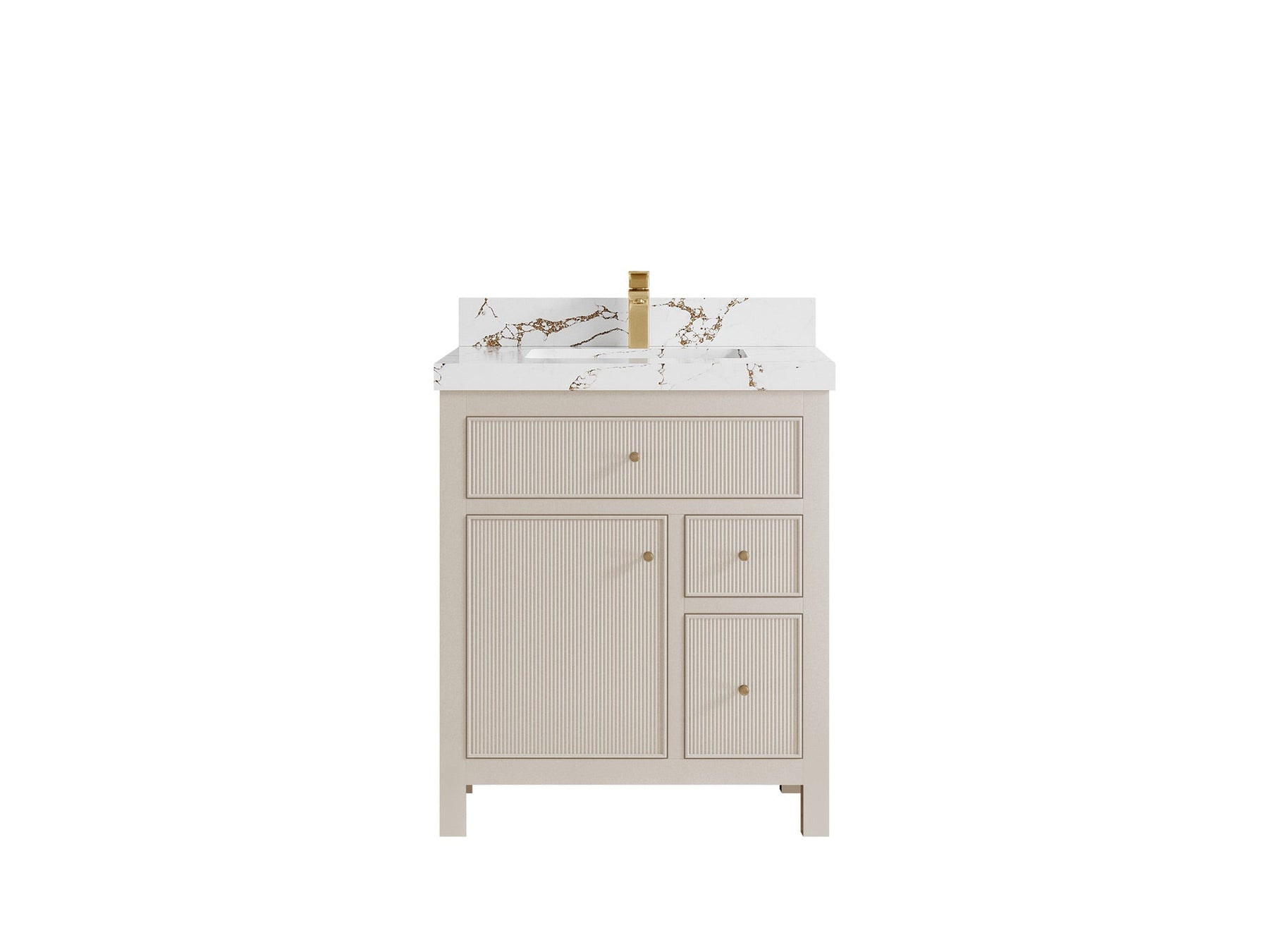 Sonoma 30 in W x 22 in D Reeded Free Standing Single Sink Bathroom Vanity | Fine Grain Linen Beige