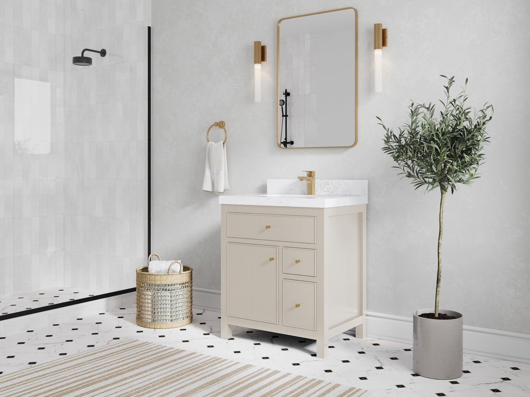 1. Timeless style with a 21st century flair – constructed from premium birch and plywood for a reeded design, with gold and nickel brushed hardware, the Sonoma vanity with legs combines the best of the past and the present to great effect.