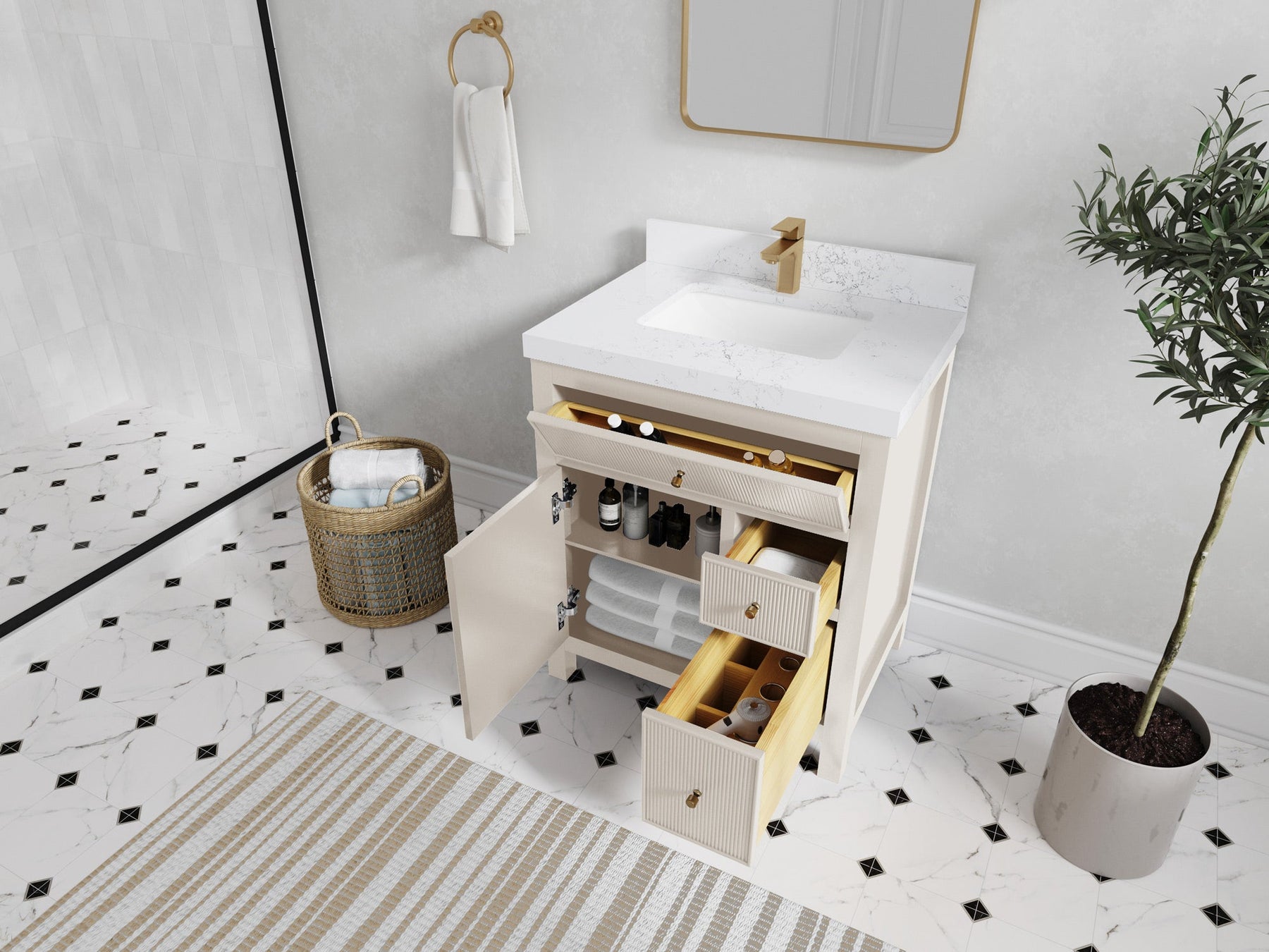 A vanity unit – the centerpiece of any luxurious home bathroom. Add convenience, decadence and showmanship to your daily life, and experience the elegance of a five-star hotel with the Sonoma reeded vanity unit.