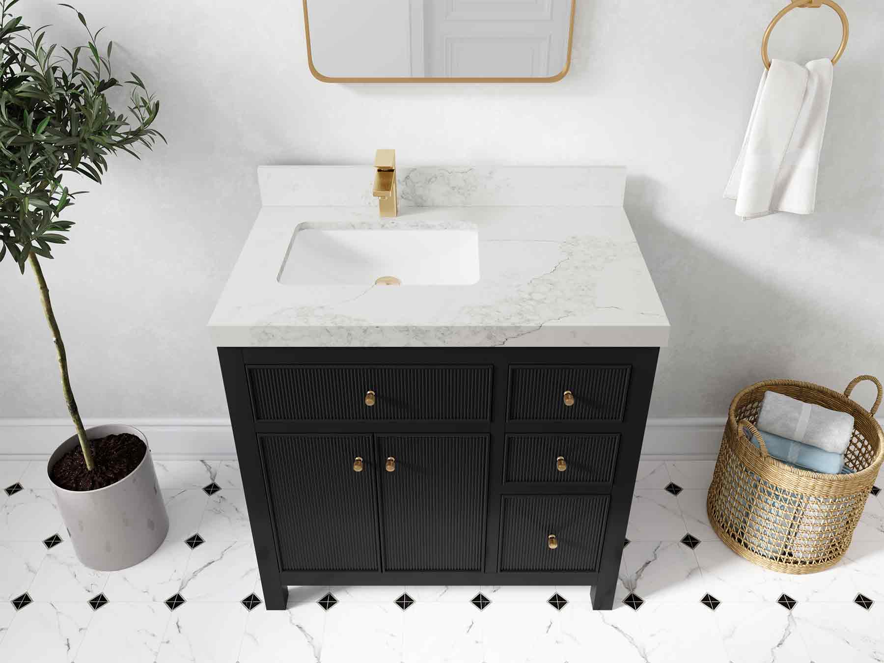 1. Timeless style with a 21st century flair – constructed from premium birch and plywood for a reeded design, with gold and nickel brushed hardware, the Sonoma vanity with legs combines the best of the past and the present to great effect.