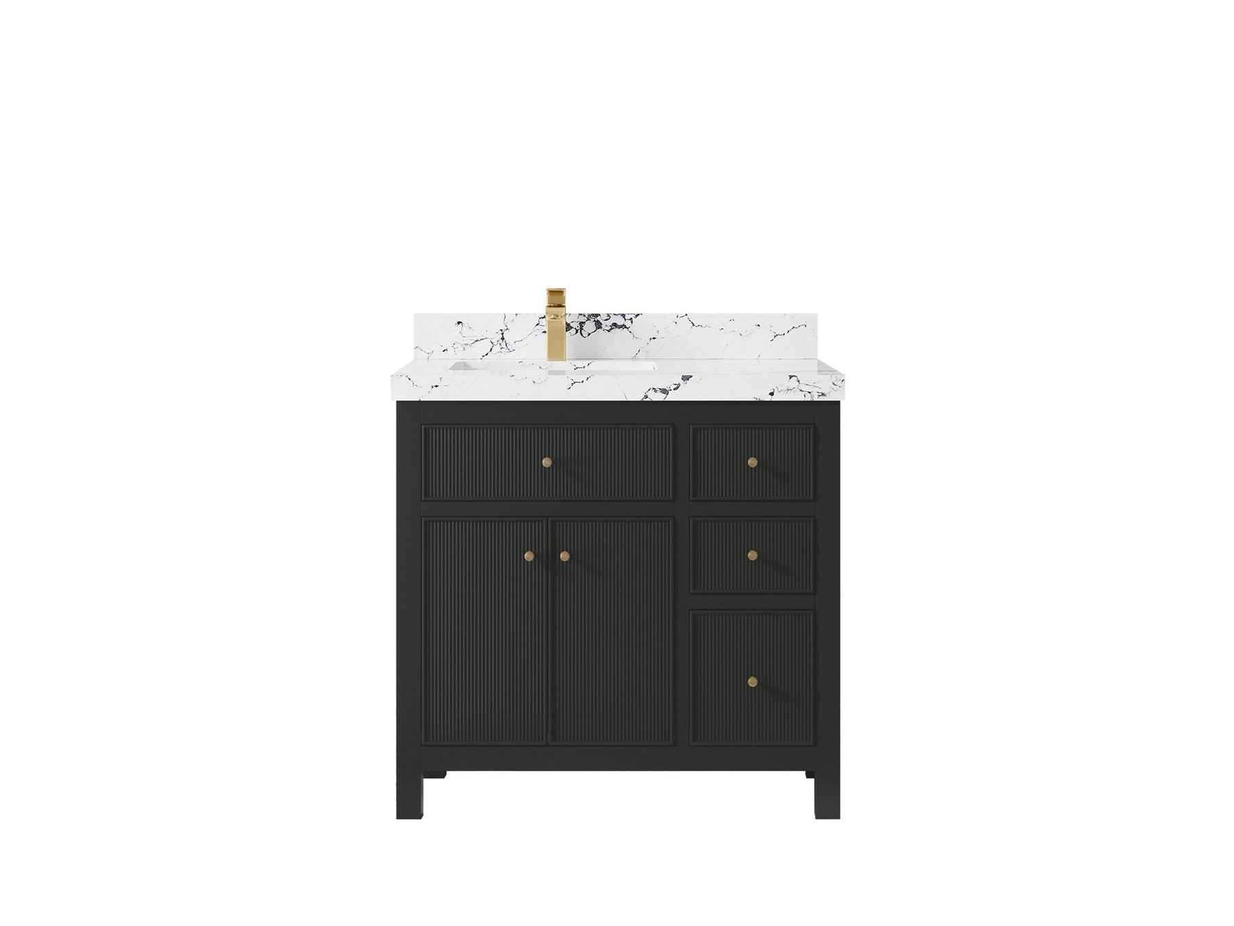 Faucet Hole(S): Comes with Single Faucet, 8 (in.) Widespread Faucet, Wall mount Faucets - Only Available for White Quartz and Carrara Quartz. (PLEASE ADD THIS CONFIGURATION UNDER COUNTERTOPS SECTION )