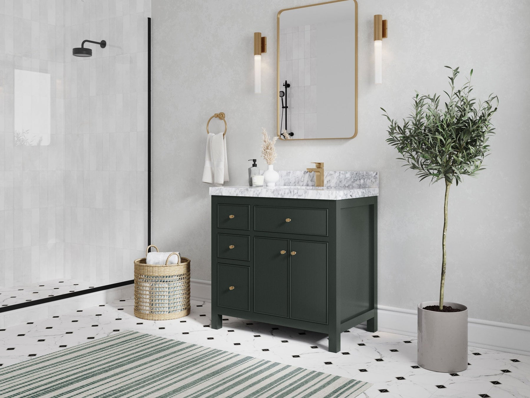 Vanity Countertops options: For Calacatta Laza Quartz, Empira White Quartz, Pure White Quartz we have 2 options Straight-Mitered Edge & Double Cove Edge, For Calacatta Black Quartz, Calacatta Gold Quartz, Calacatta Nuvo Quartz, Carrara Marble, Carrara Quartz, Pearl Light Gray Quartz, Piatra Gray Quartz, Venatino Quartz, and Light Concrete Gray Quartz we only have Straight - Mitered Edge option.