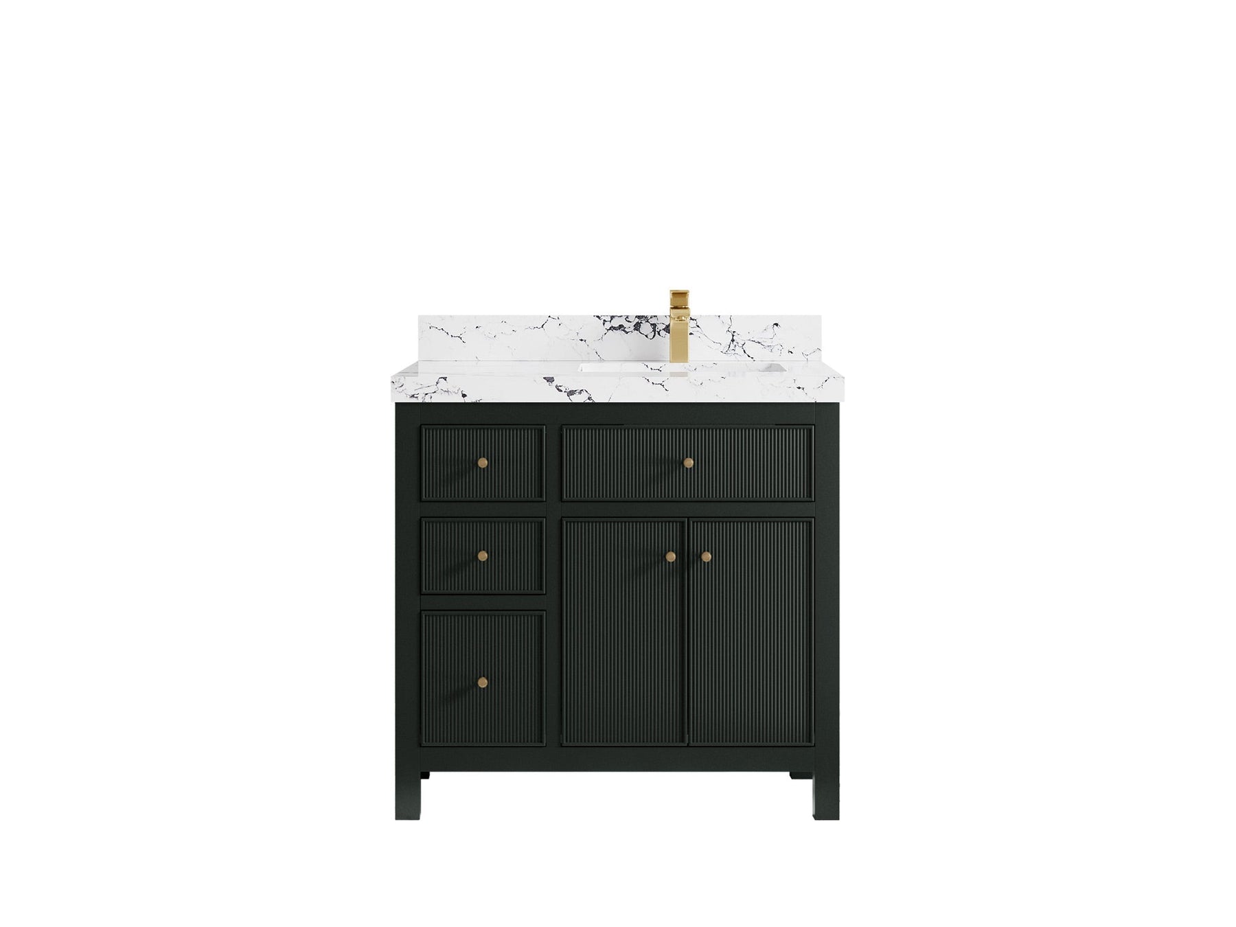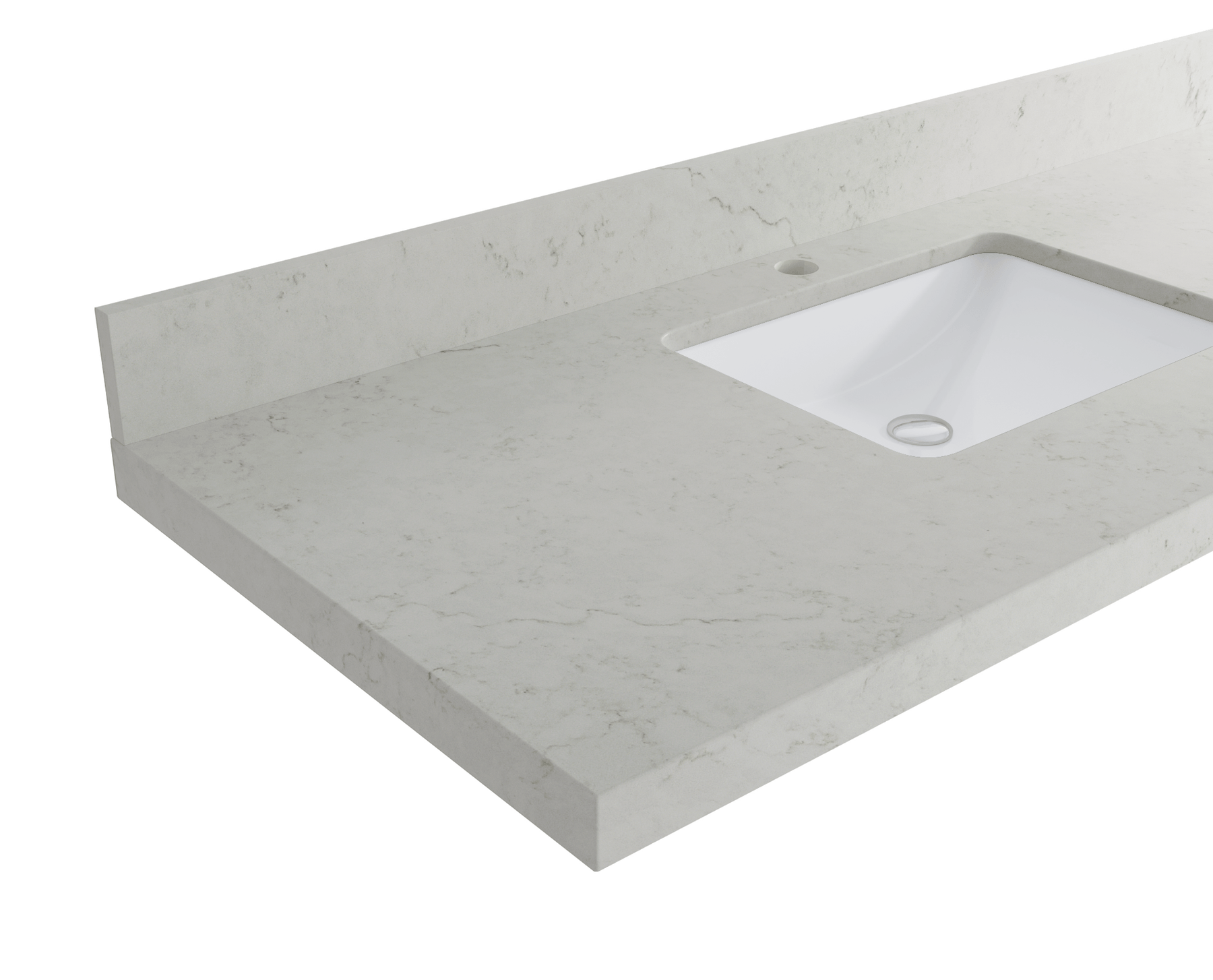 Faucet Hole(S): Comes with Single Faucet, 8 (in.) Widespread Faucet, Wall mount Faucets - Only Available for White Quartz and Carrara Quartz. (PLEASE ADD THIS CONFIGURATION UNDER COUNTERTOPS SECTION )