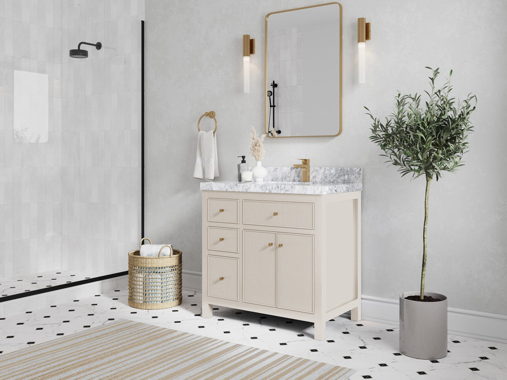 Sonoma 36 in. W x 22 in. D Right Offset Sink Bathroom Vanity | Fine Grain Linen Beige