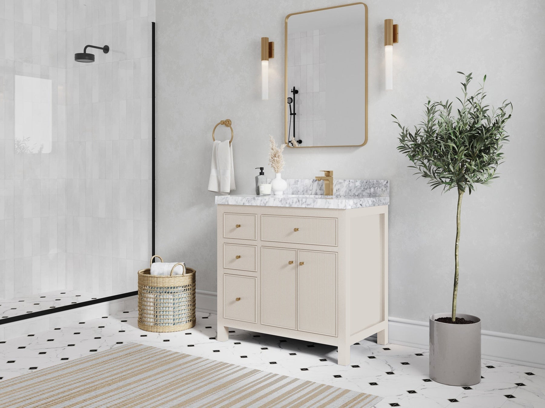 1. Timeless style with a 21st century flair – constructed from premium birch and plywood for a reeded design, with gold and nickel brushed hardware, the Sonoma vanity with legs combines the best of the past and the present to great effect.