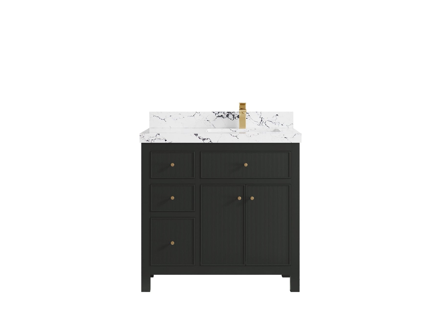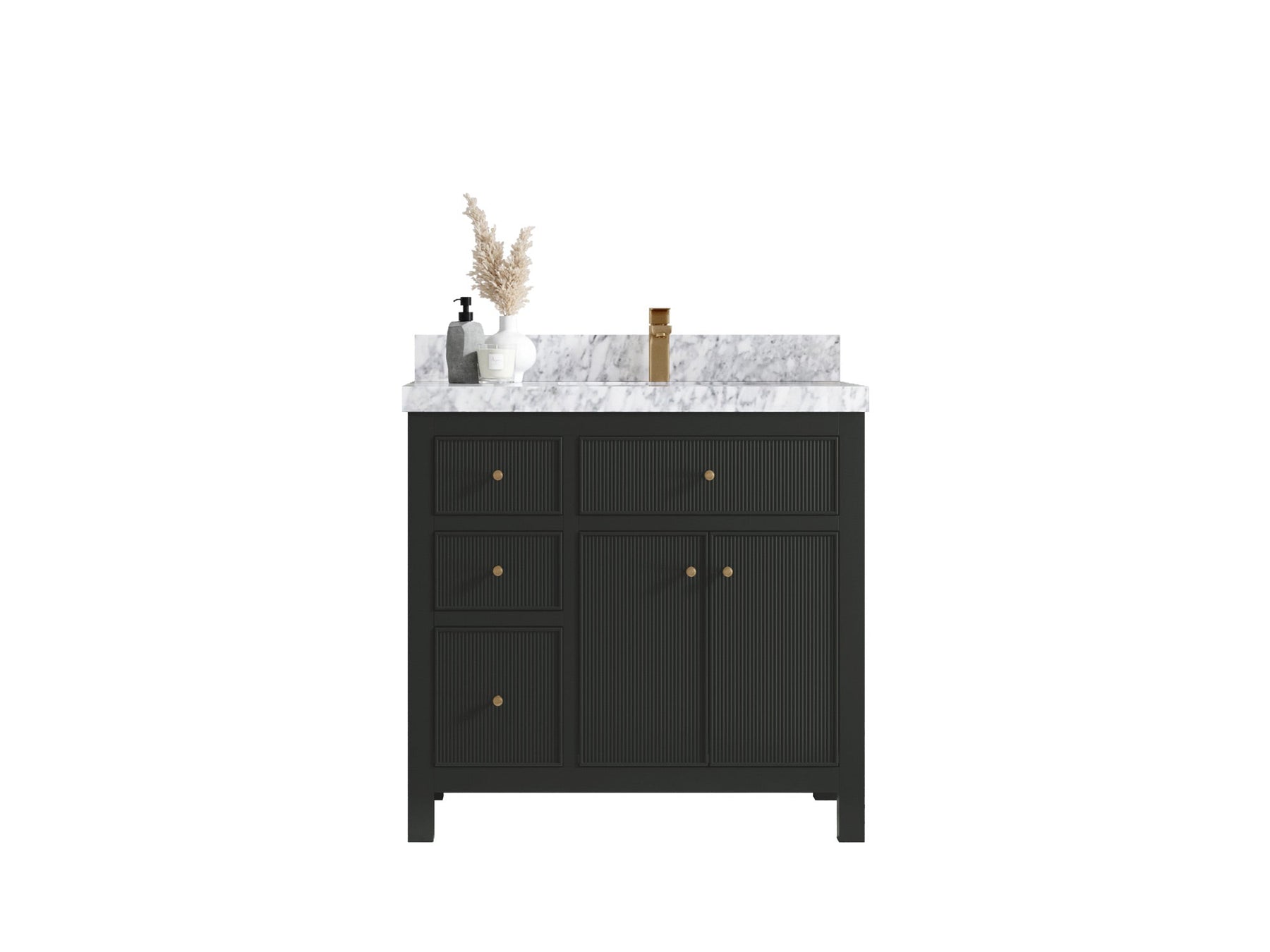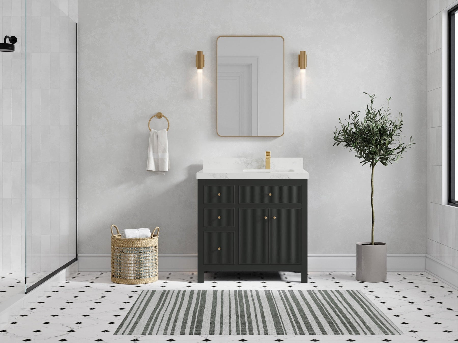 Sonoma 36 in. W x 22 in. D Right Offset Sink Bathroom Vanity | Black Top