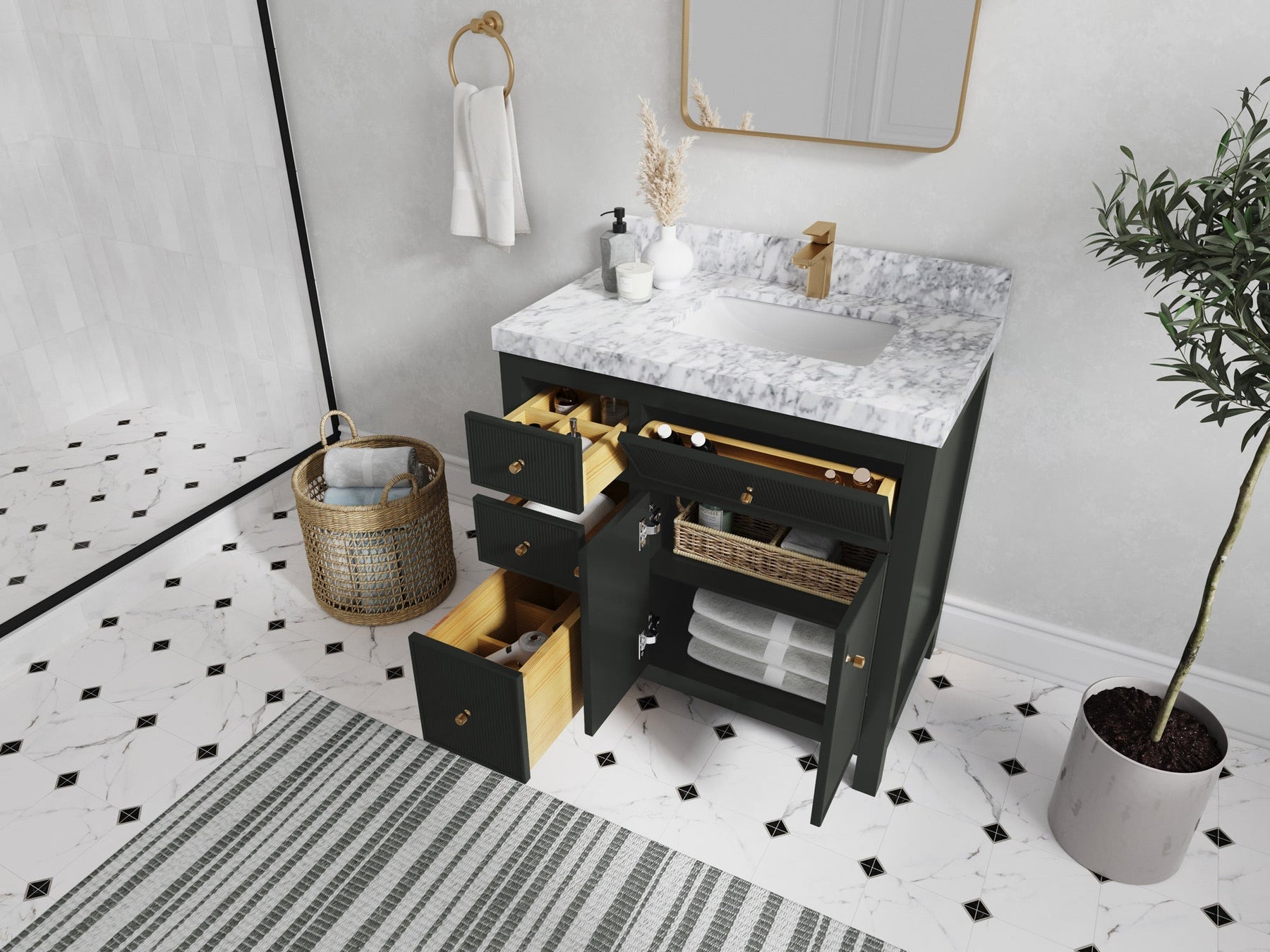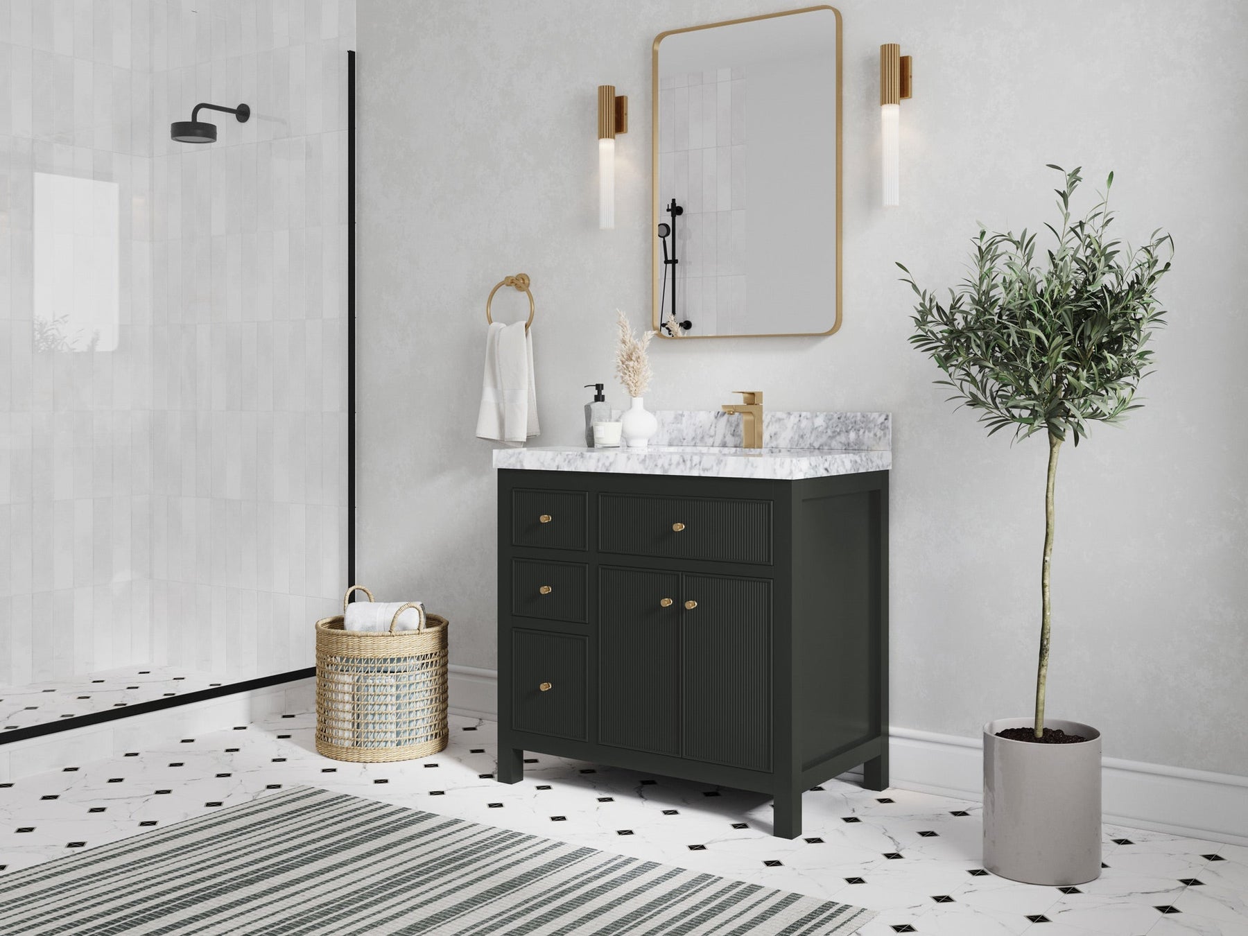 In addition to the Sonoma Collection’s vast array of stunning color options, from Navy Blue to Forest Green, this expansive reeded vanity unit features power cord integration and a built-in hairdryer holder to make your bathroom experience as convenient as it is aesthetic.