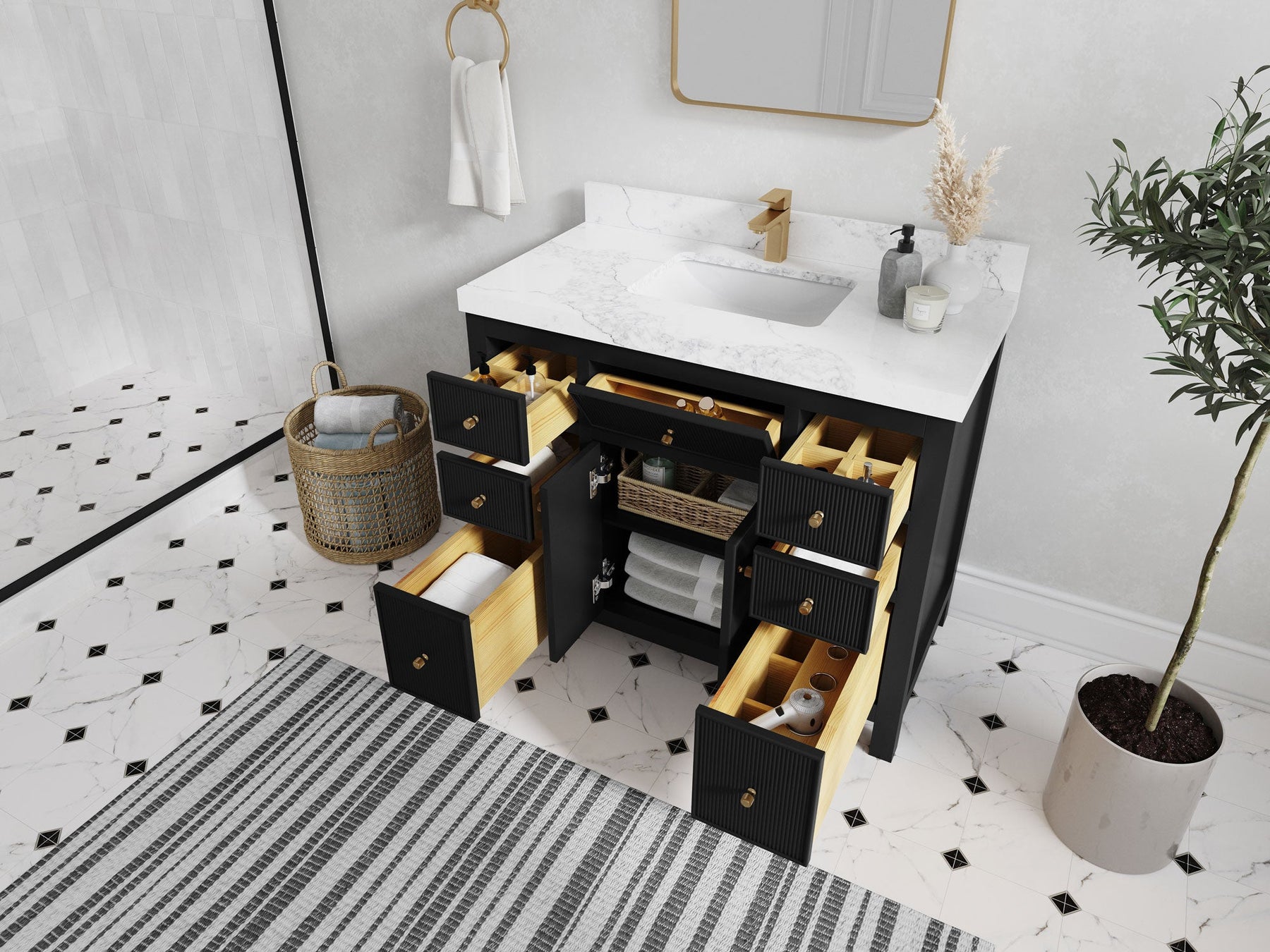 Sonoma 42 in W x 22 in D Free Standing Reeded Single Sink Bathroom Vanity | Black