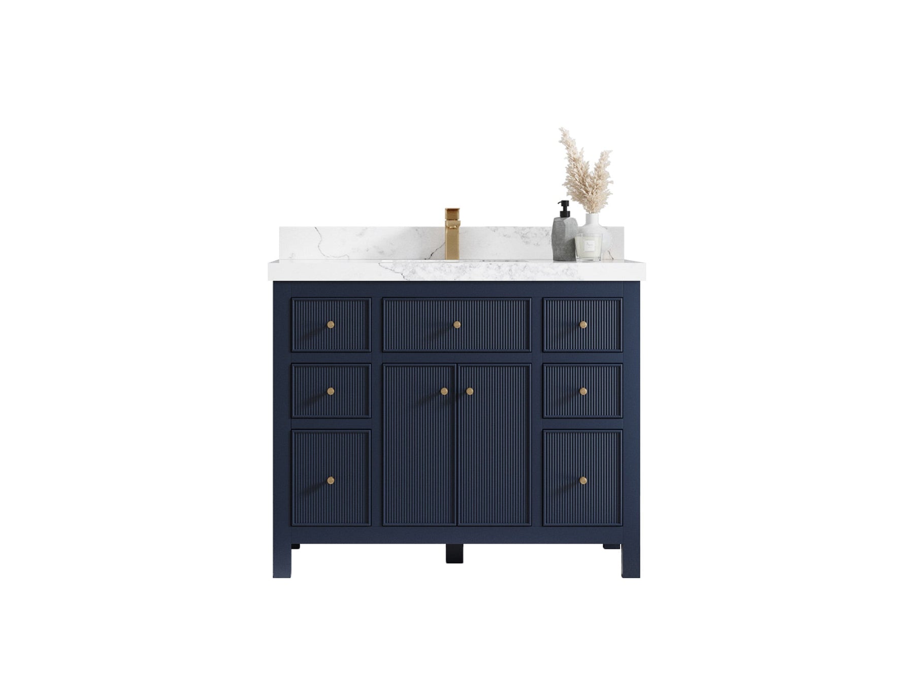 Sonoma 42 in W x 22 in D Free Standing Reeded Single Sink Bathroom Vanity | Hale Navy Blue